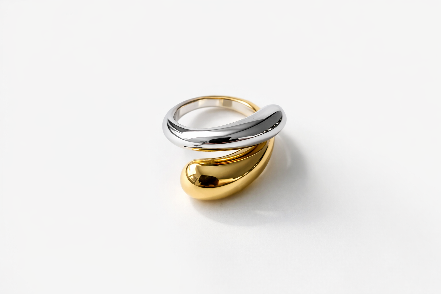 anel em aço com efeito de duas cores - prata/ouro.