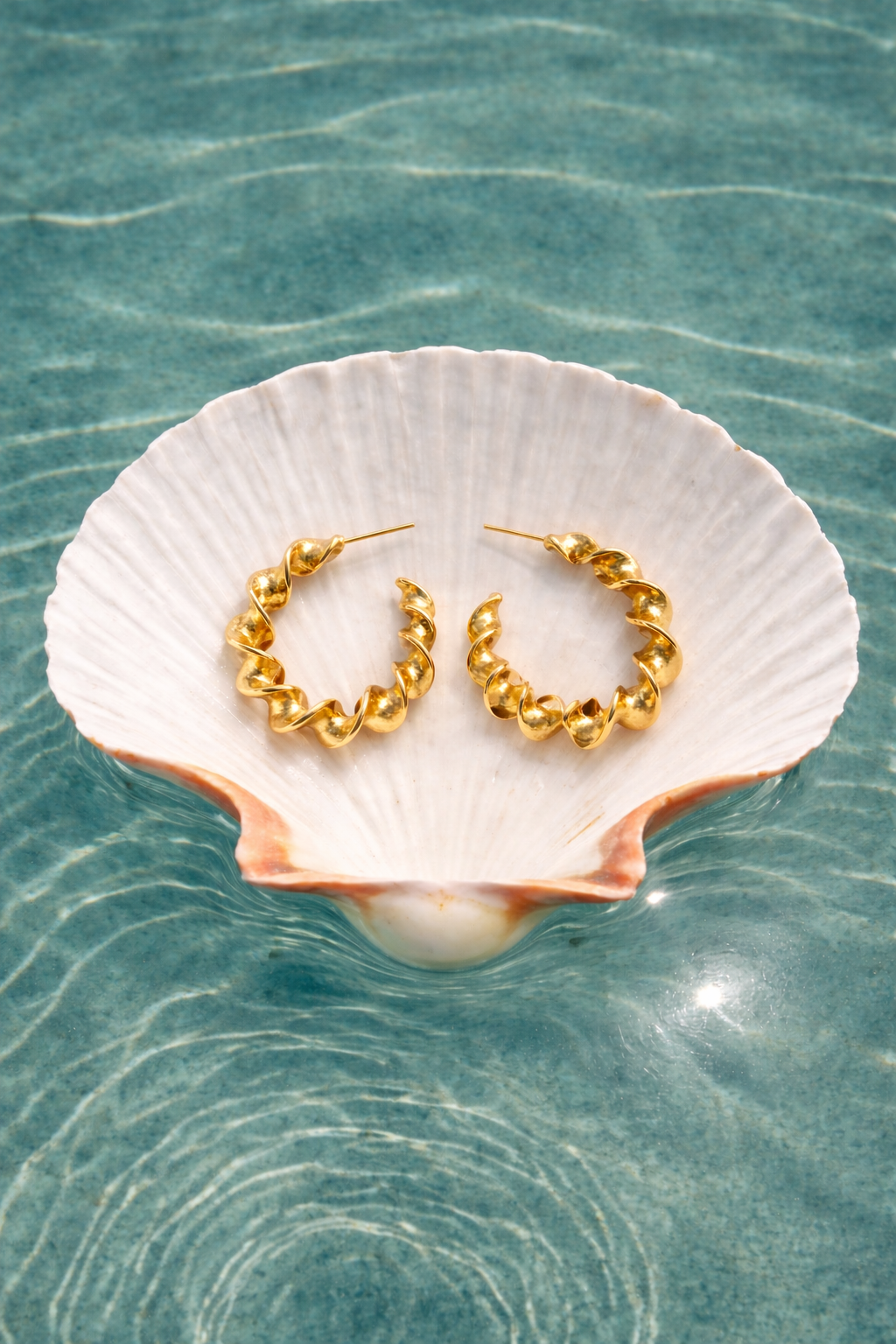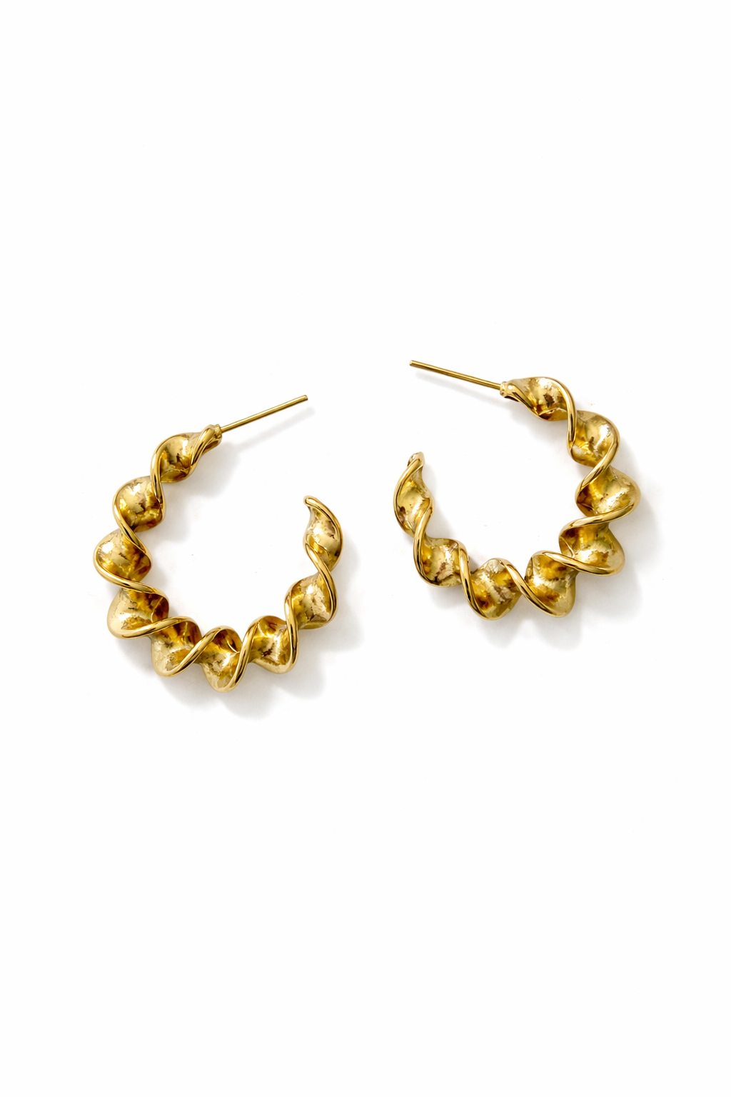 argolas em aço dourado com efeito torcido (espiral).