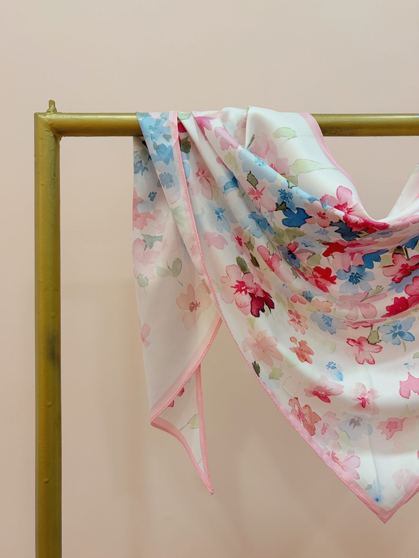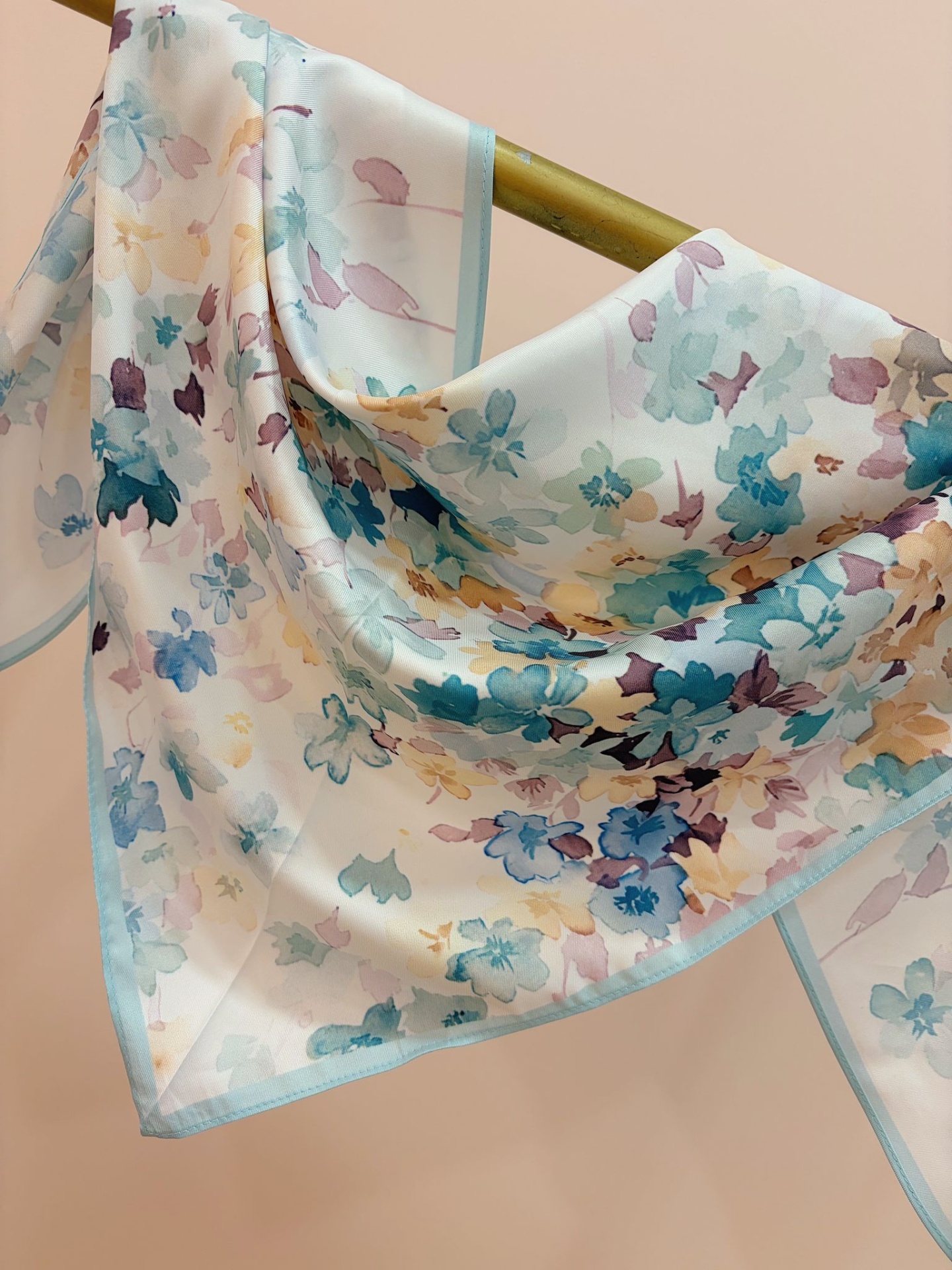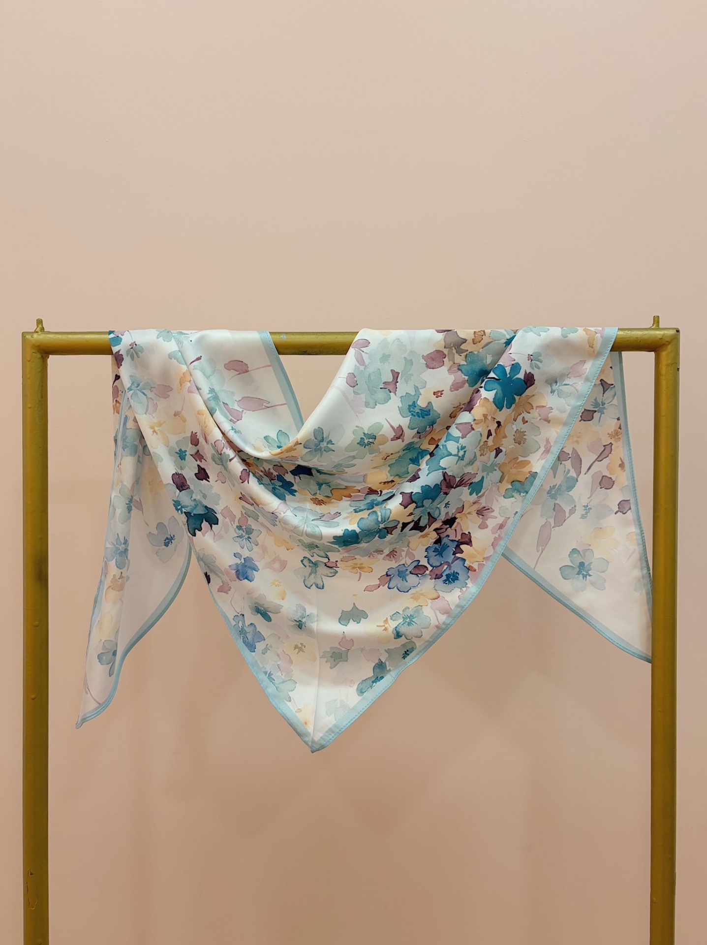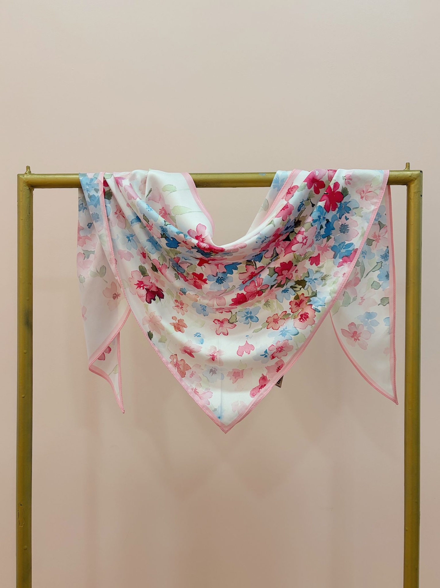 Bandana (lenço triangular) com padrão floral como se fosse uma pintura.