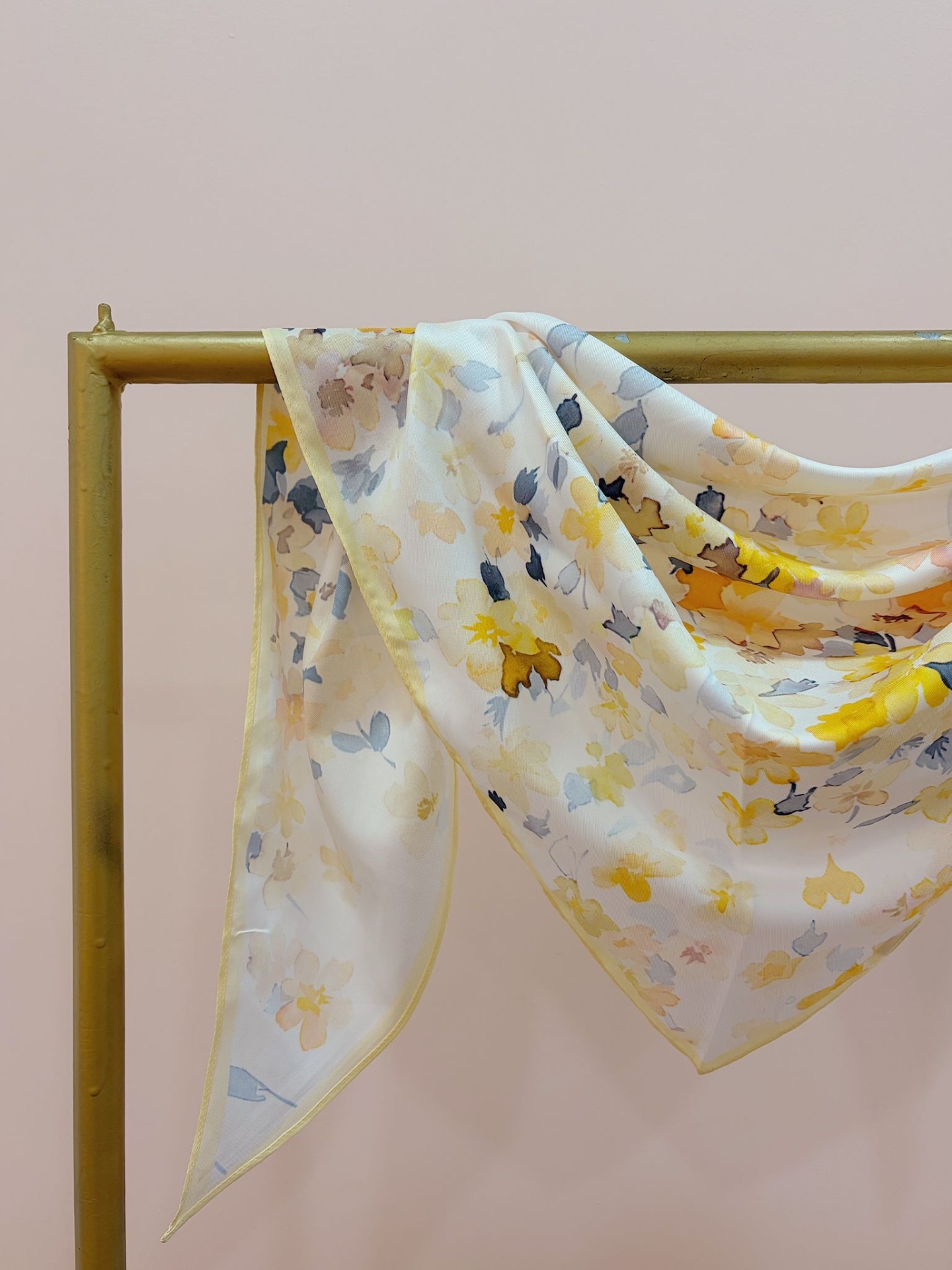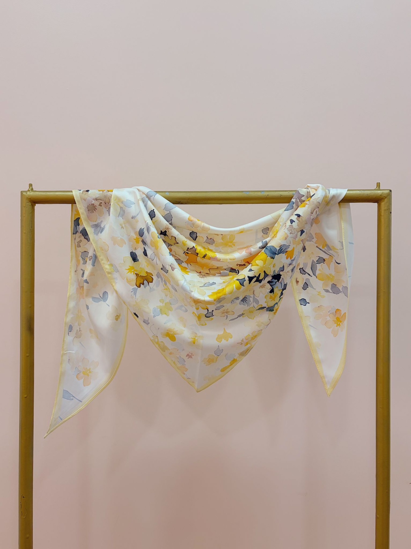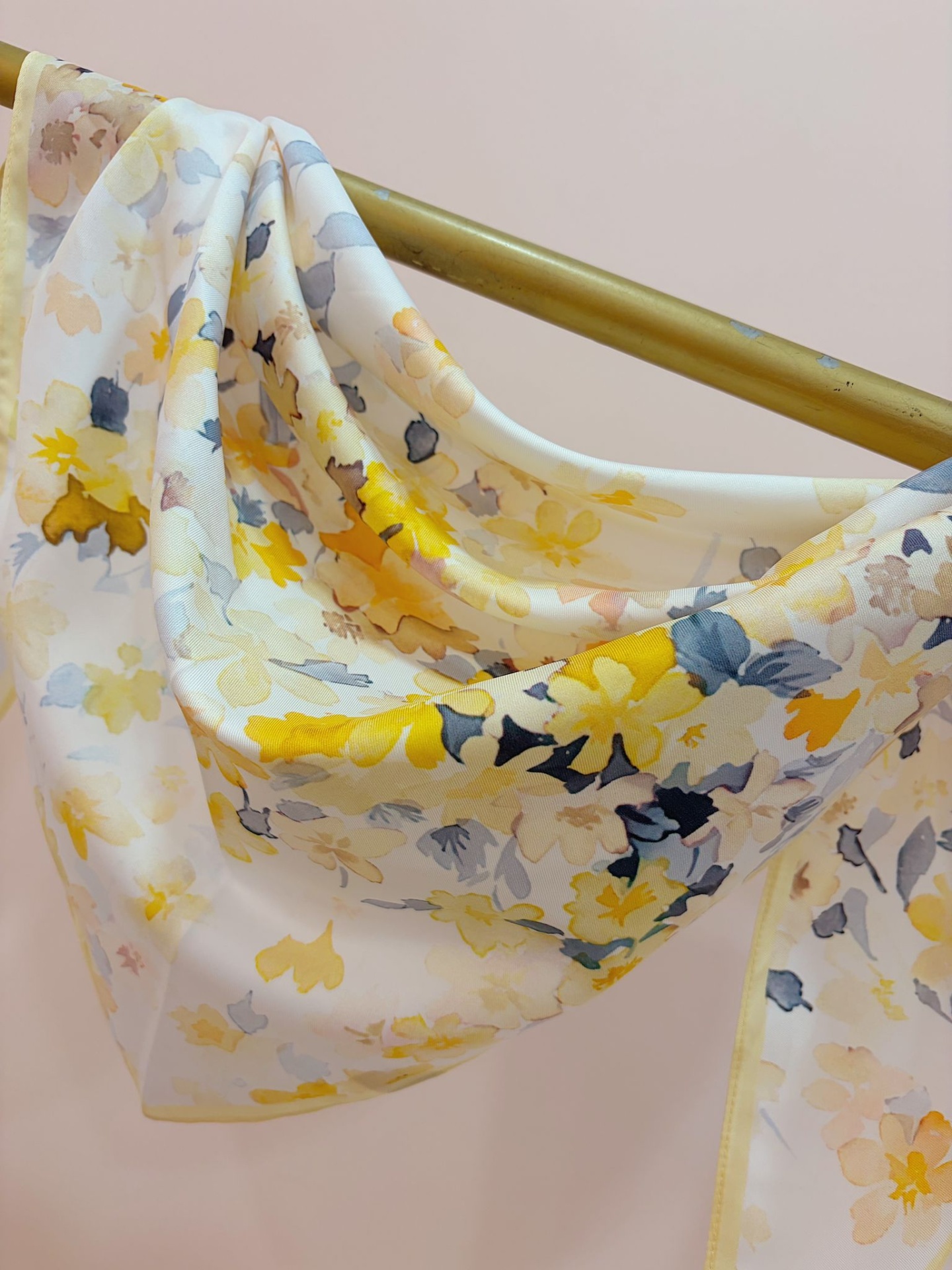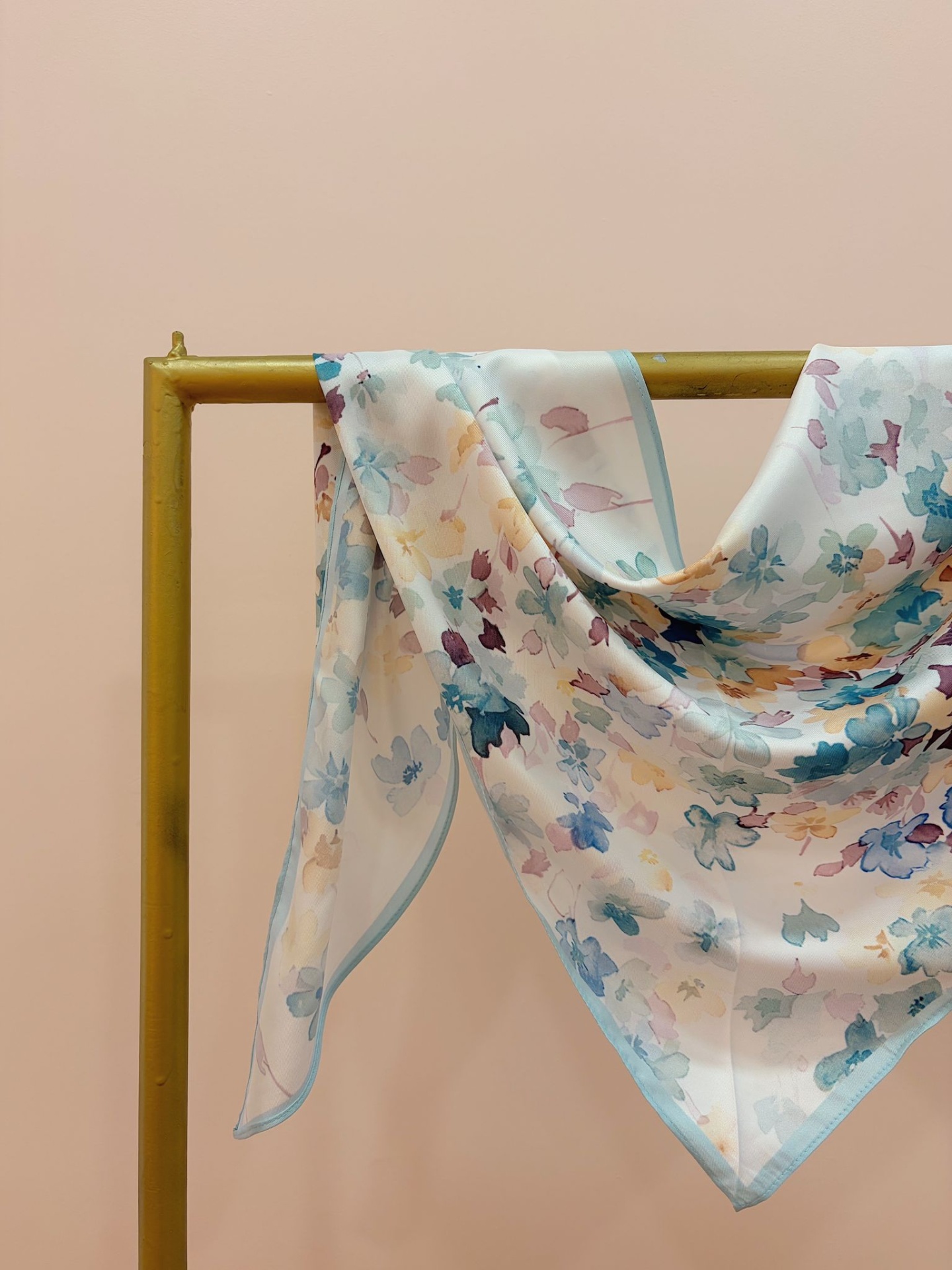 Bandana (lenço triangular) com padrão floral como se fosse uma pintura.