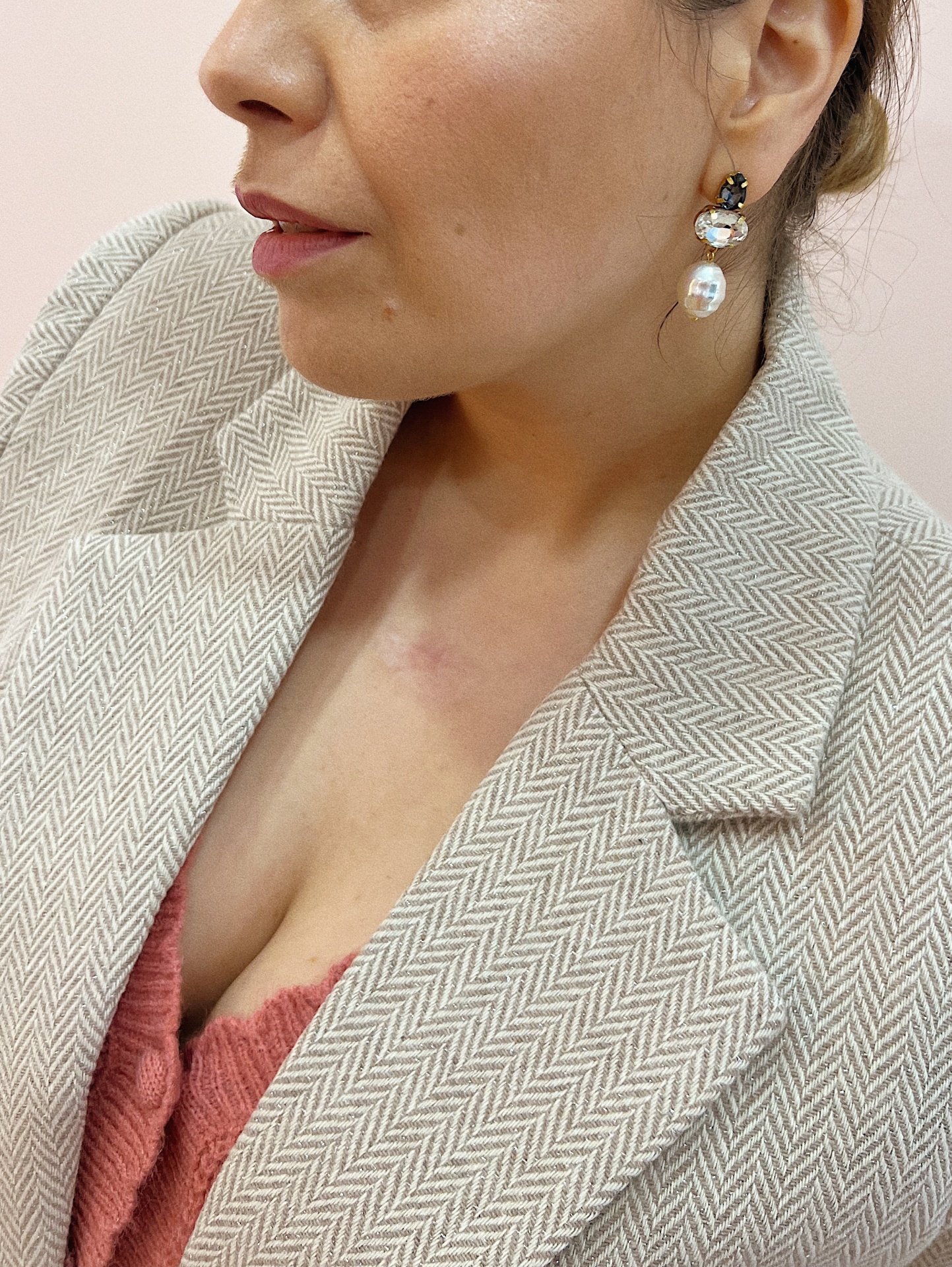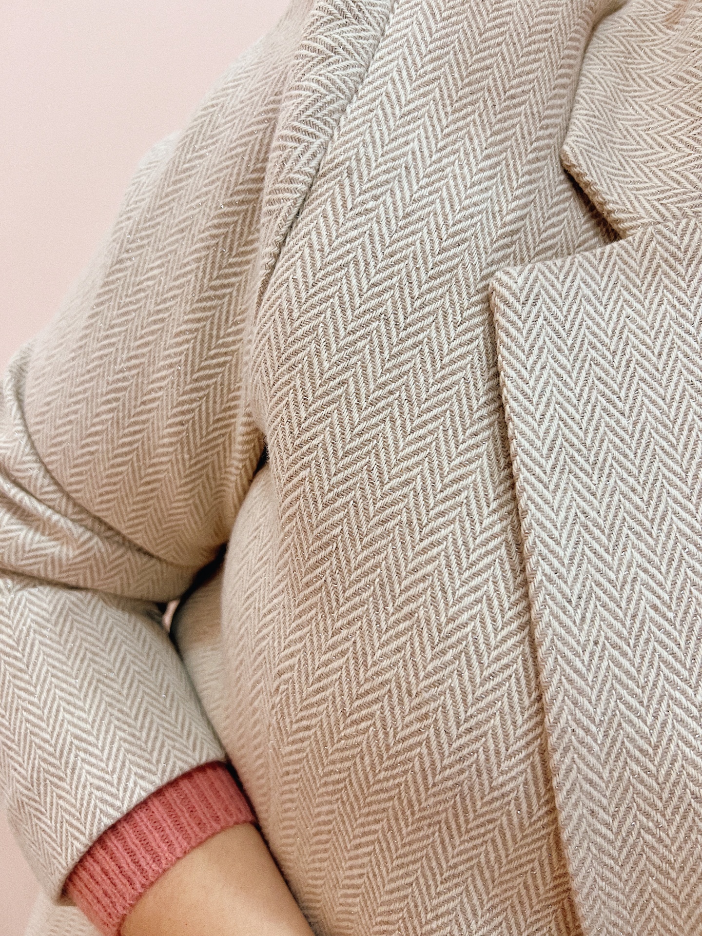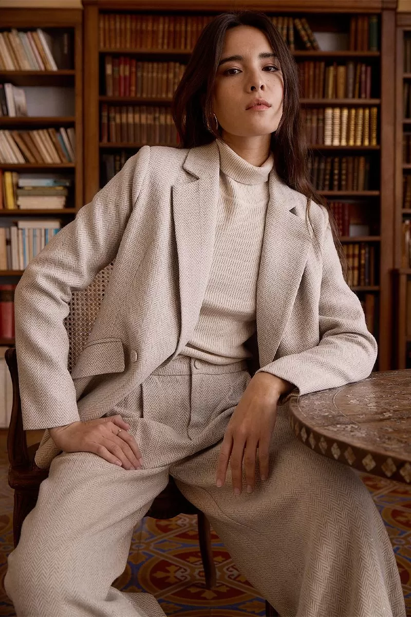 Blazer clássico de corte regular ligeiramente cintado com padrão em Espinha em tons neutros -crú/creme.