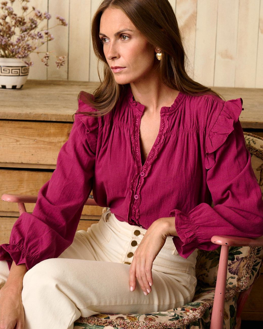 Blusa romântica e elegante em algodão com detalhes únicos.