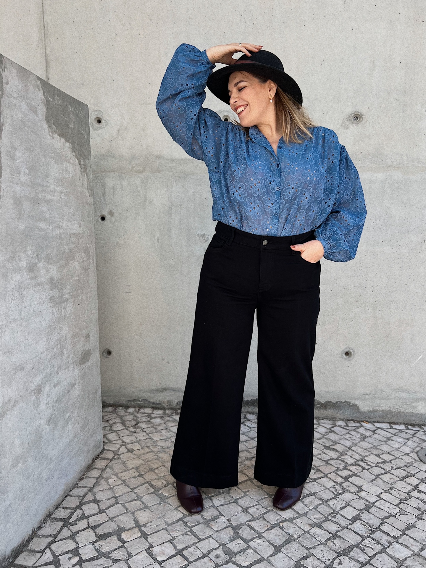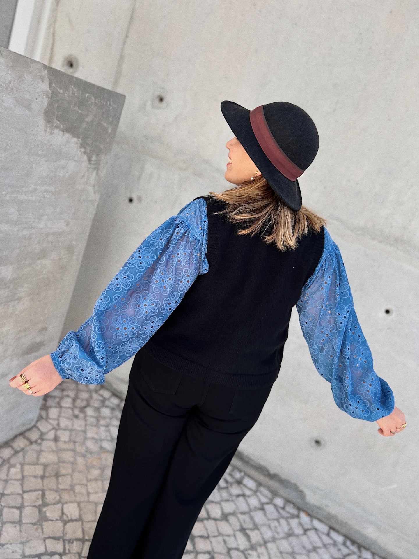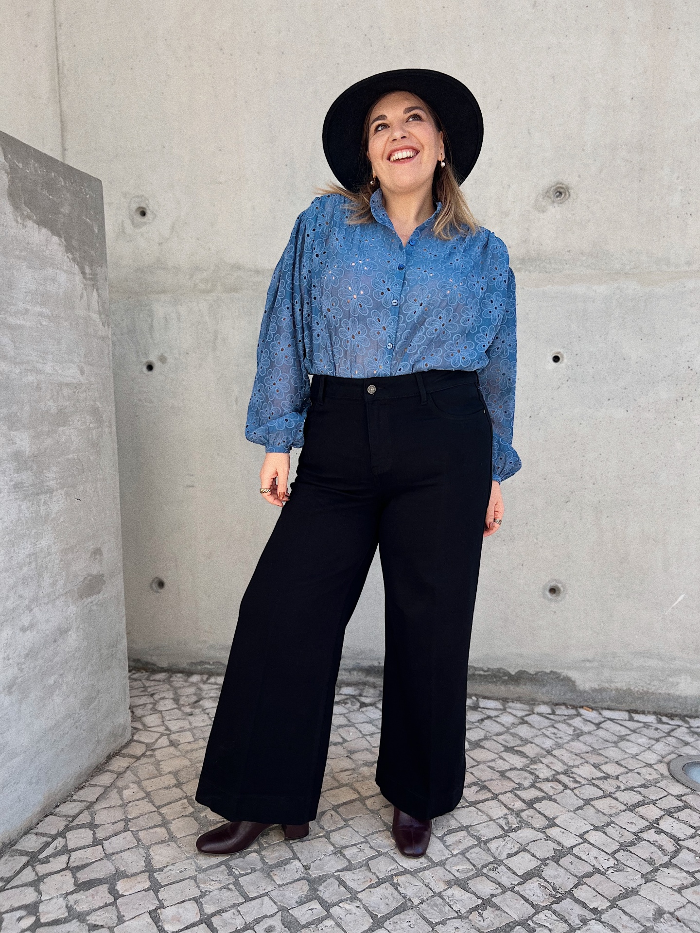 Mangas compridas com efeito balão. Corte recto.