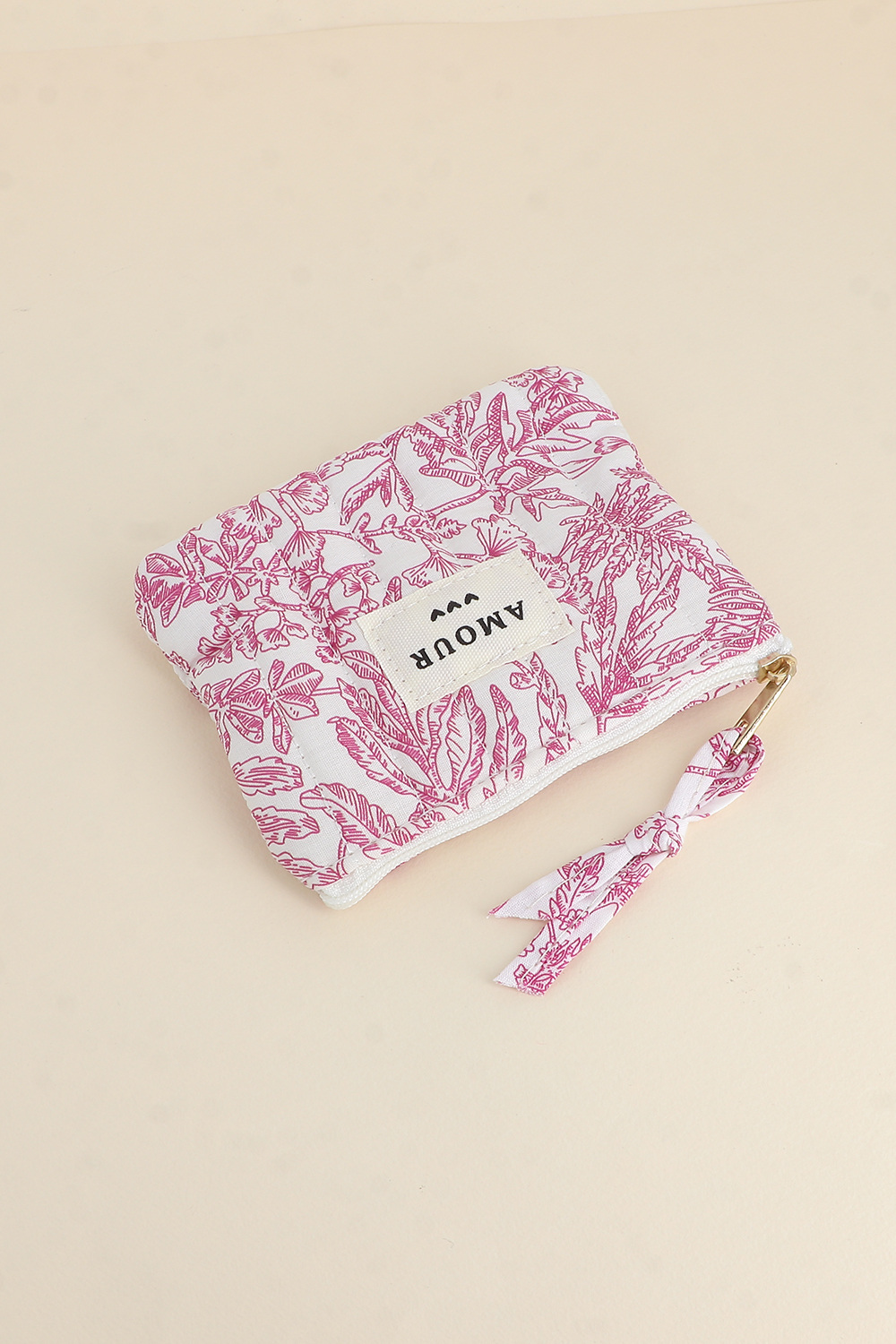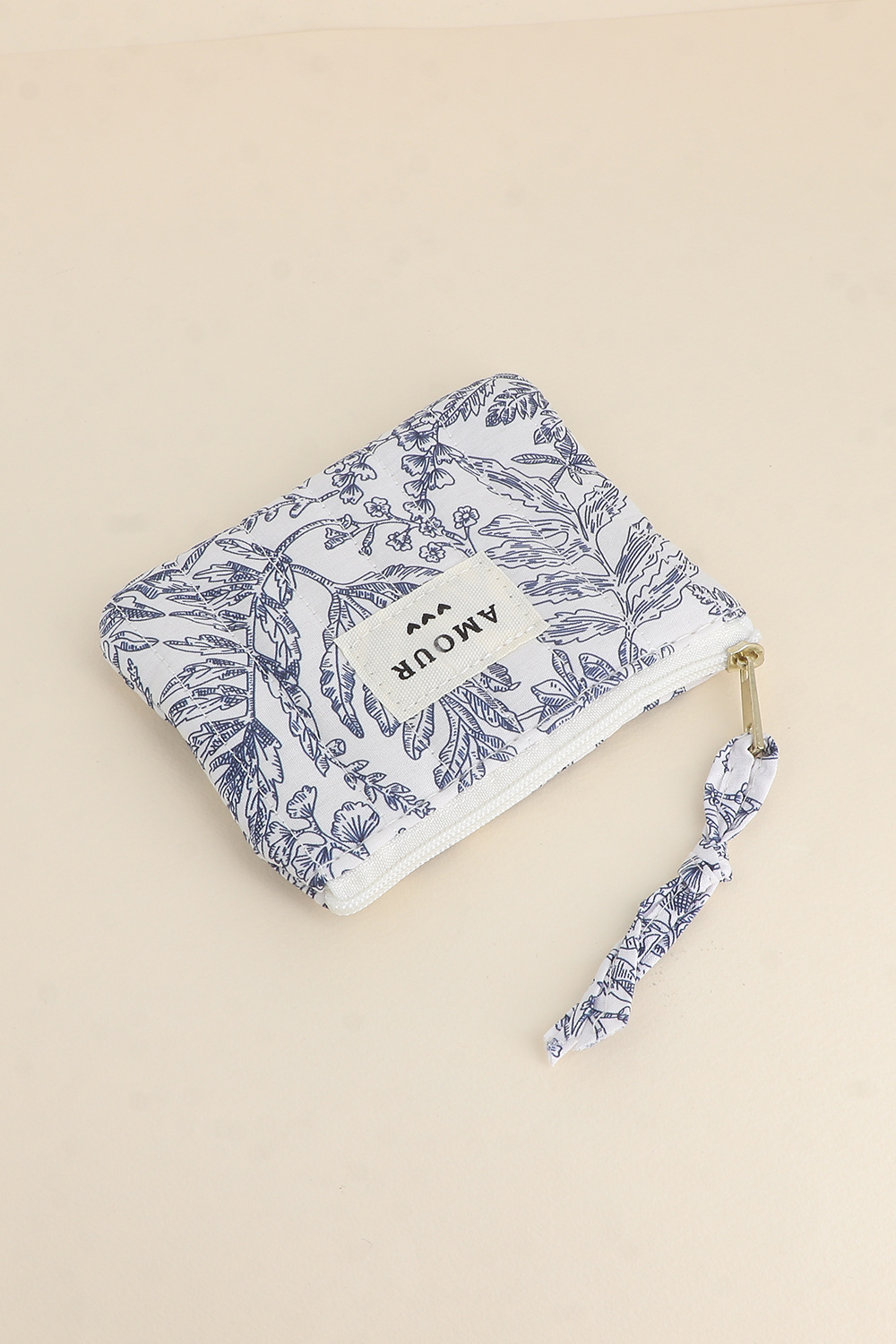 Bolsa pequenina estilo Porta-moedas em tecido com padrão de flores e efeito acolchoado.