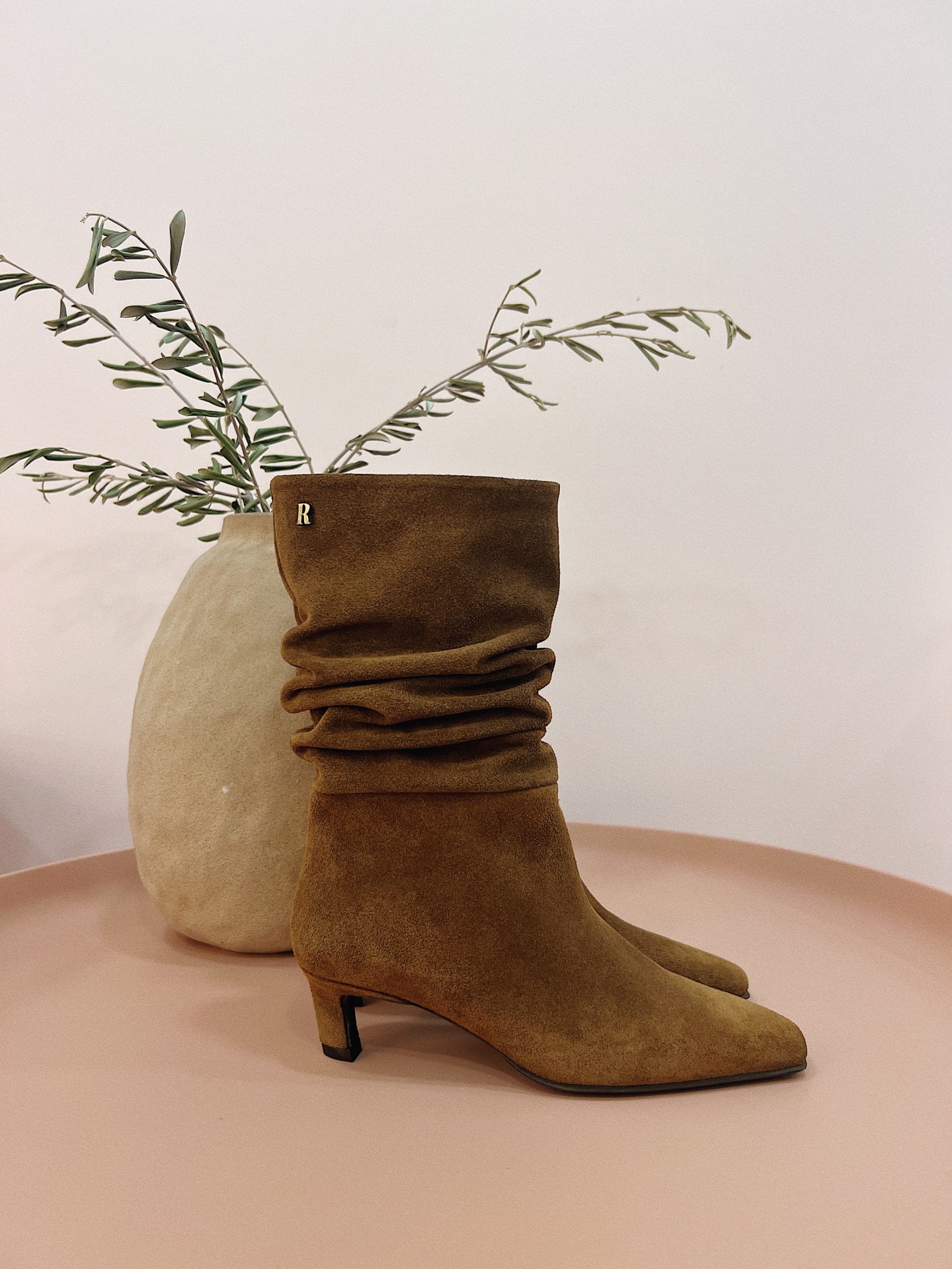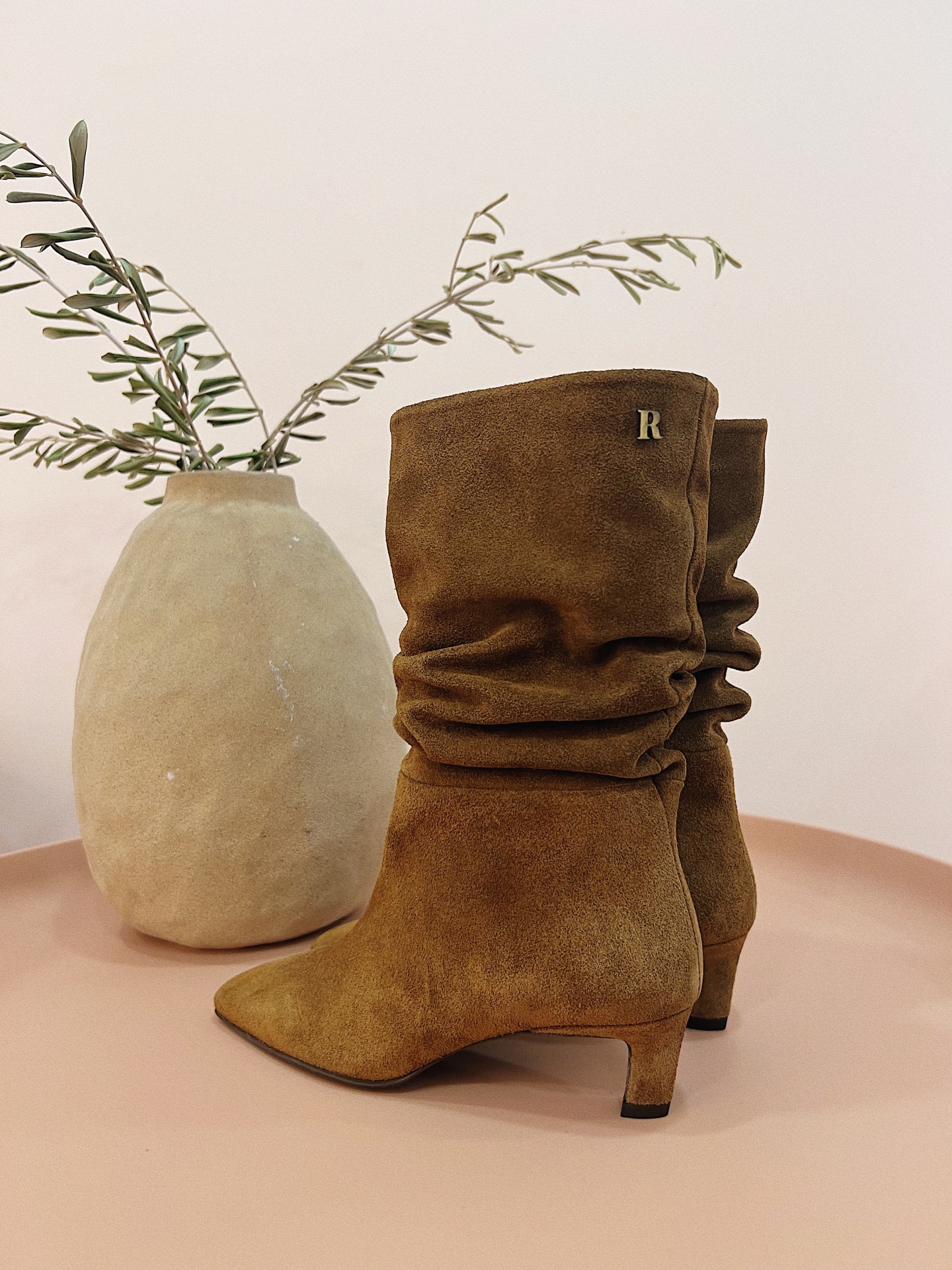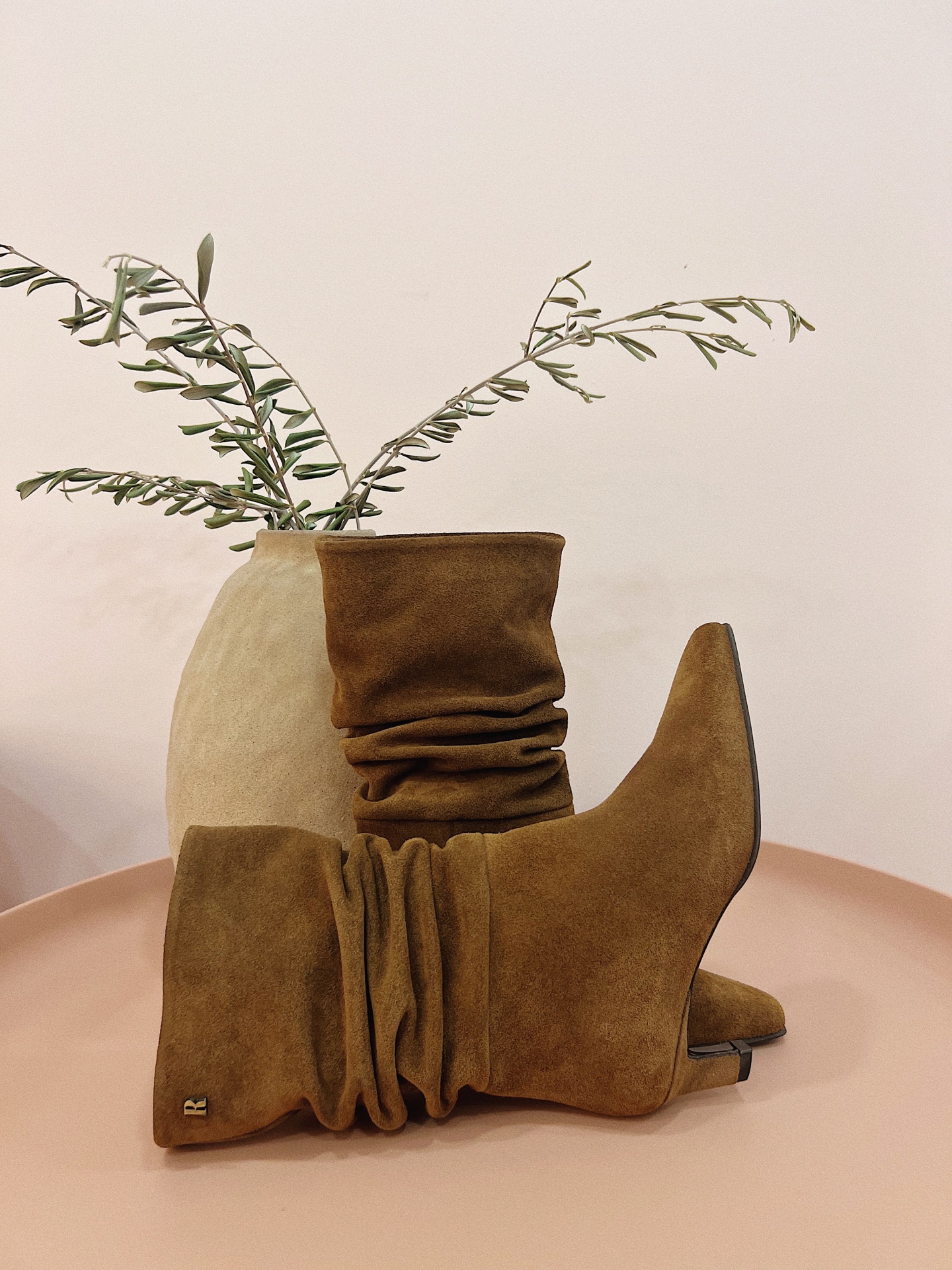 Botas de cano alto em camurça numa cor neutra e perfeita para usares com todos os teus Looks.