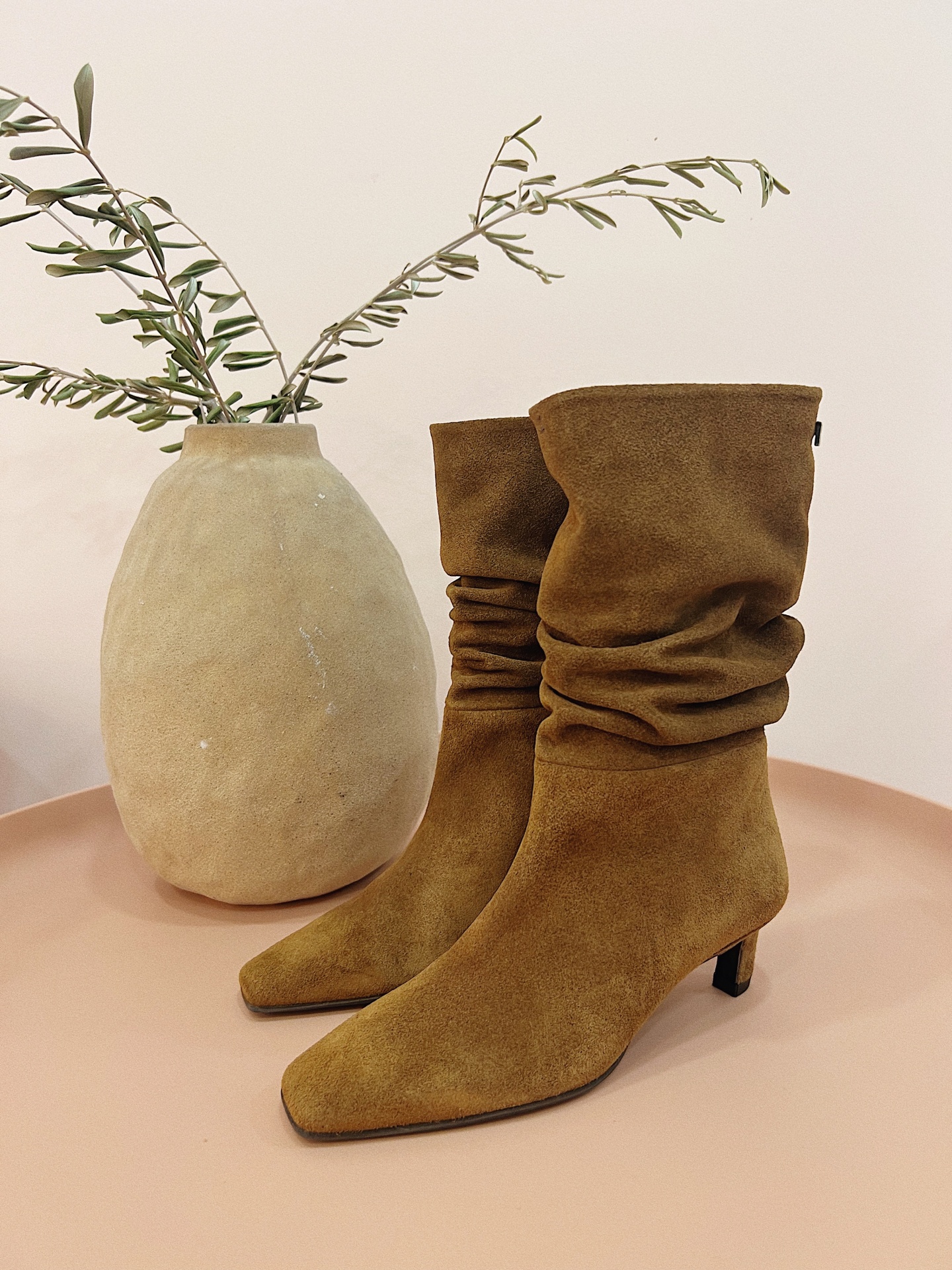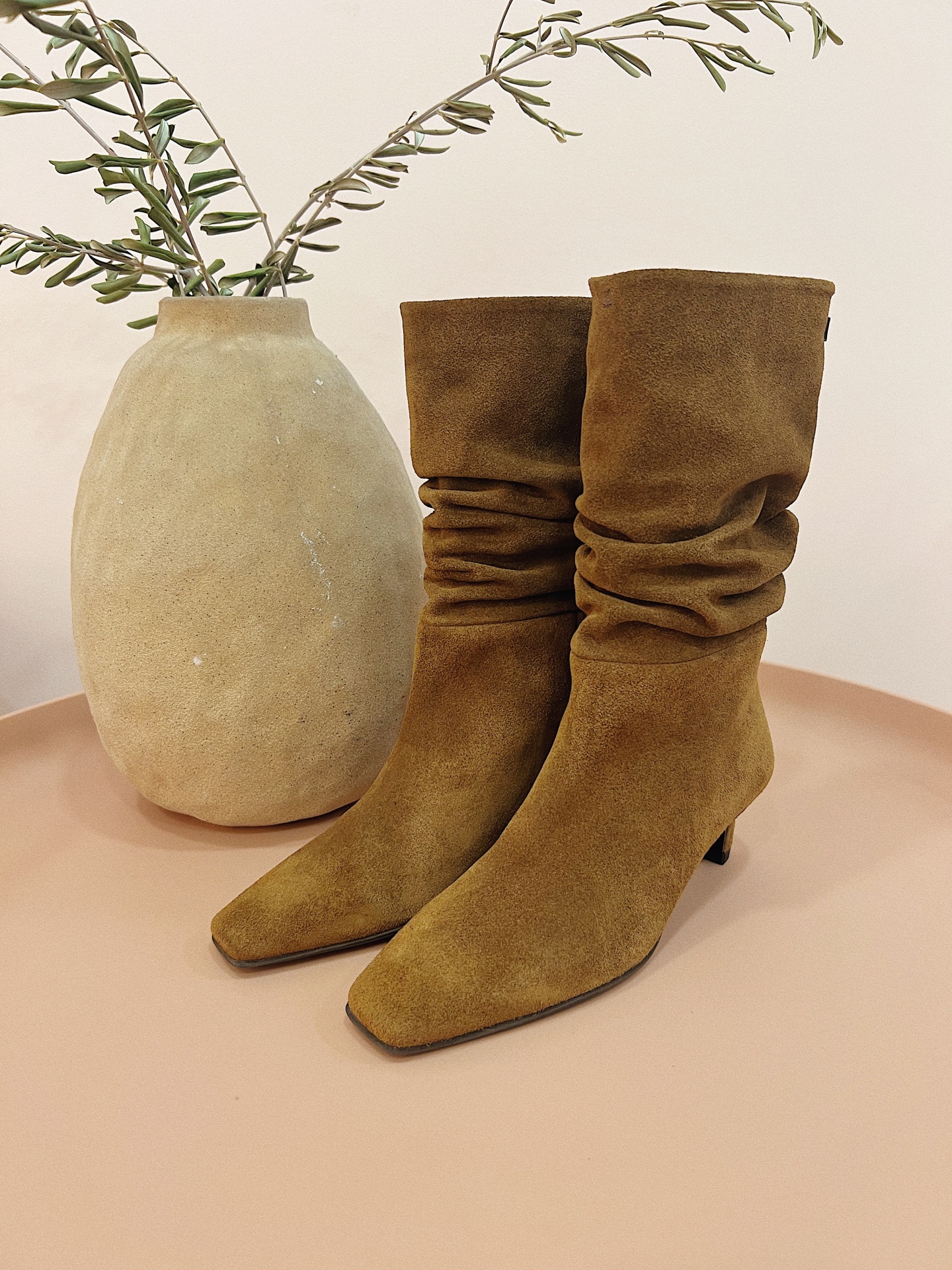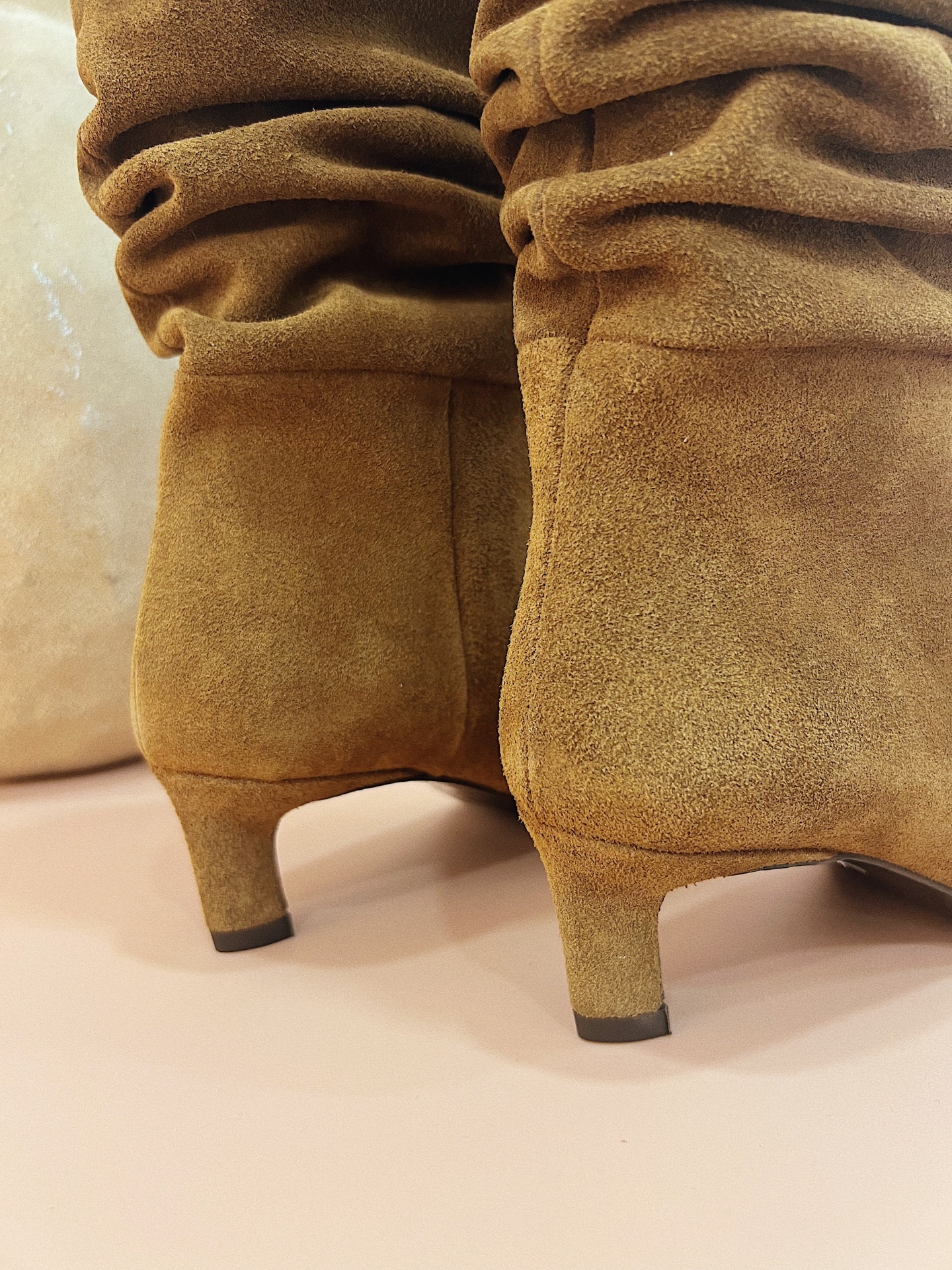 Botas de cano alto em camurça numa cor neutra e perfeita para usares com todos os teus Looks.