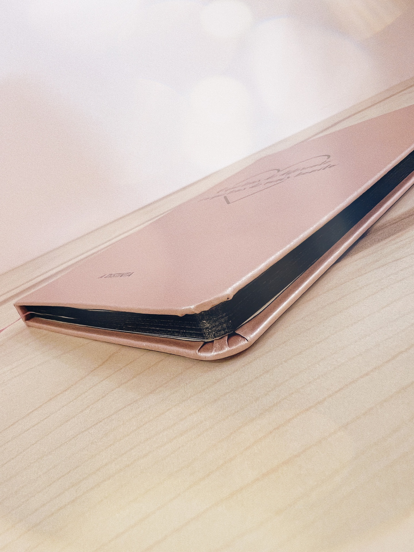 Quando o caderno está fechado o rebordo tem um efeito preto elegante.
