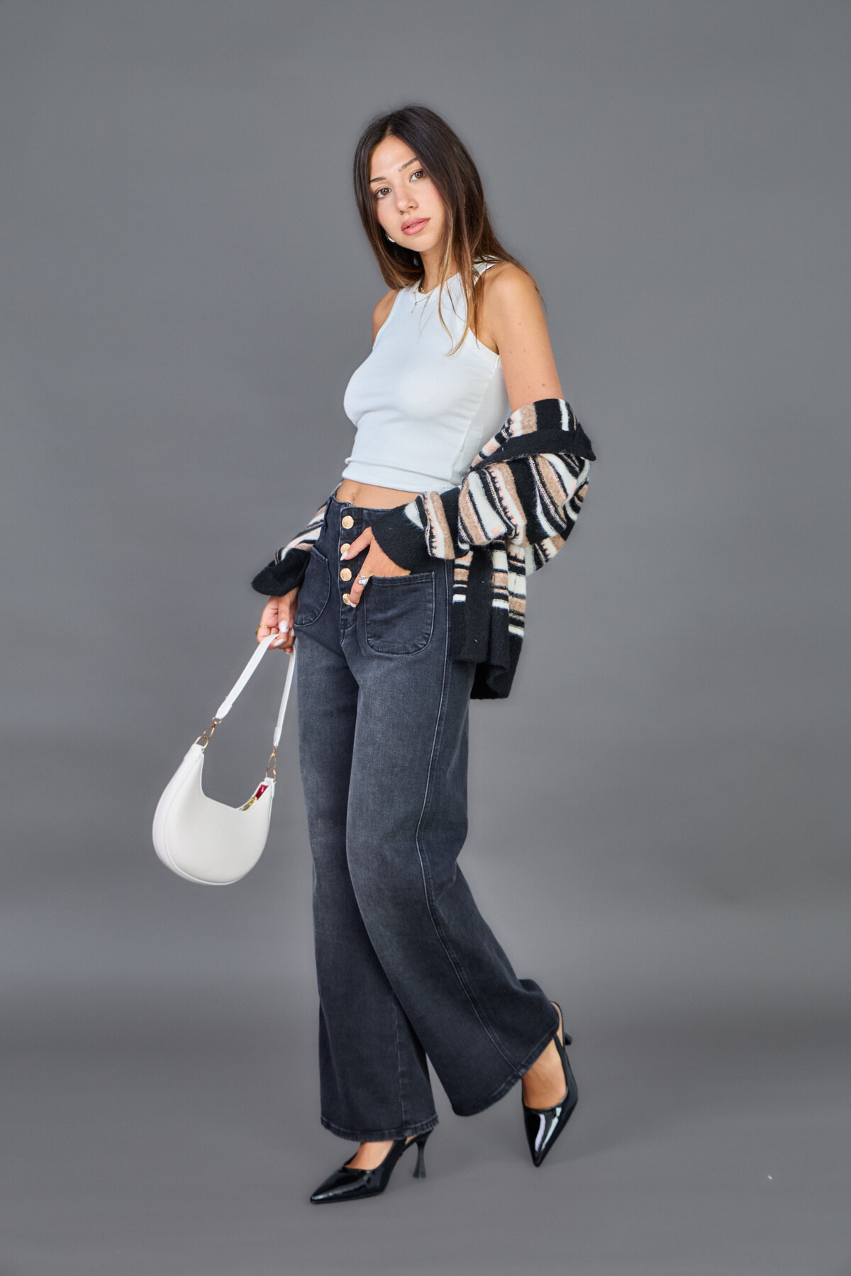 Perna larga estilo pantalonas.