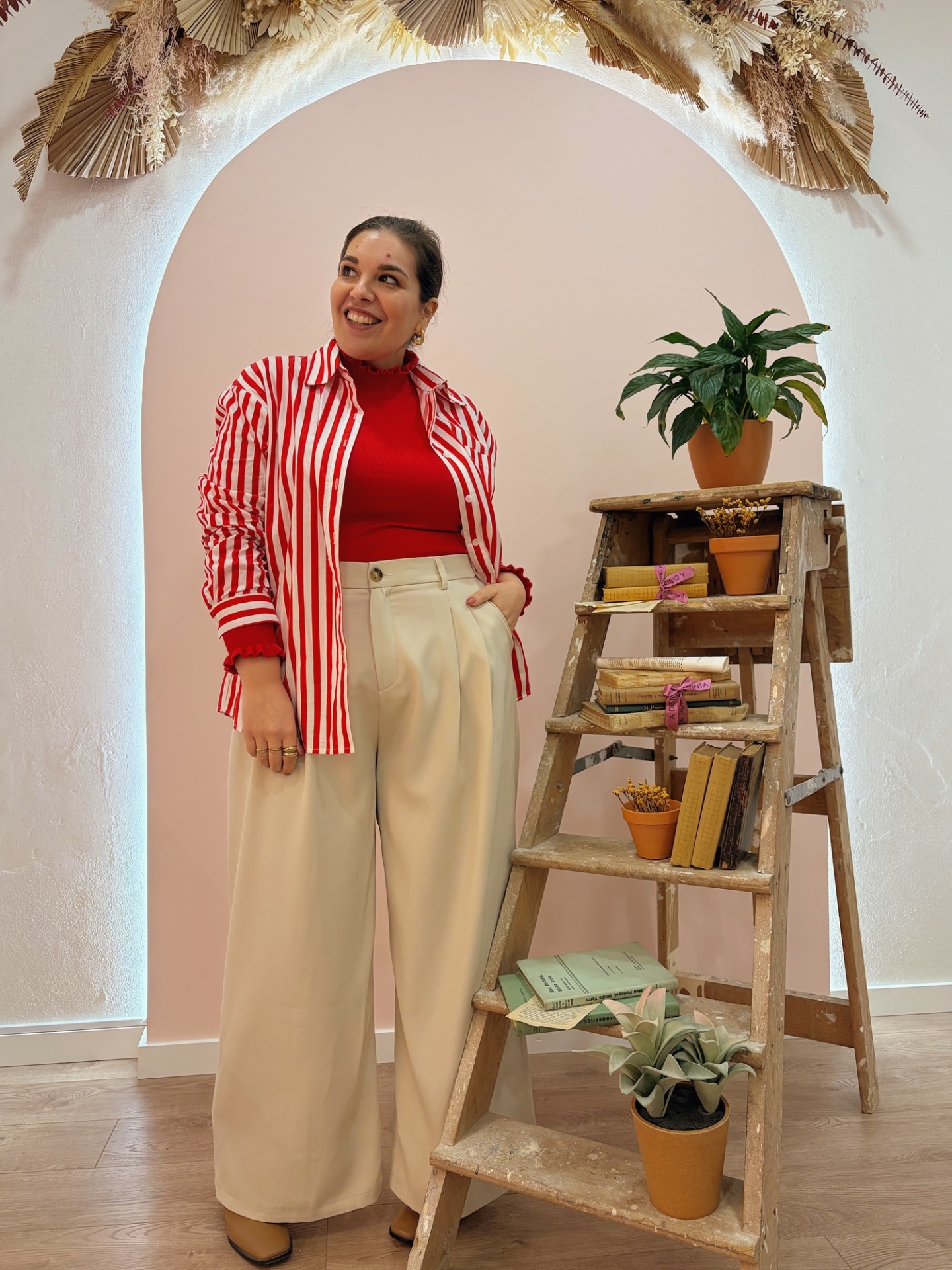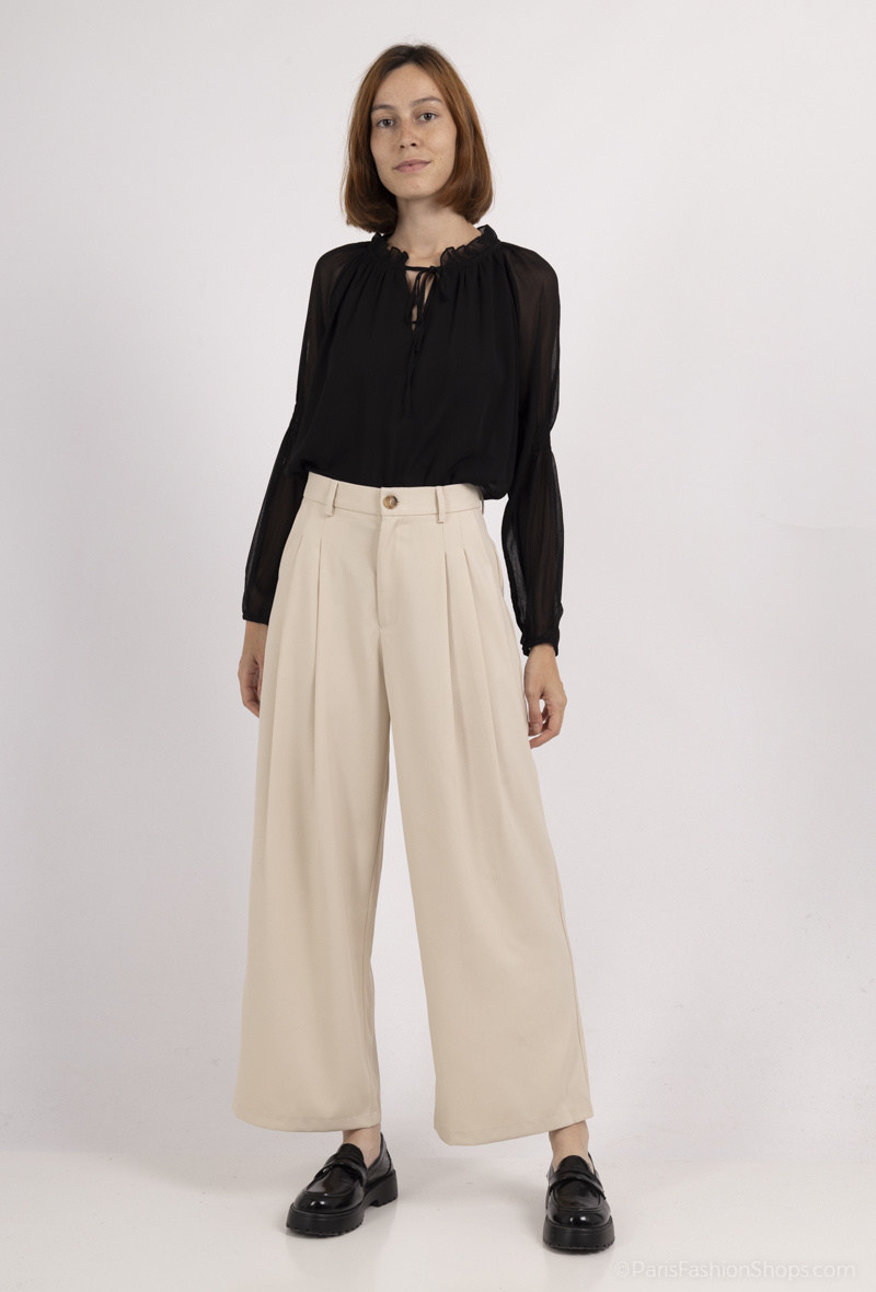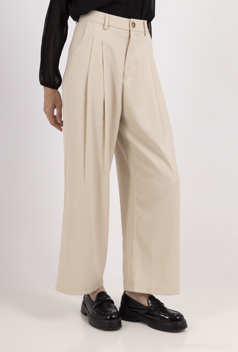 Calças de tecido estilo Pantalonas elegantes e versáteis.