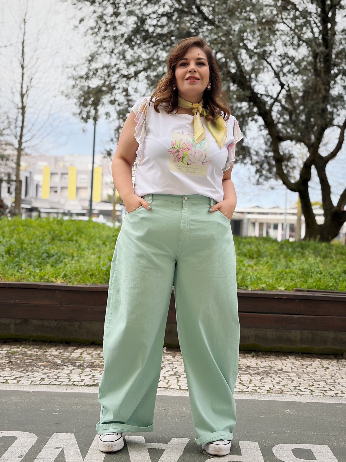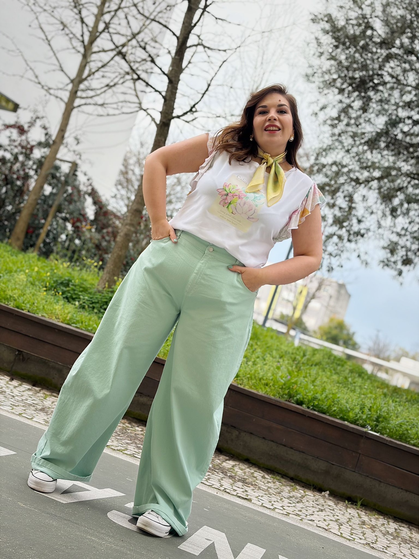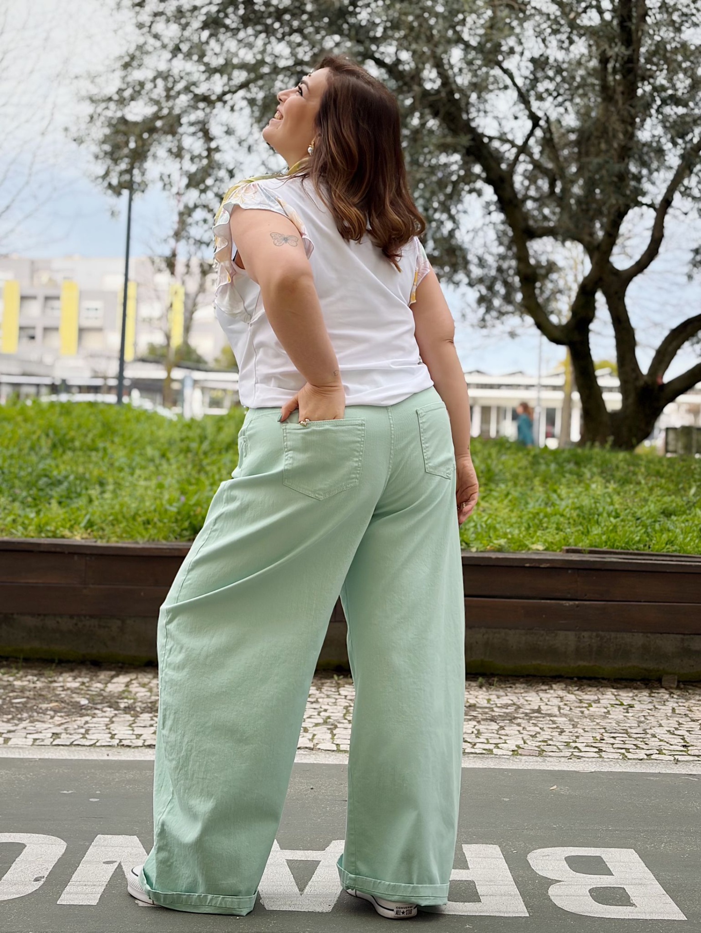 Perna larga em estilo baloon elegante (efeito abalonado).