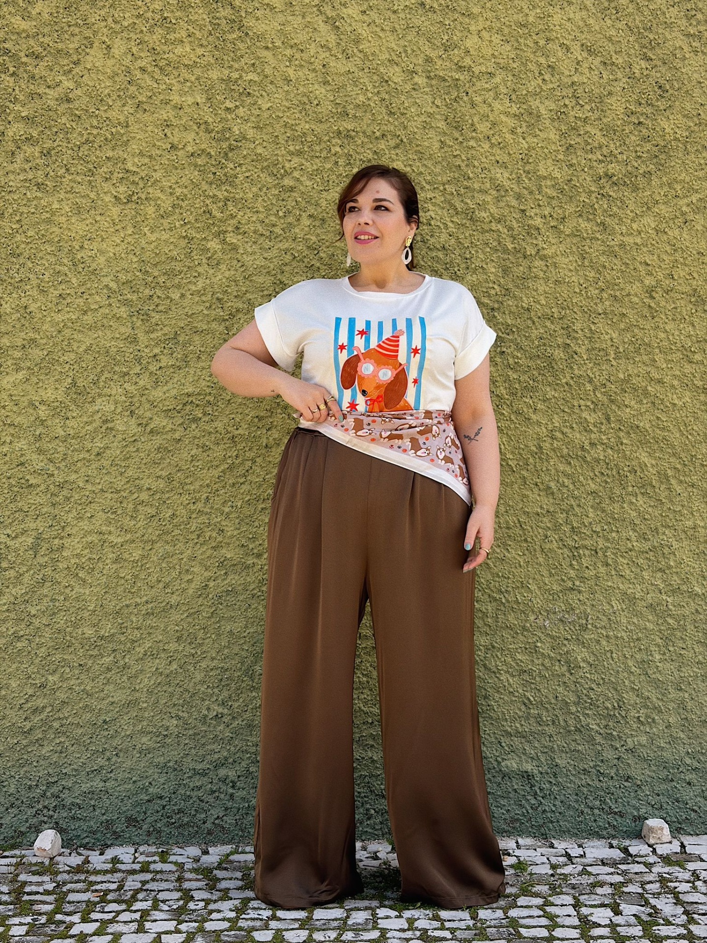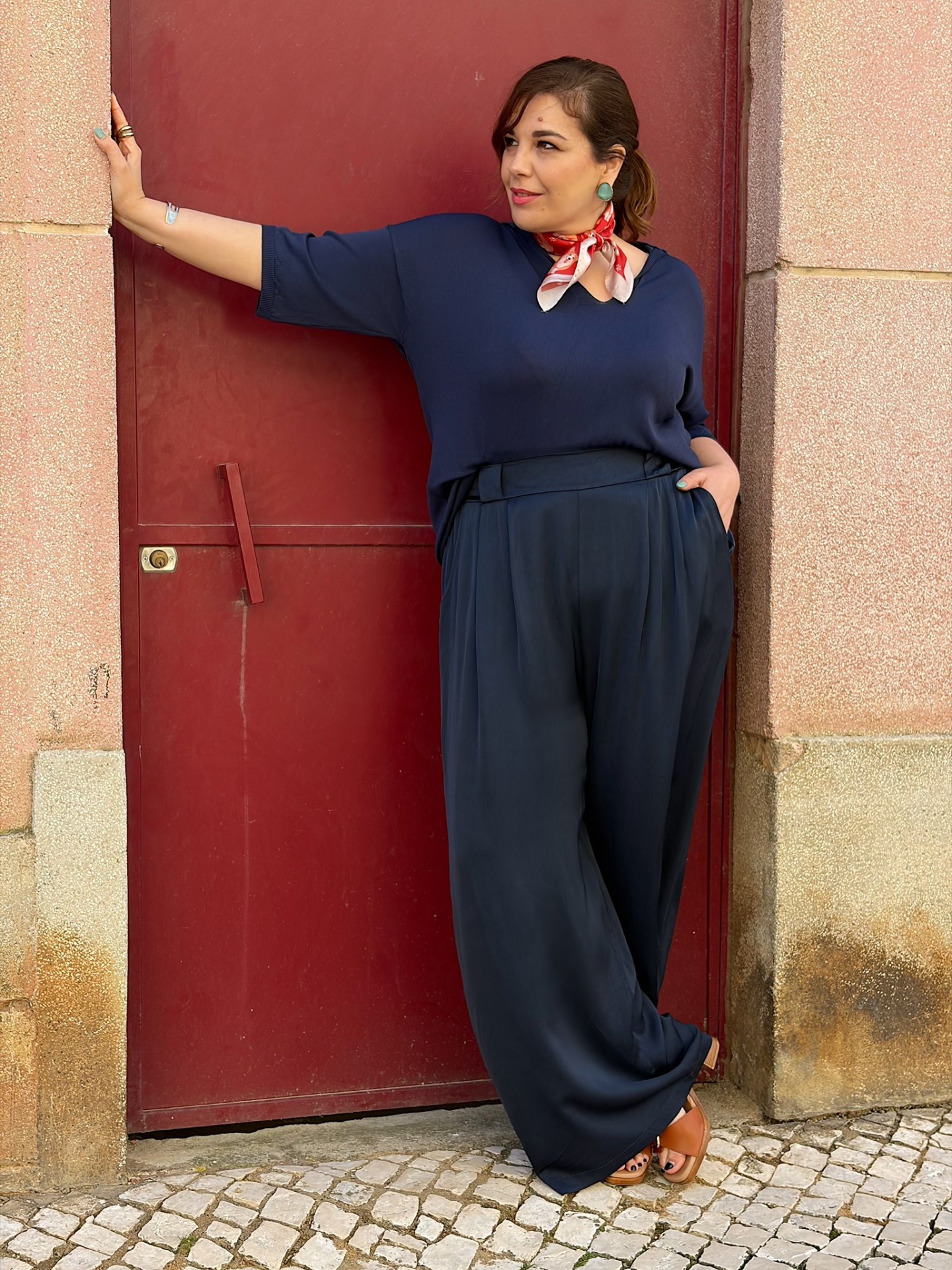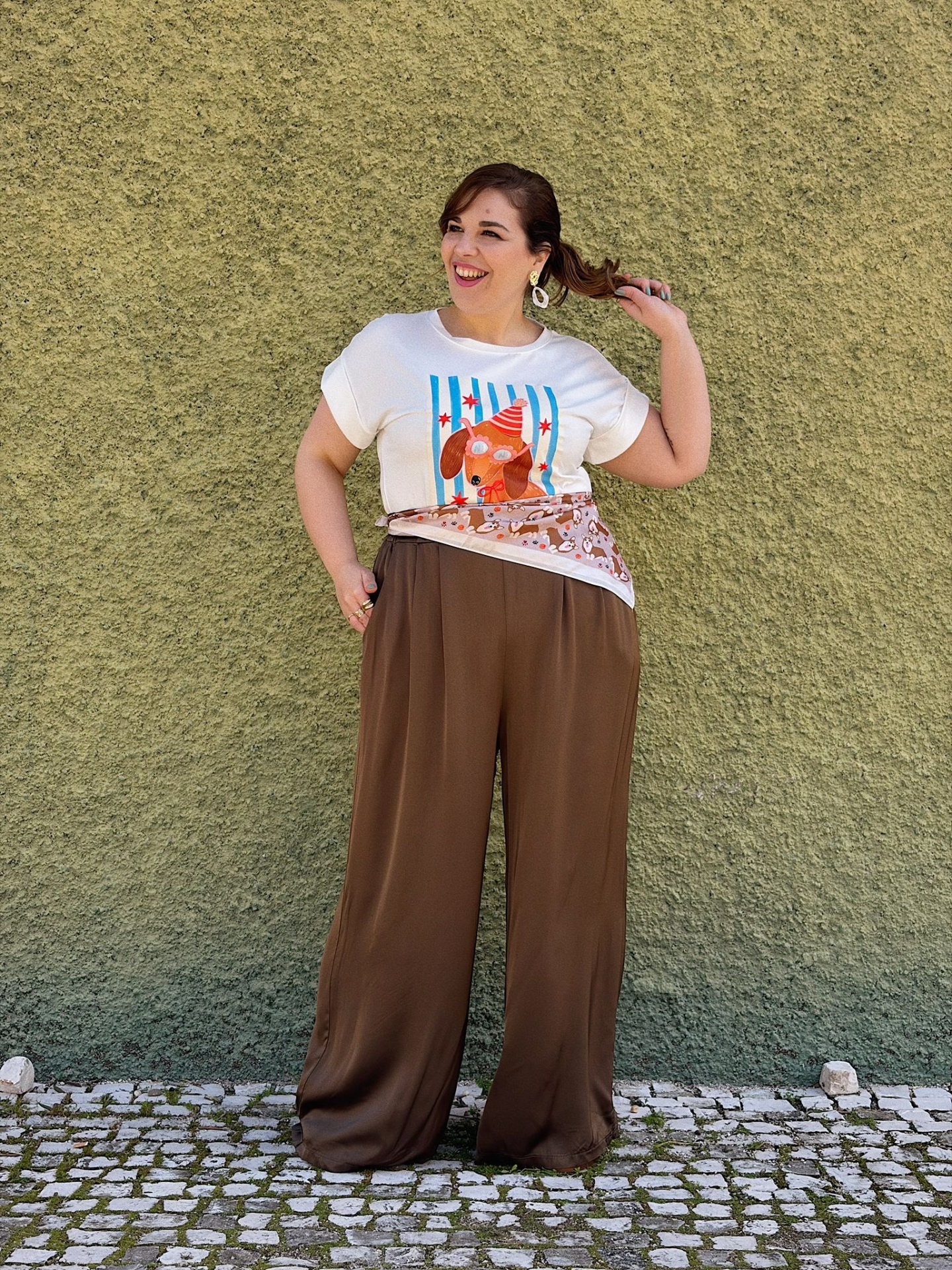 Calças acetinadas em modelo Pantalonas.