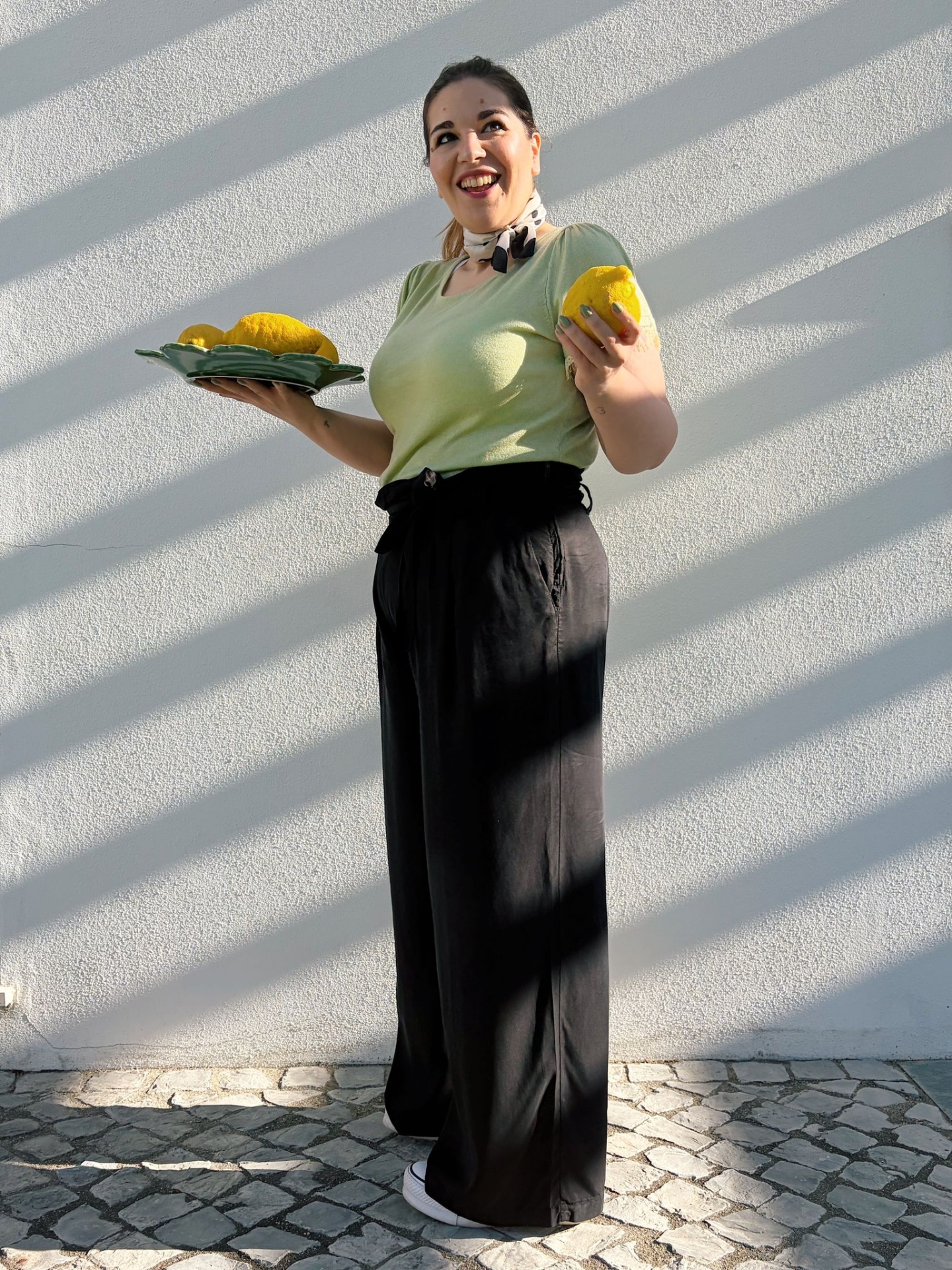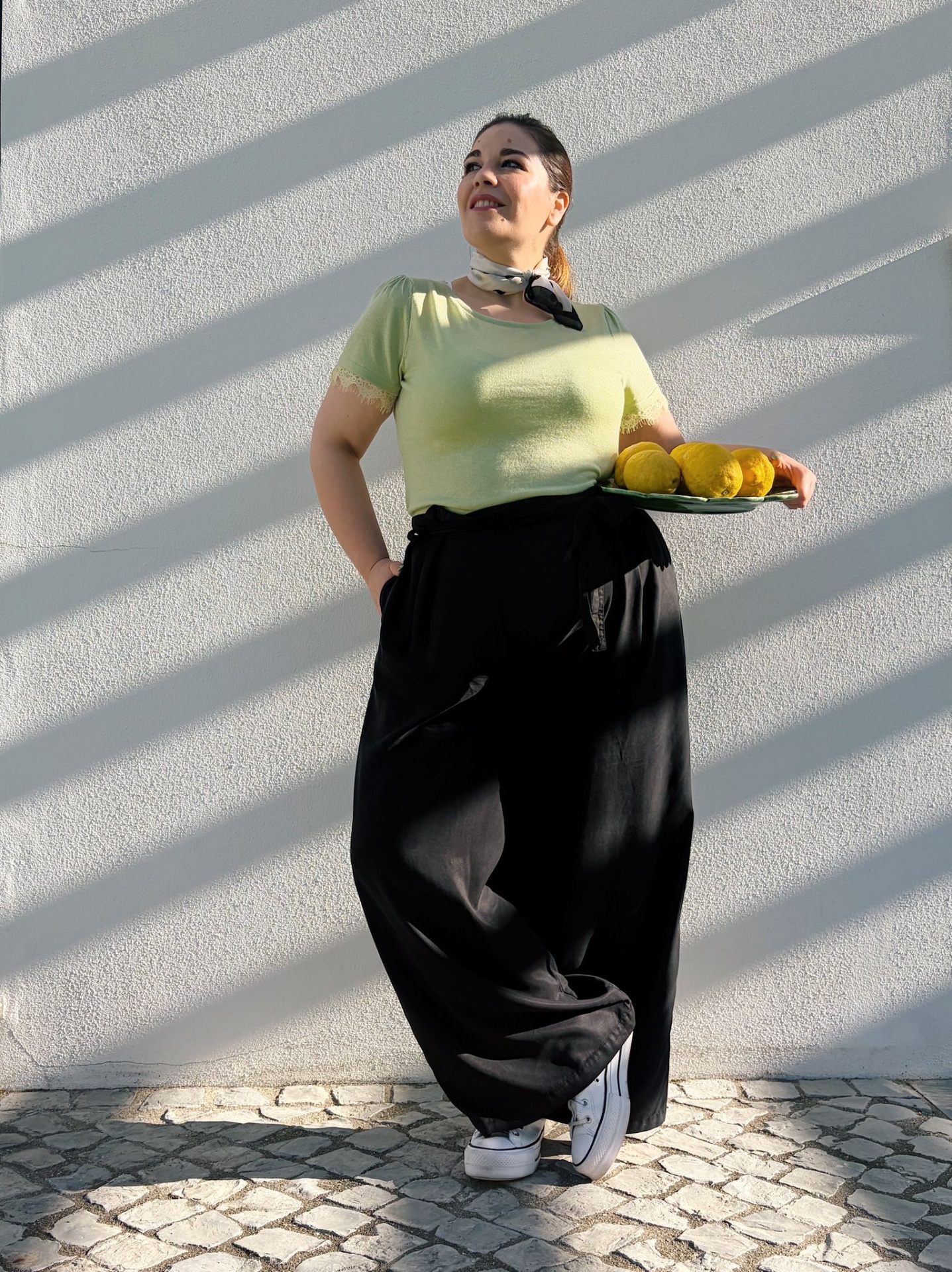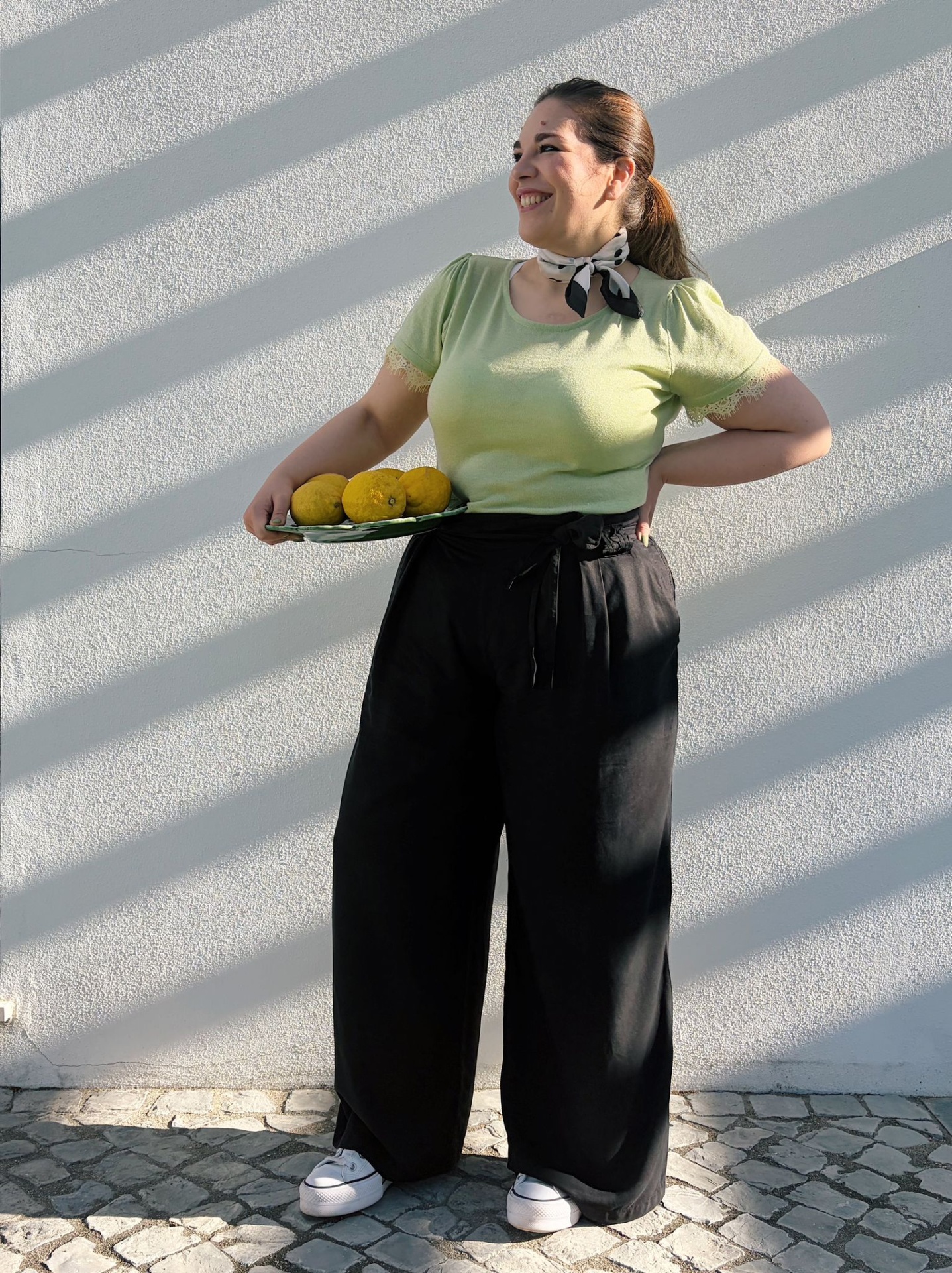 Calças estilo Pantalonas originais com presilhas e cinto (amovível).