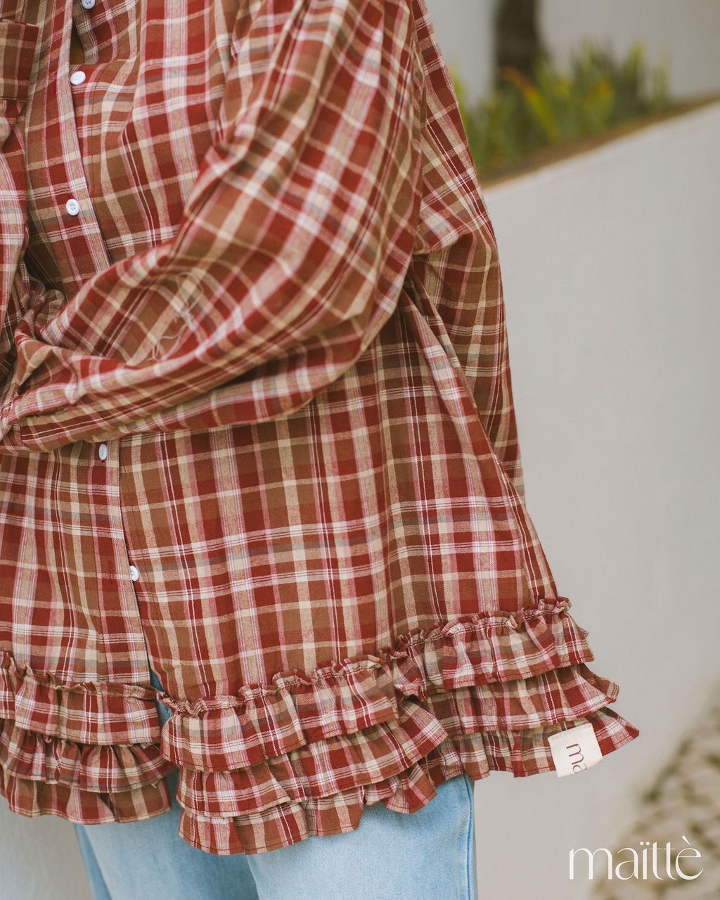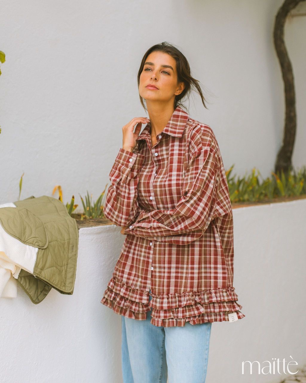 Camisa de xadrez com ajuste solto e inspiração romântica.