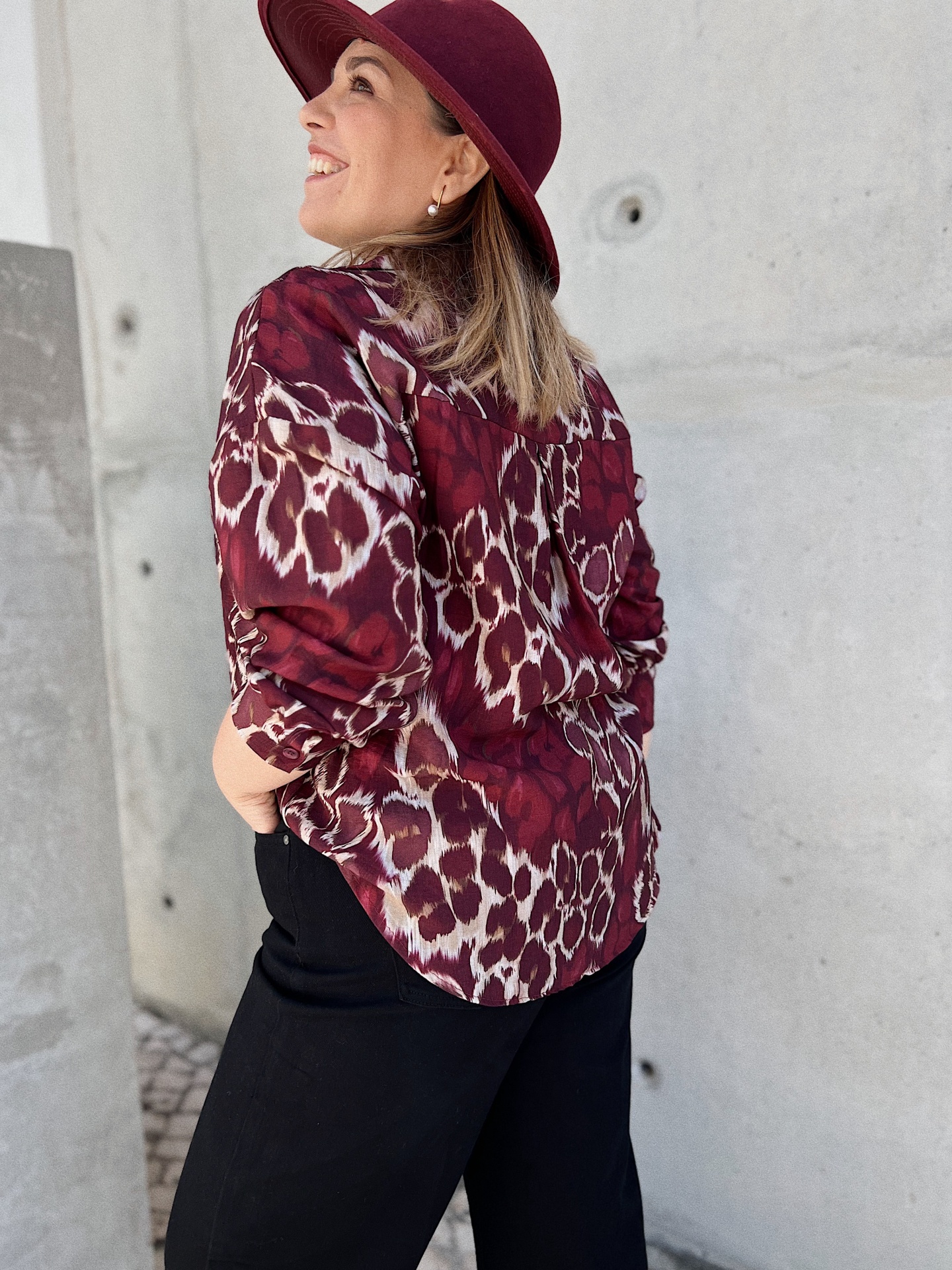 Camisa com ajuste solto, num tecido confortável e mais composto com um padrão animal print único e original.