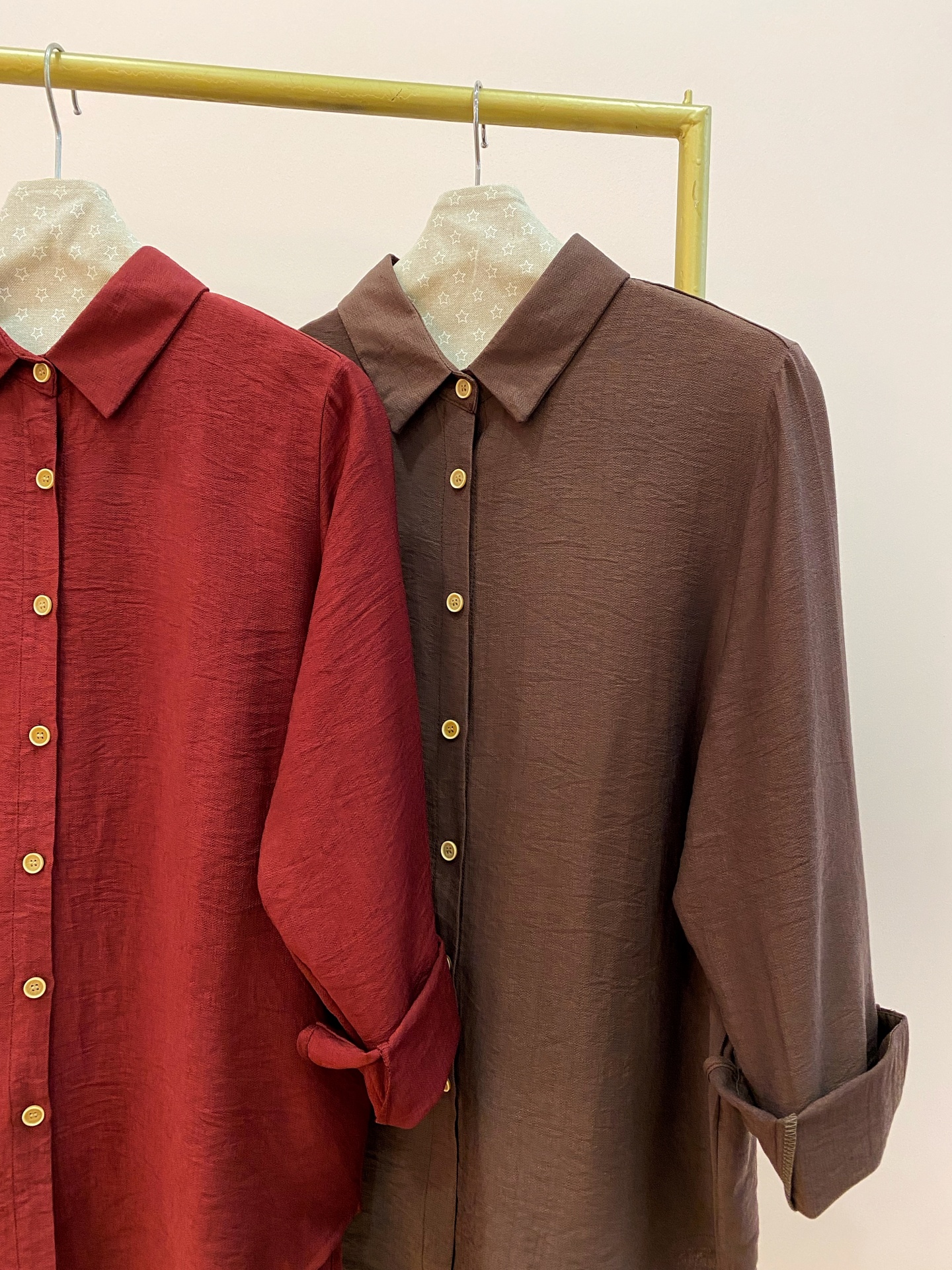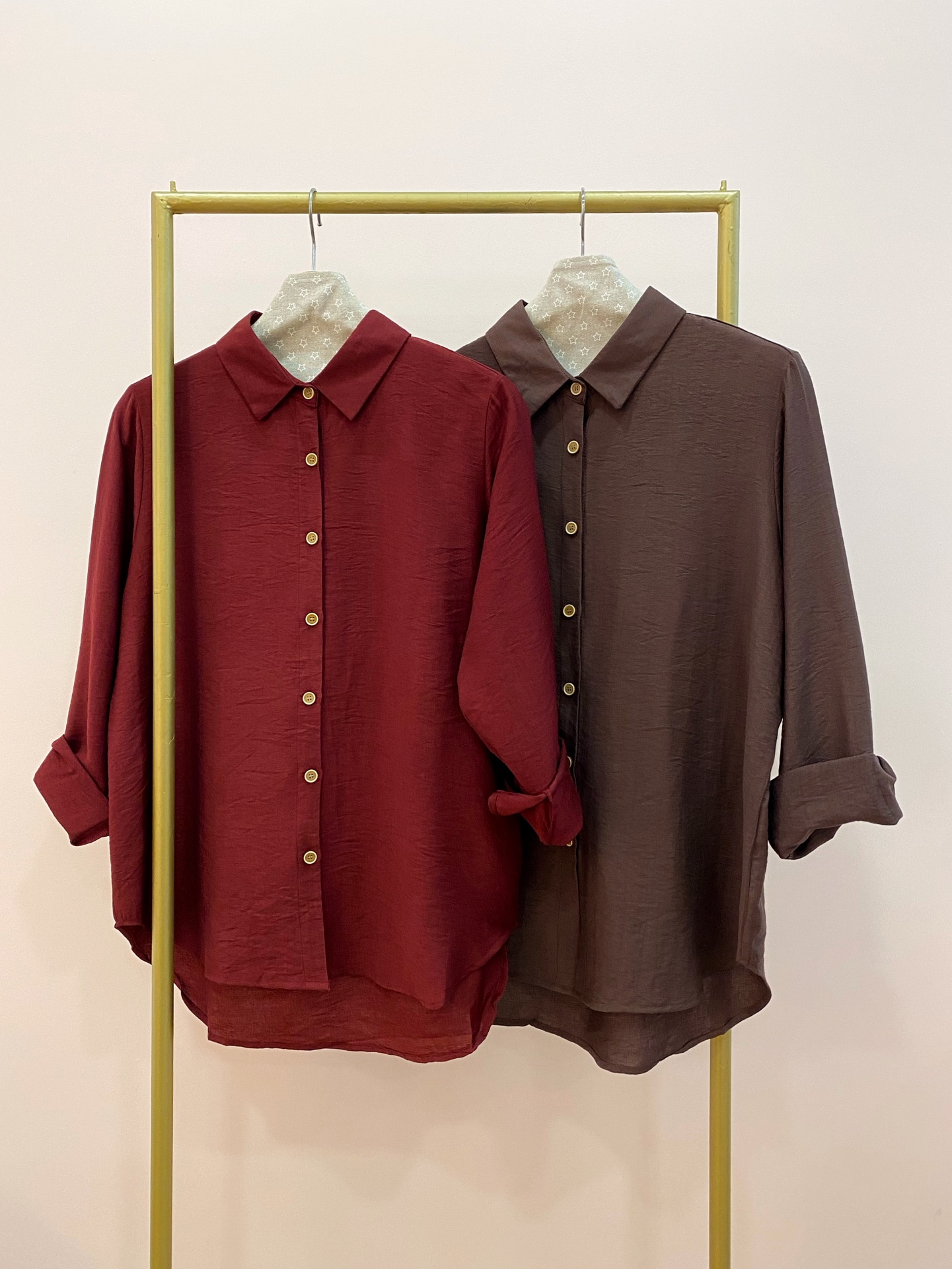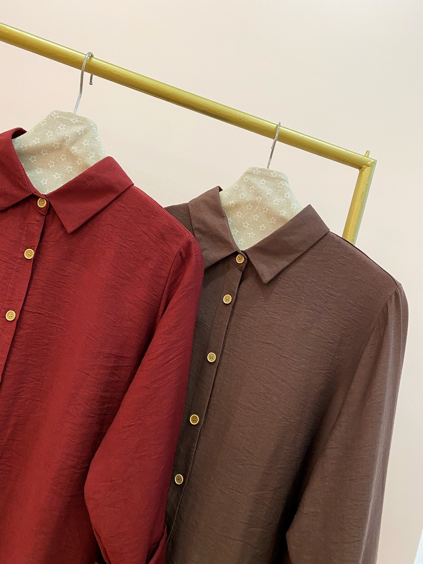 Mangas compridas com botão no punho. Tecido com uma leve textura muito agradável ao toque.