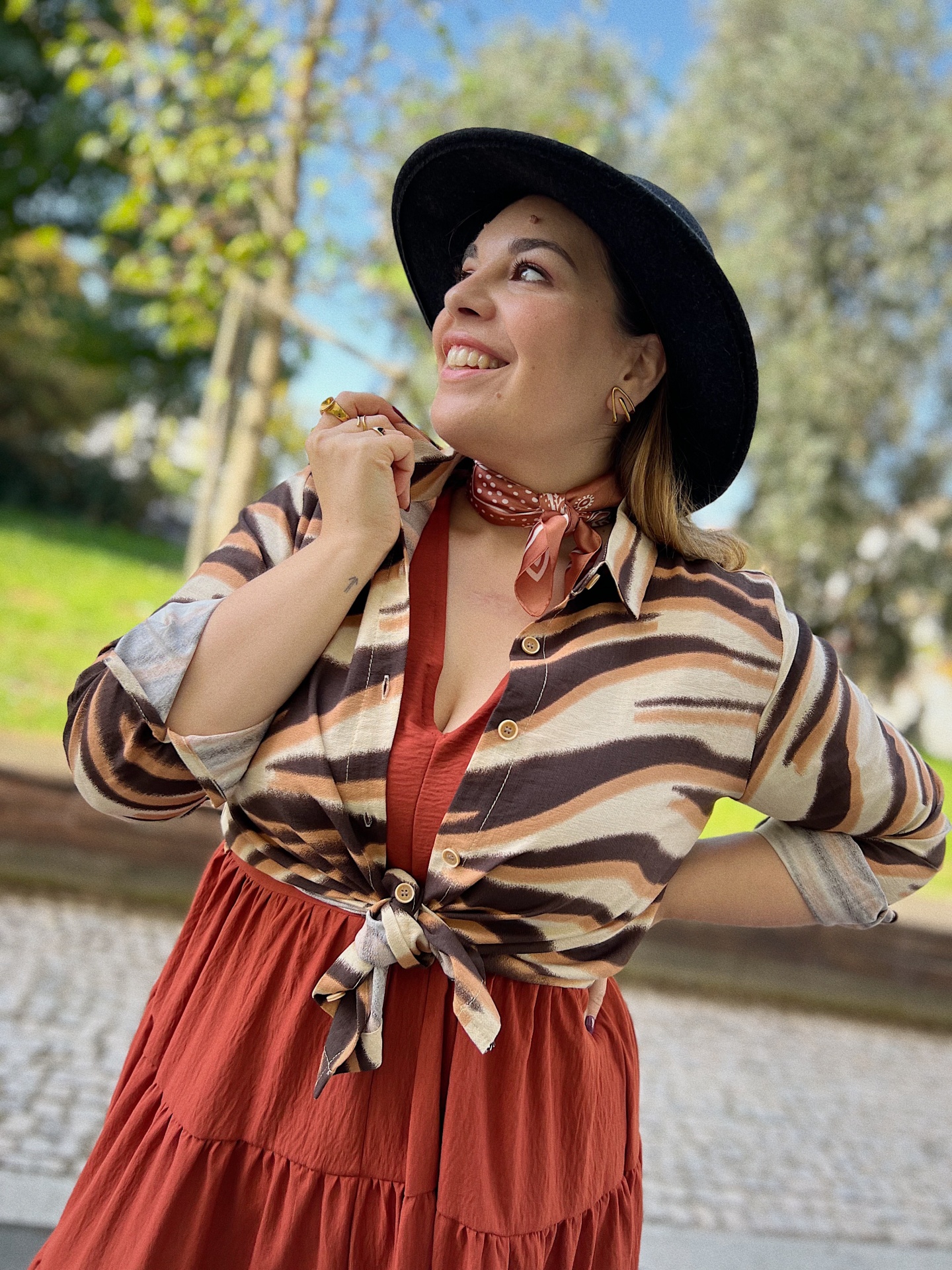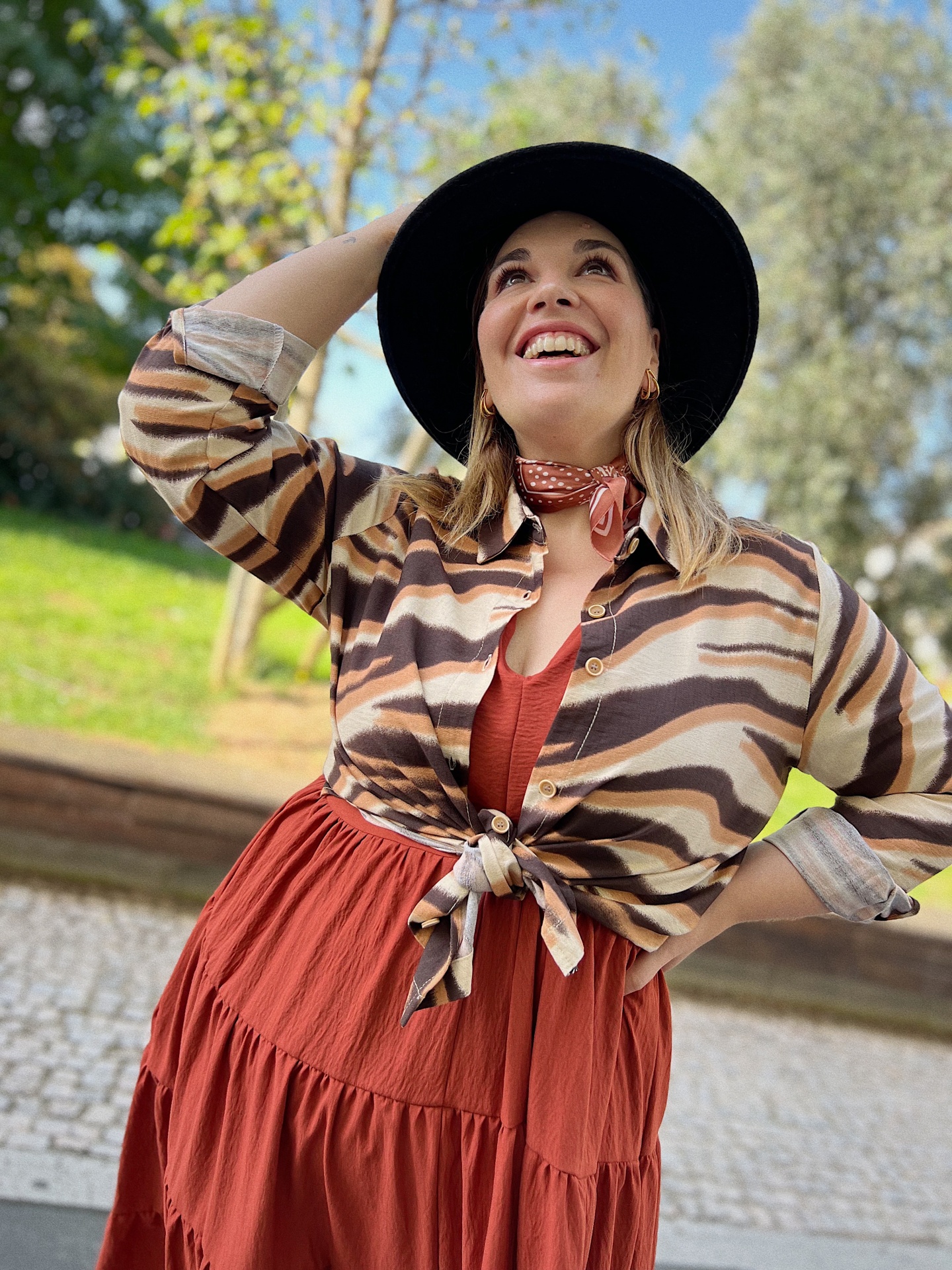 Um modelo um pouco mais original com um padrão animal print que nos deixa criar Looks divertidos e ousados!