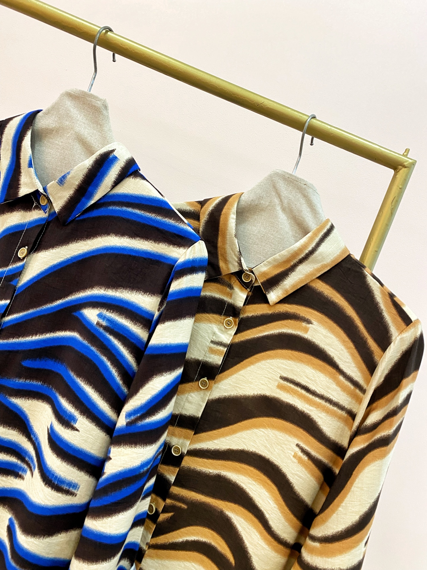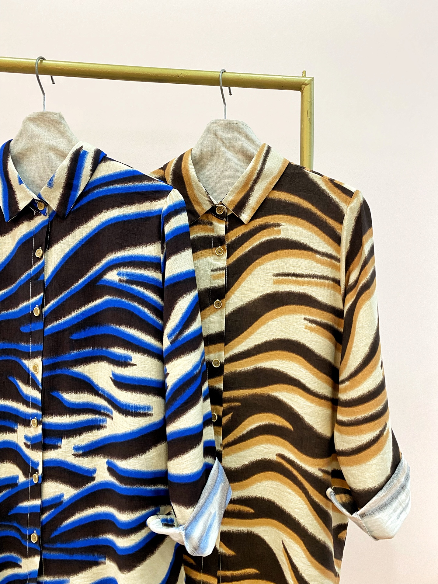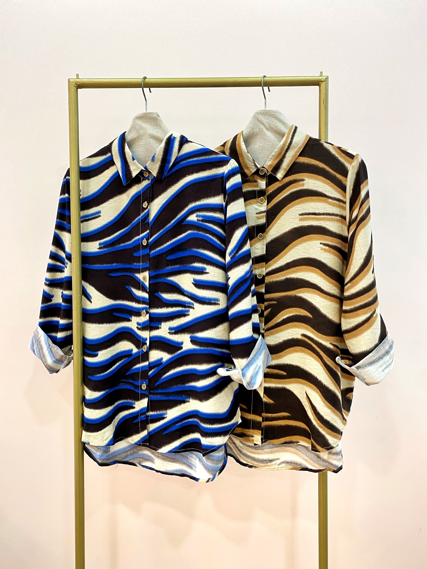 Camisa com ajuste solto e corte recto em padrão animal print original.