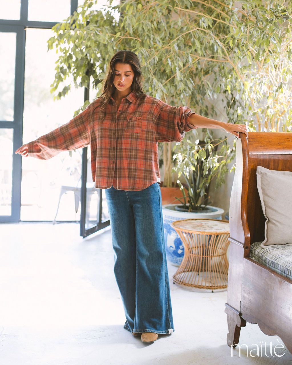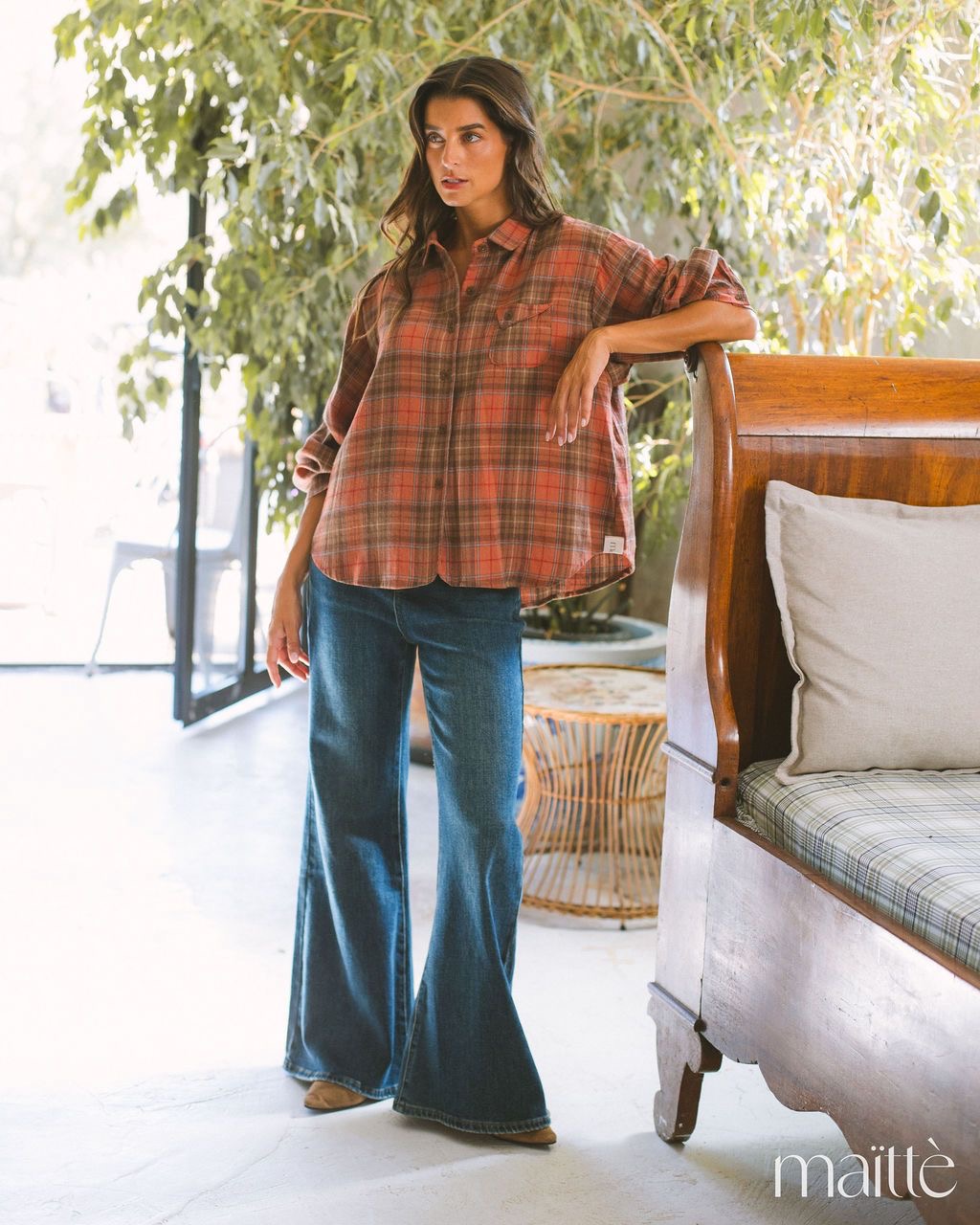 Camisa de flanela (leve e macia) com padrão de xadrez.