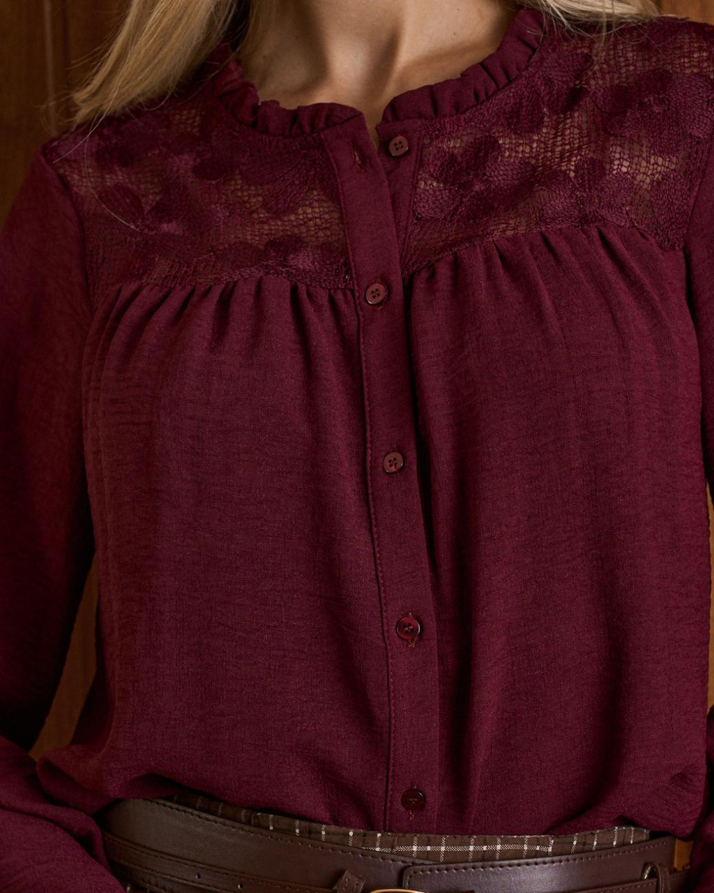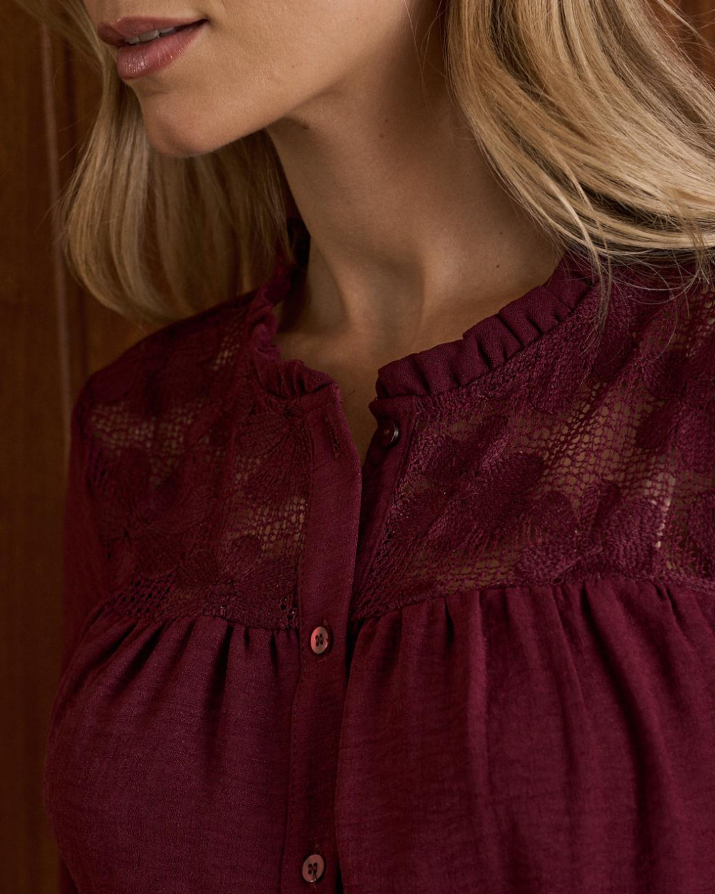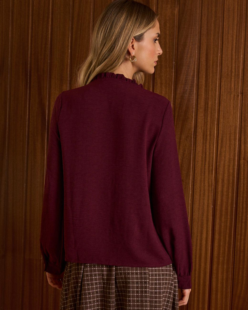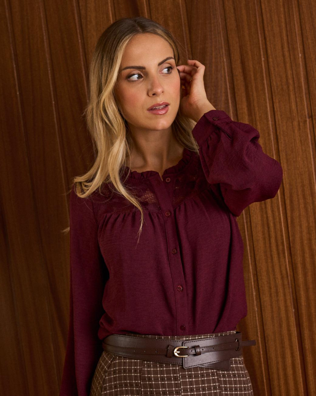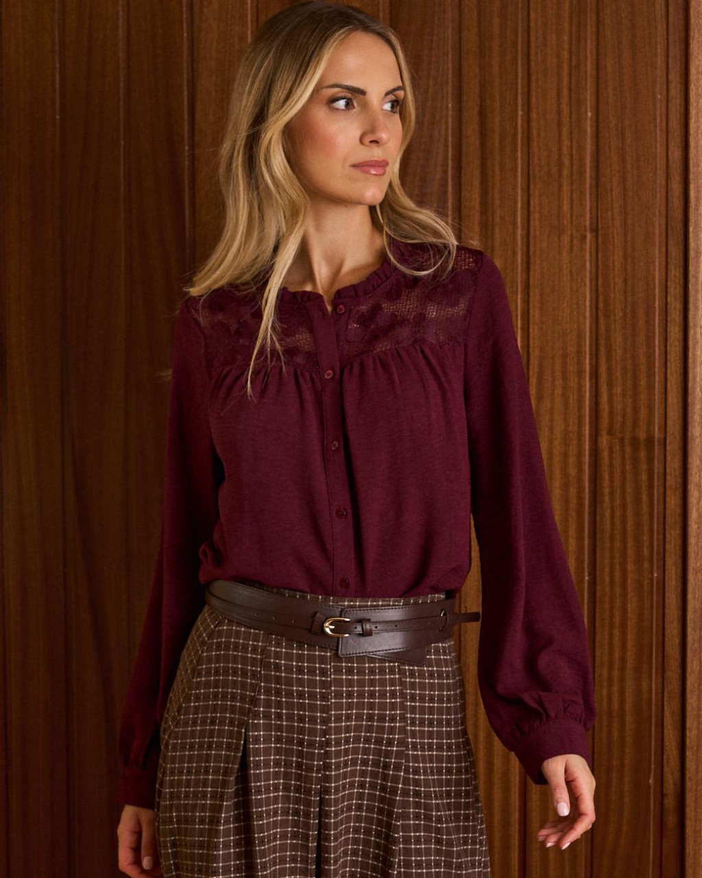 Camisa elegante em bordeaux escuro com óptimo cair, num ajuste solto.