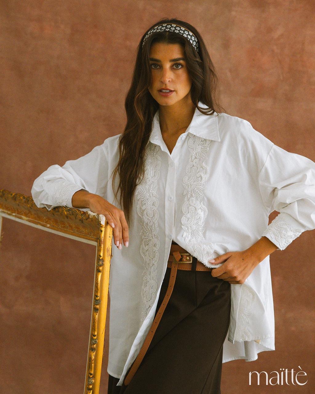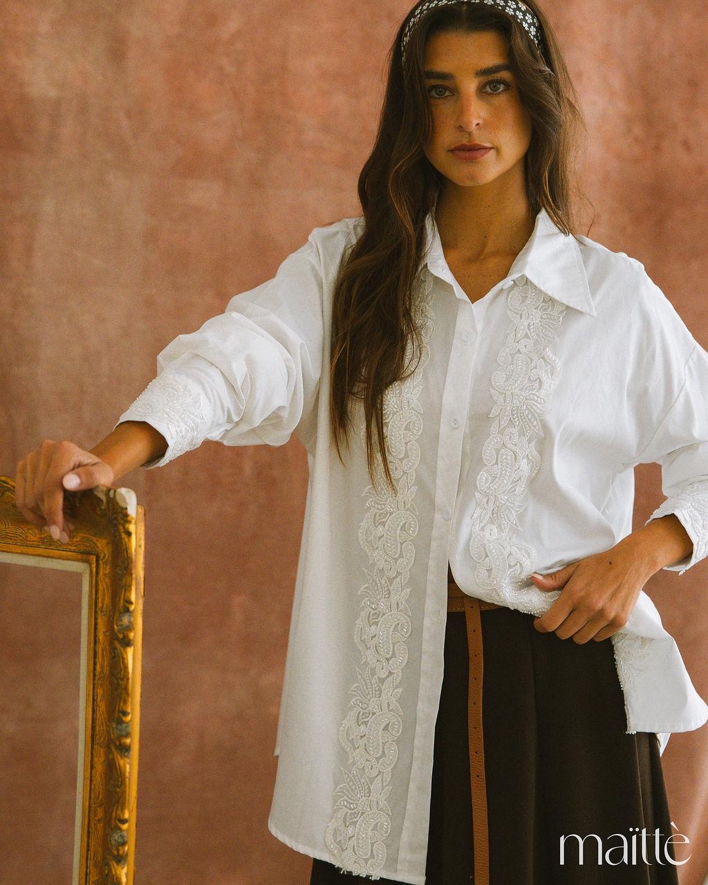 CAMISA BRANCA COM APLICAÇÕES