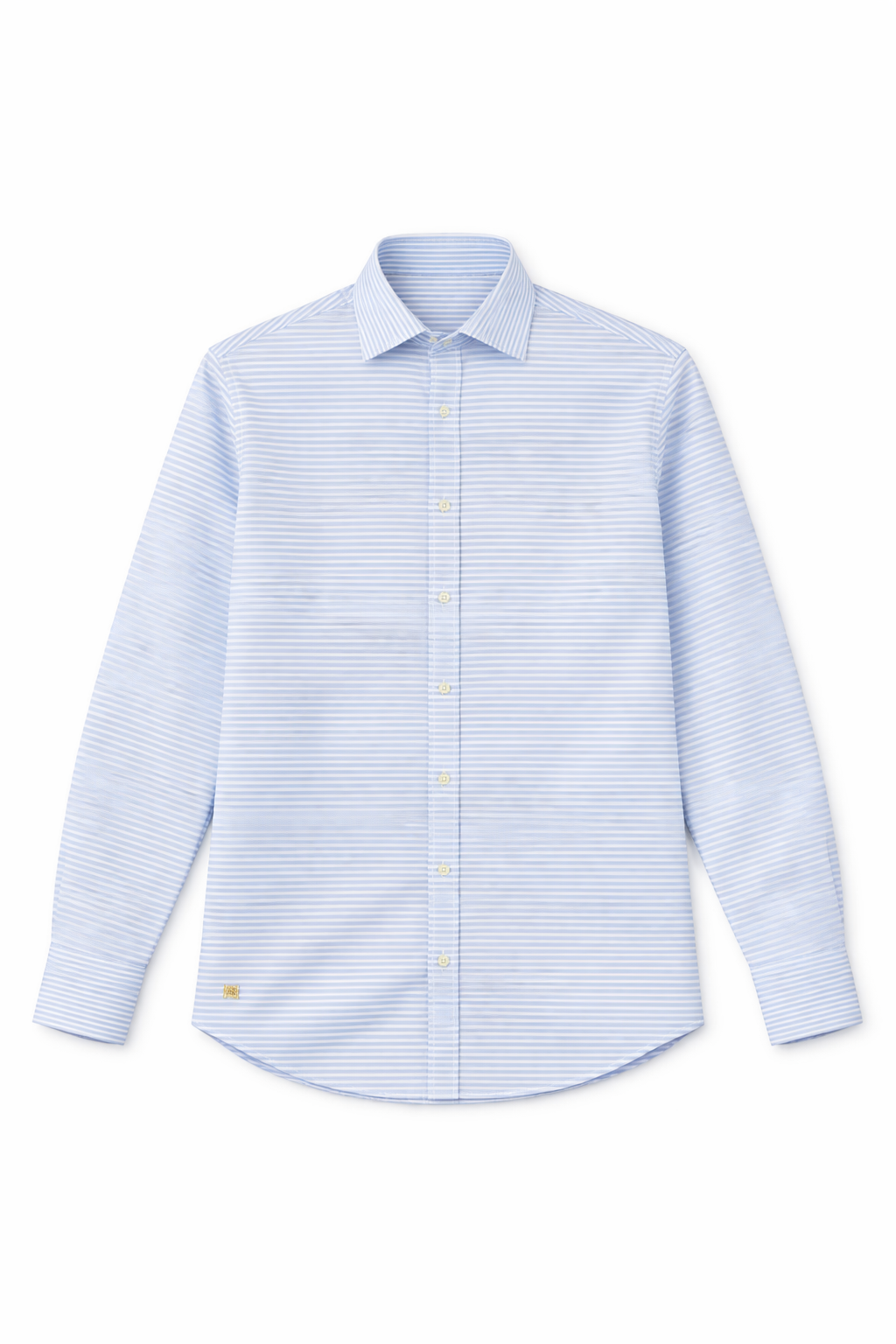 Camisa clássica em algodão com padrõa de mil riscas em tons de branco e azul claro.