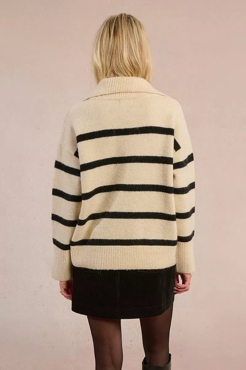 Camisola de malha bem quentinha e composta em crú com risca preta.