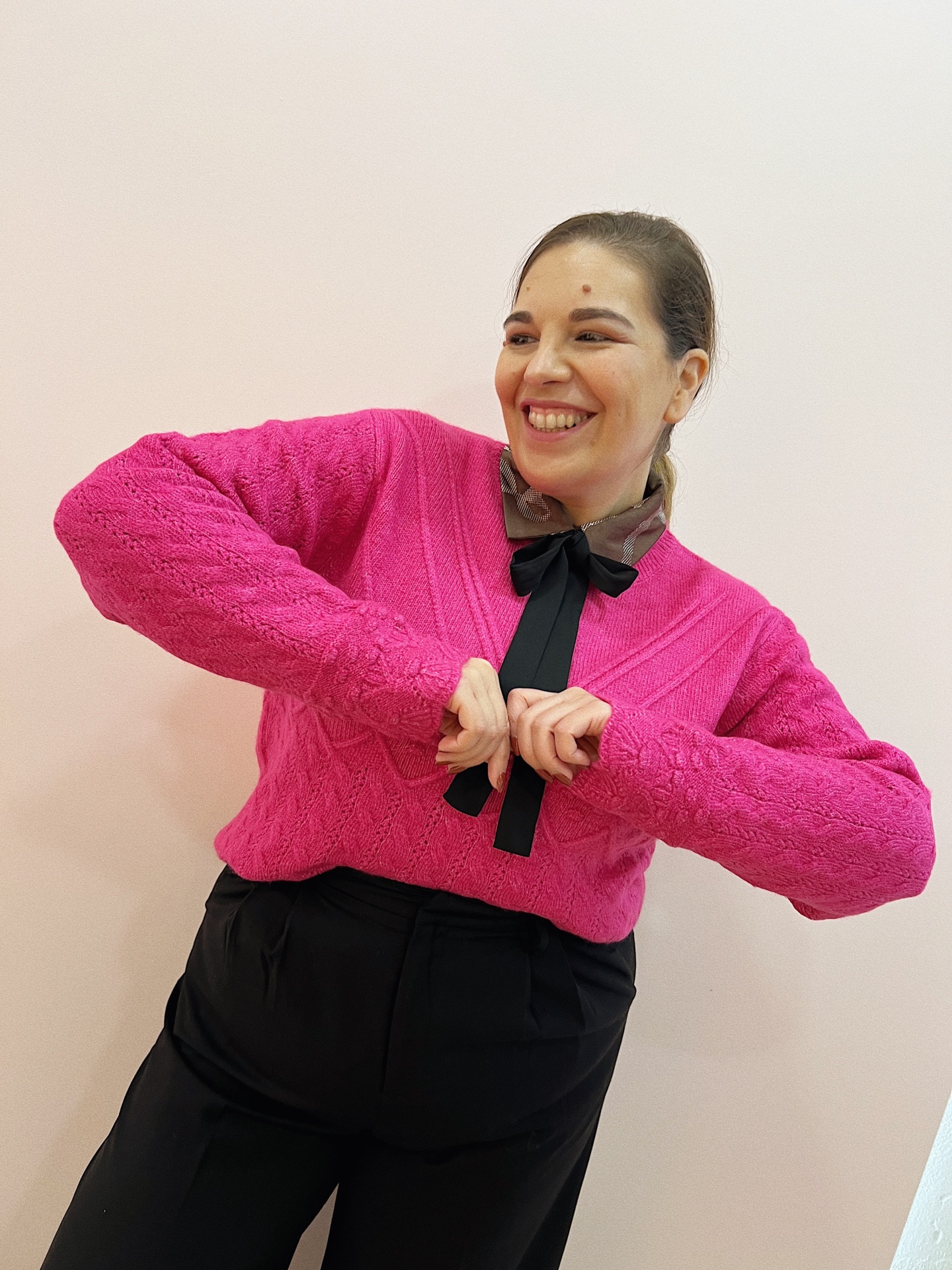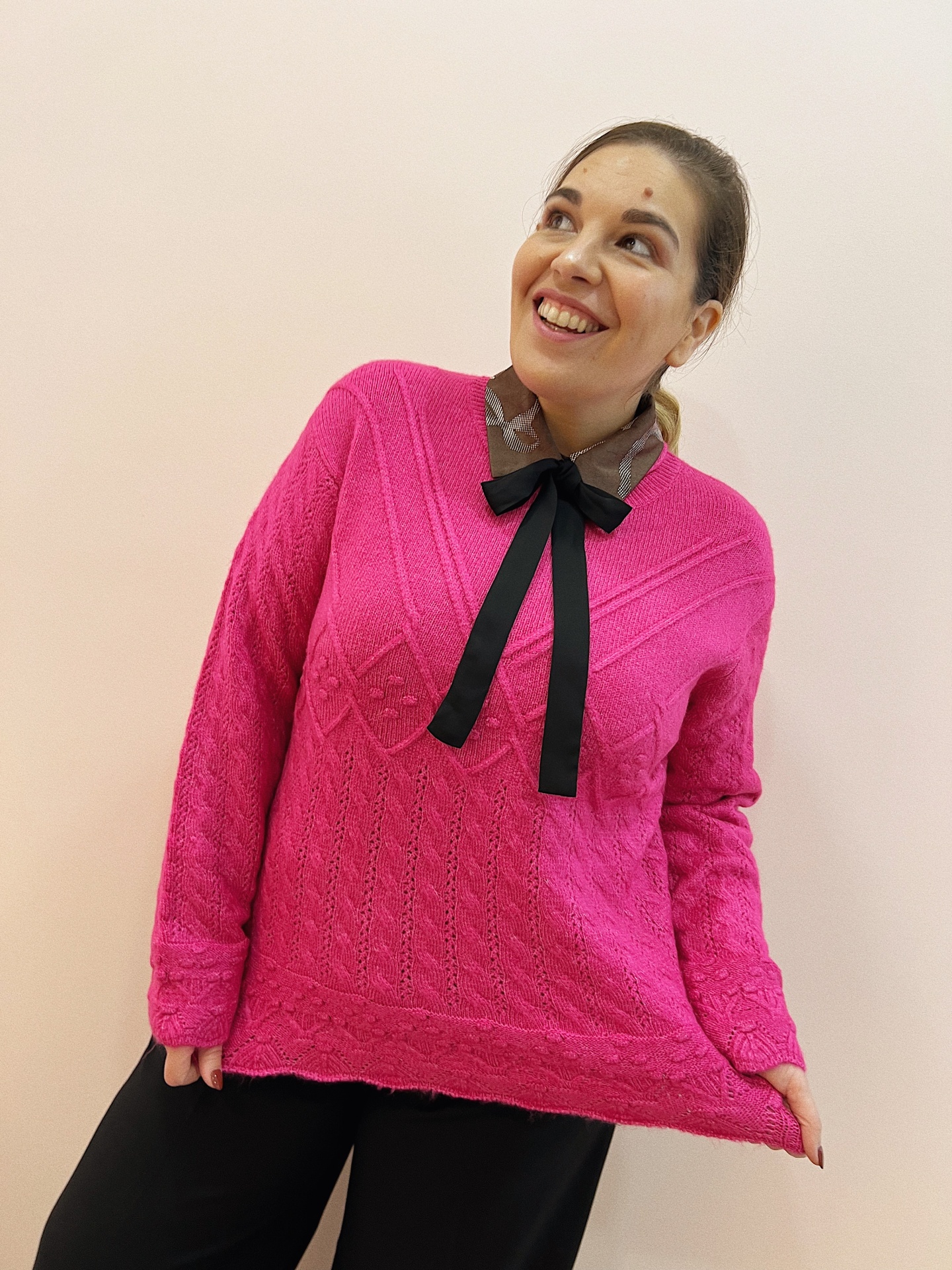 Camisola de malha muito quentinha e composta com ajuste solto.