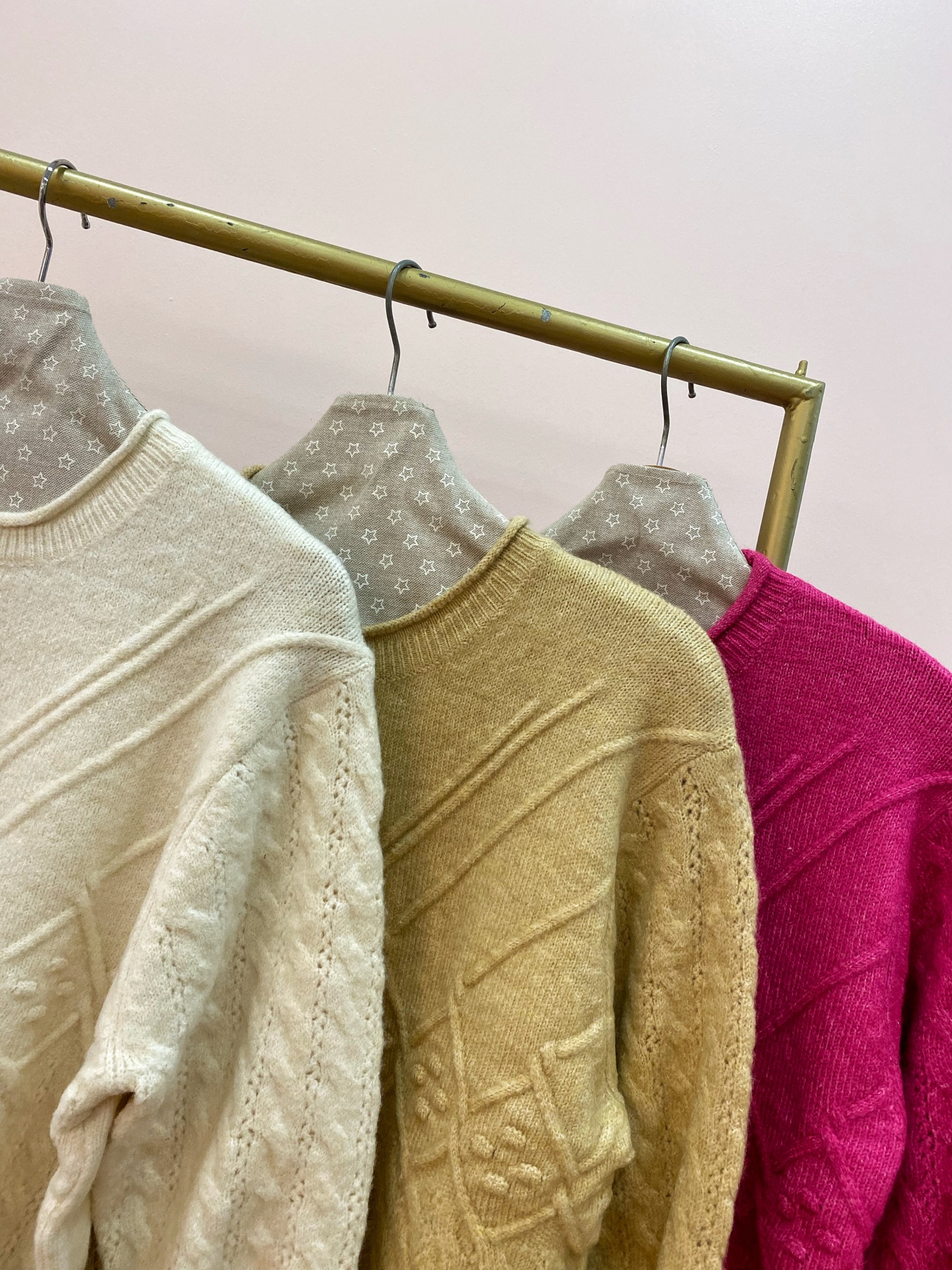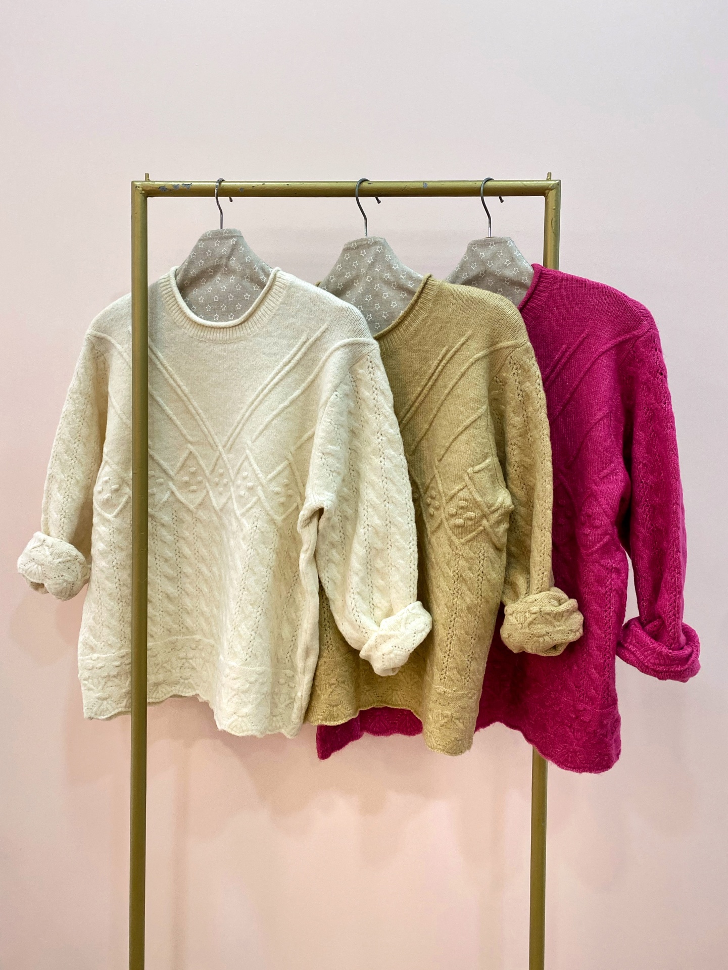 Modelo em malha trabalhada com vários motivos estilo artesanal.