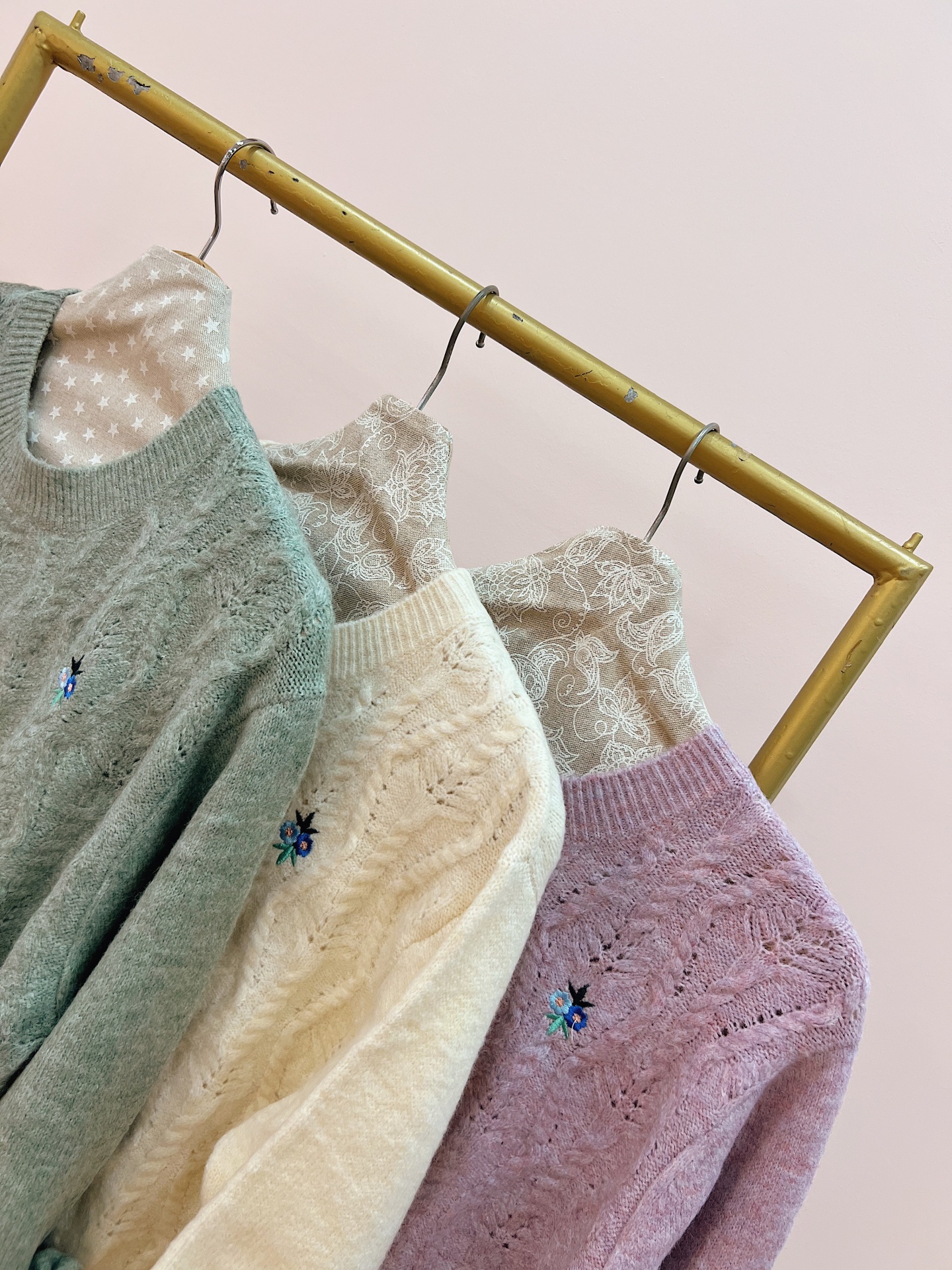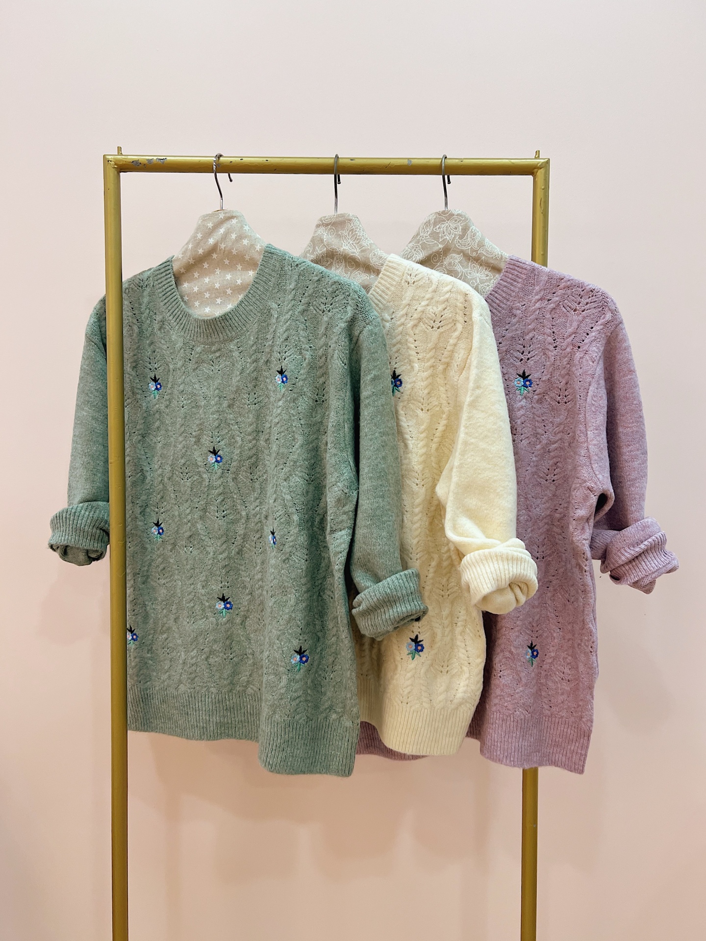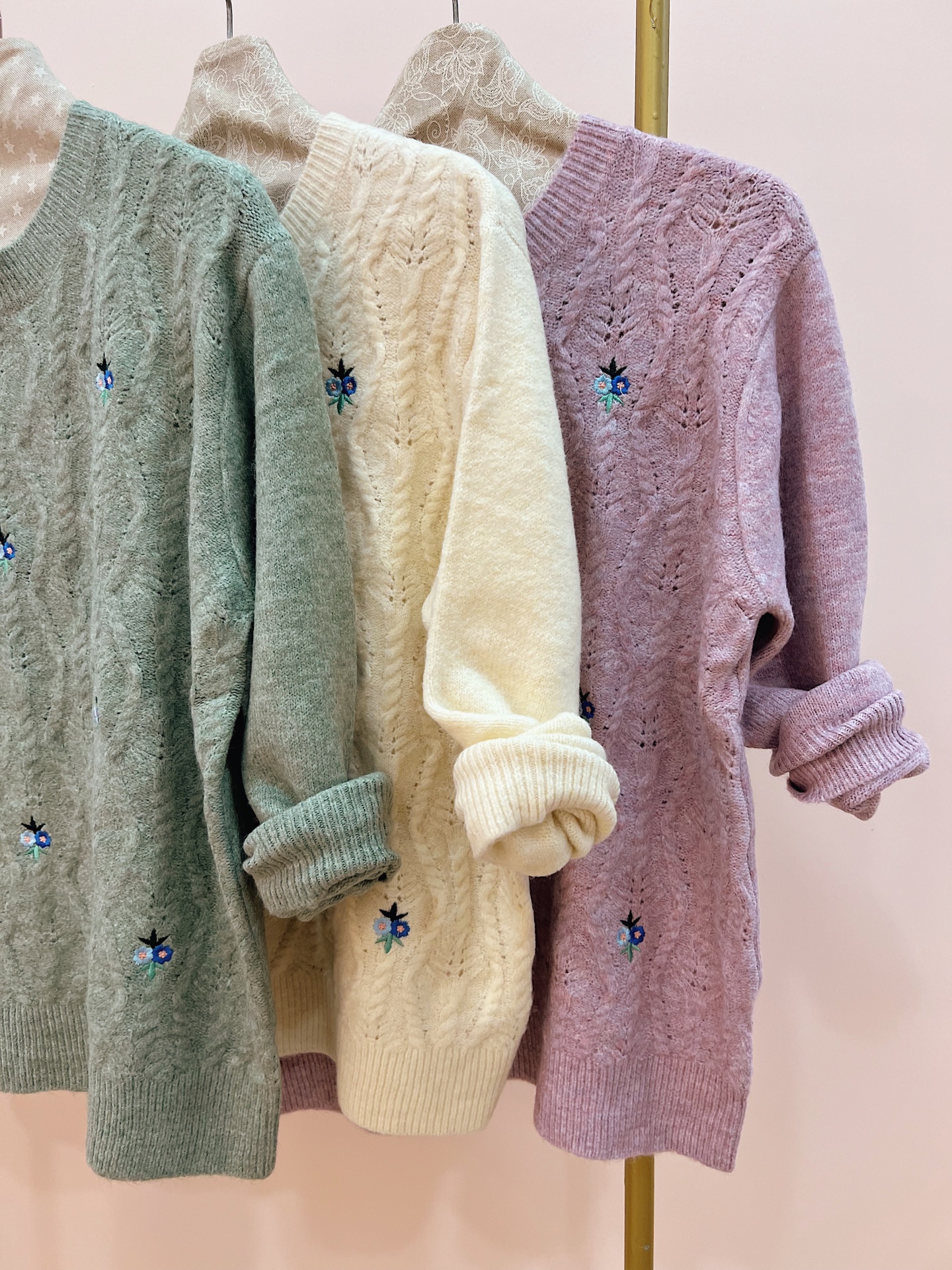 Camisola de malha trabalhada quentinha e macia com flores delicadas e bordadas.