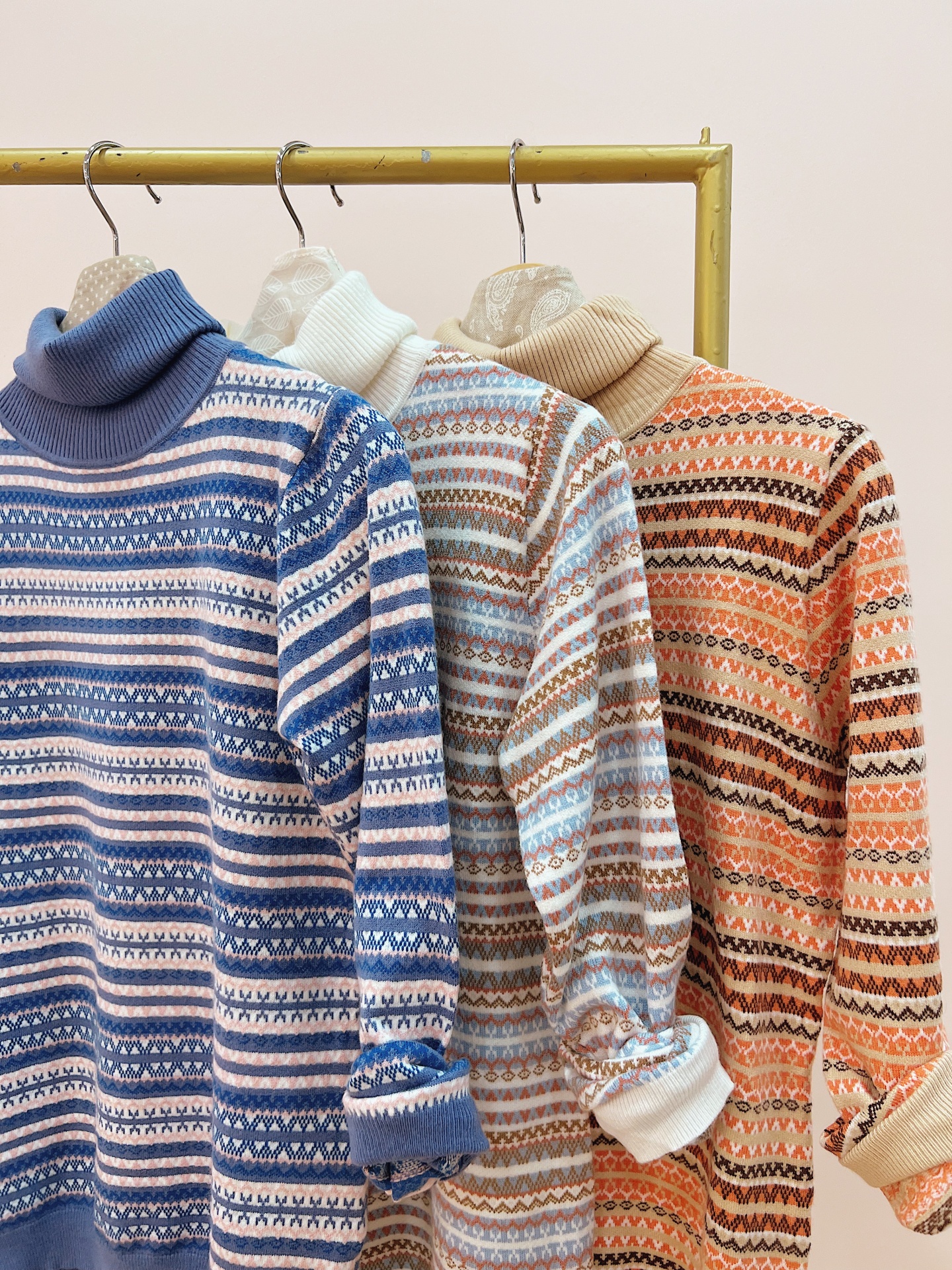 Camisola de malha muito quentinha, macia e confortável com gola alta (canelada) para usar como preferir.