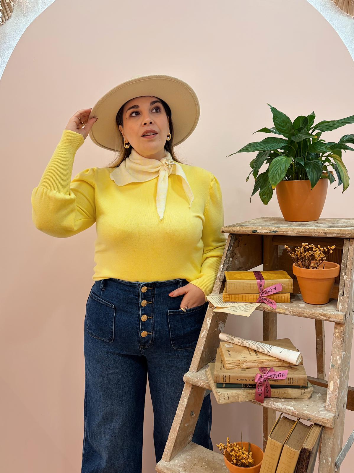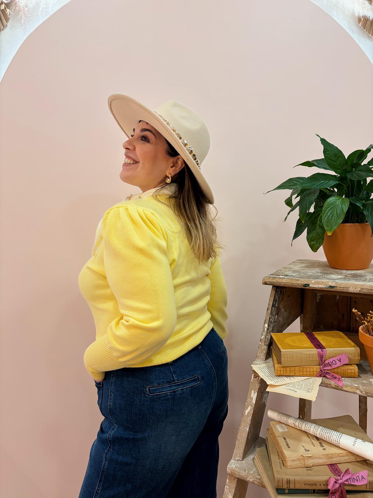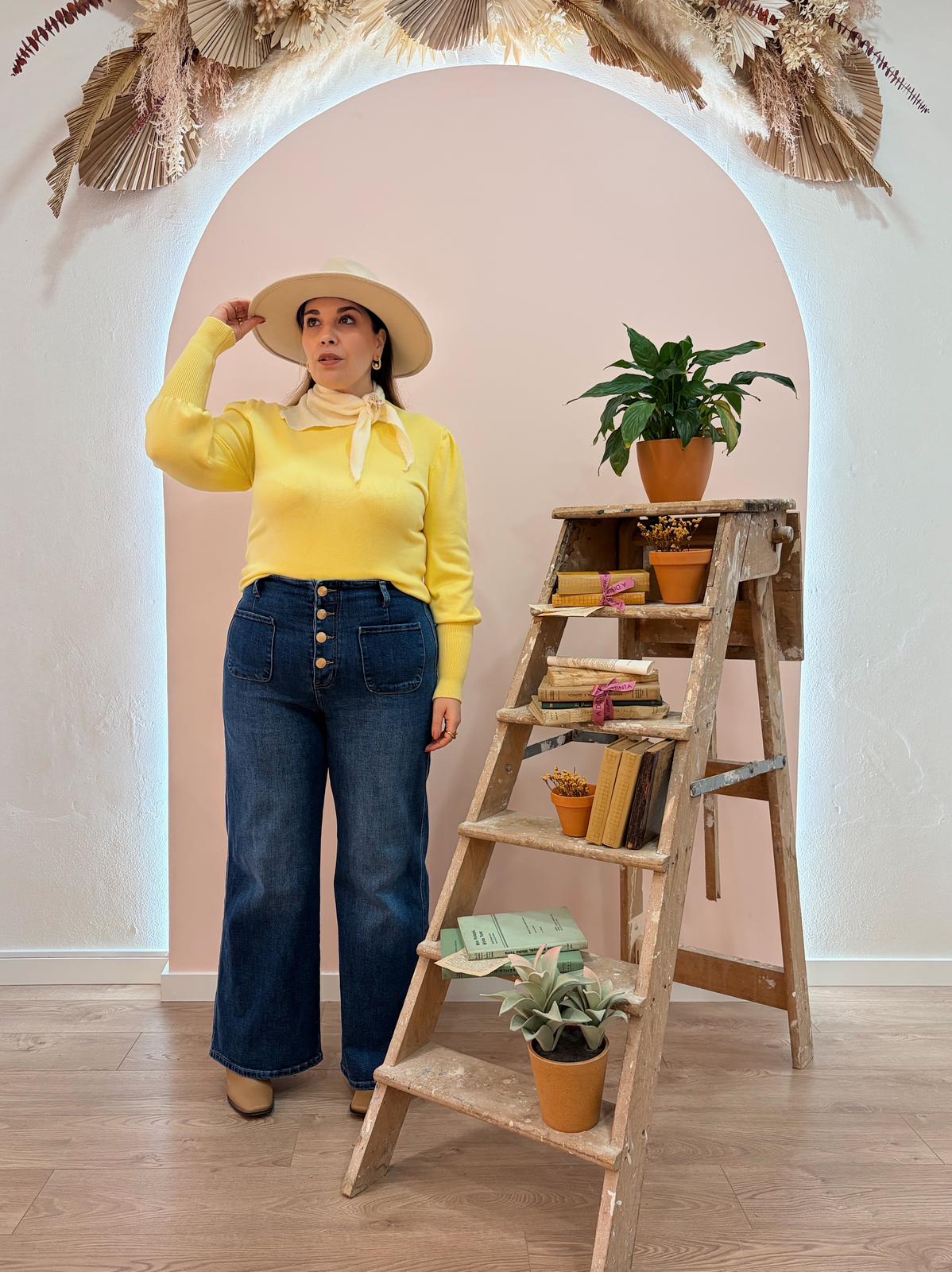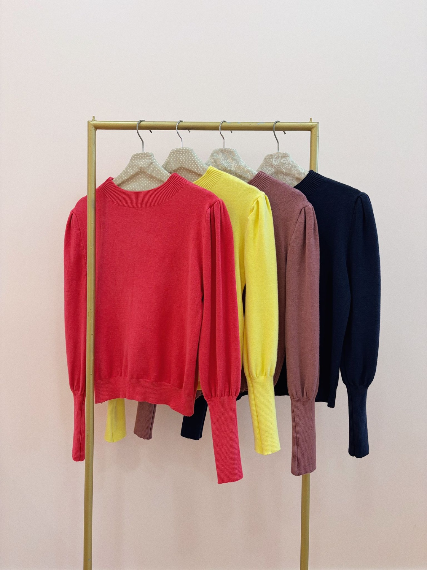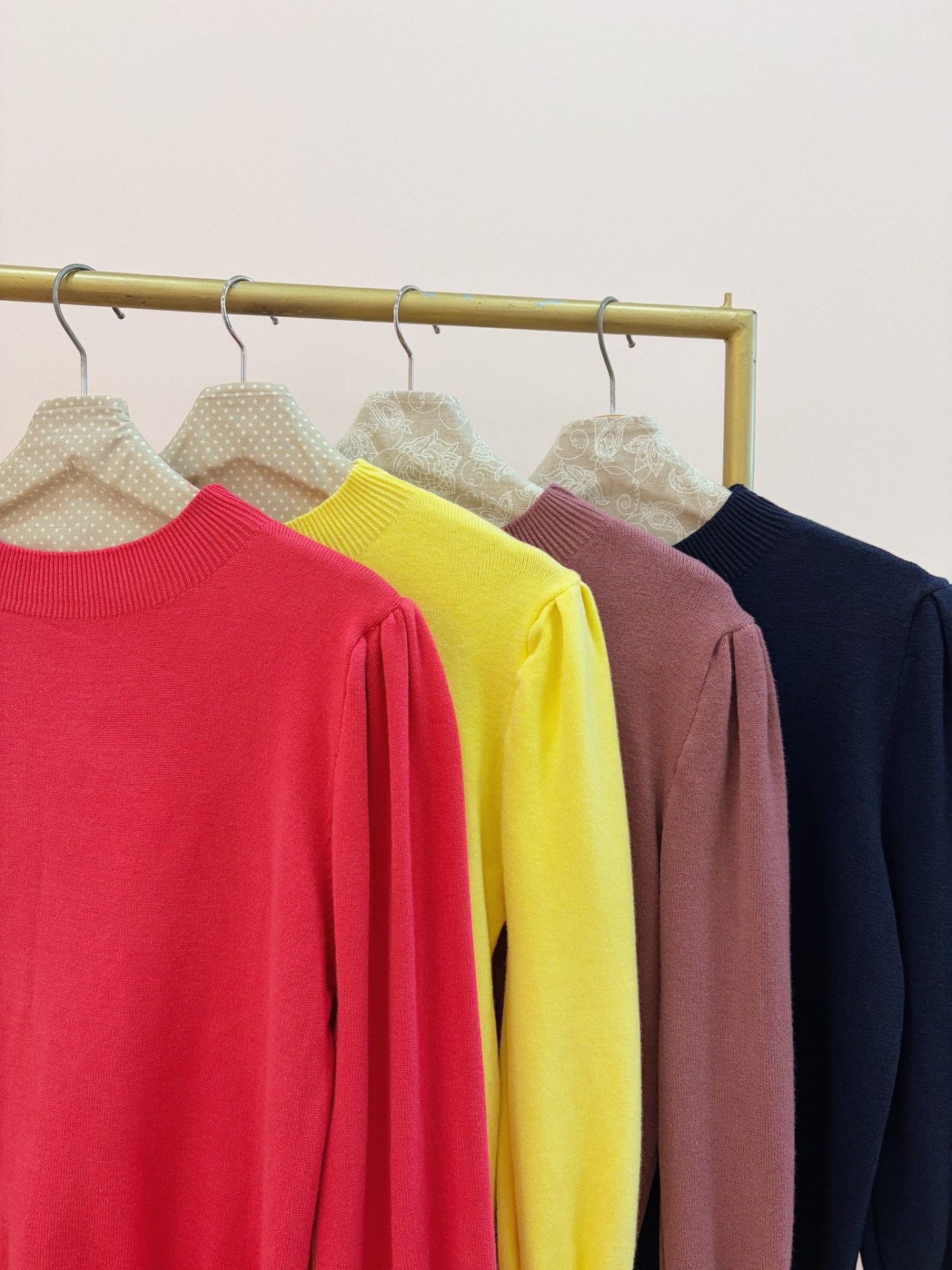 Camisola de malha lisa muito macia e suave. Decote redondo com efeito canelado.