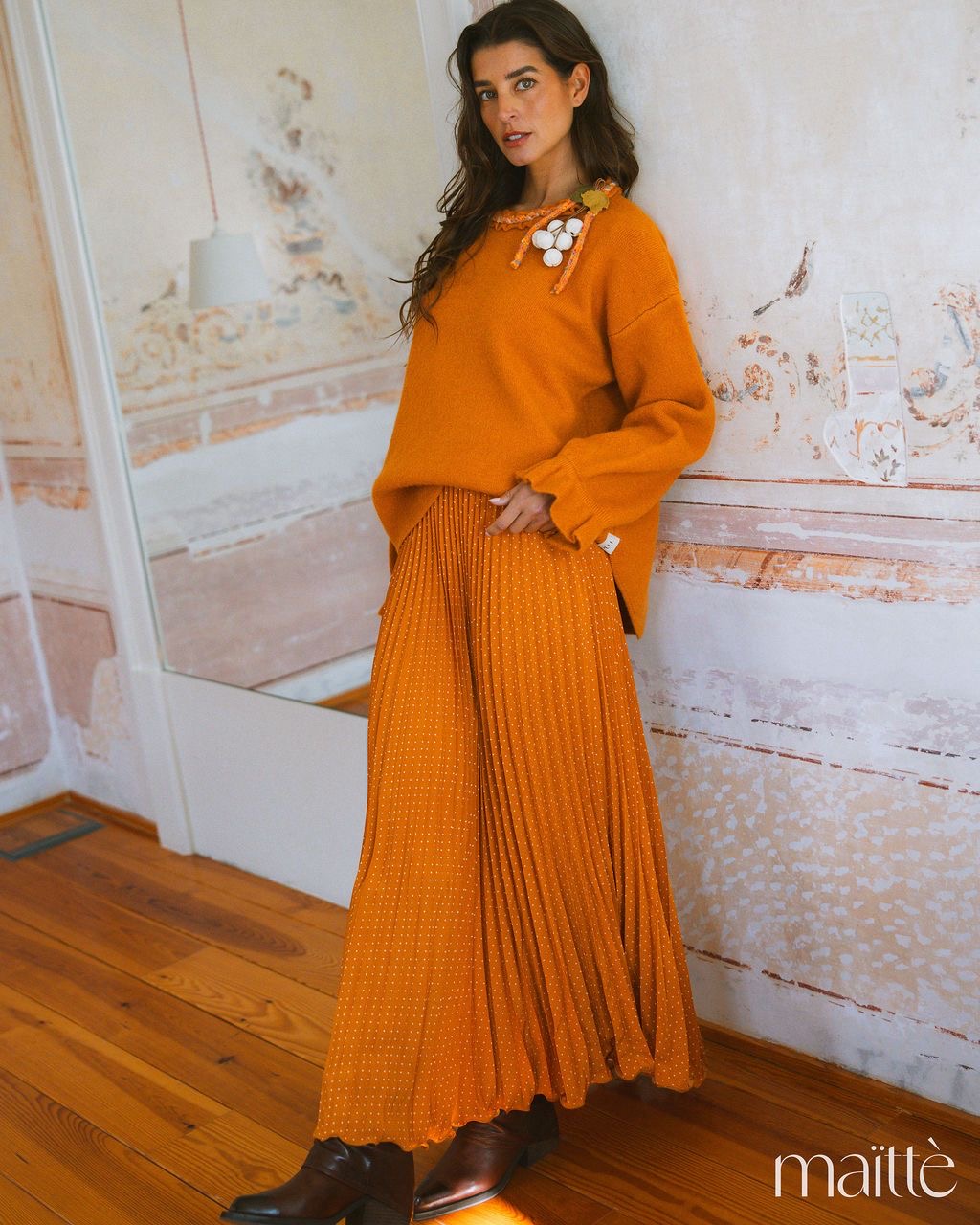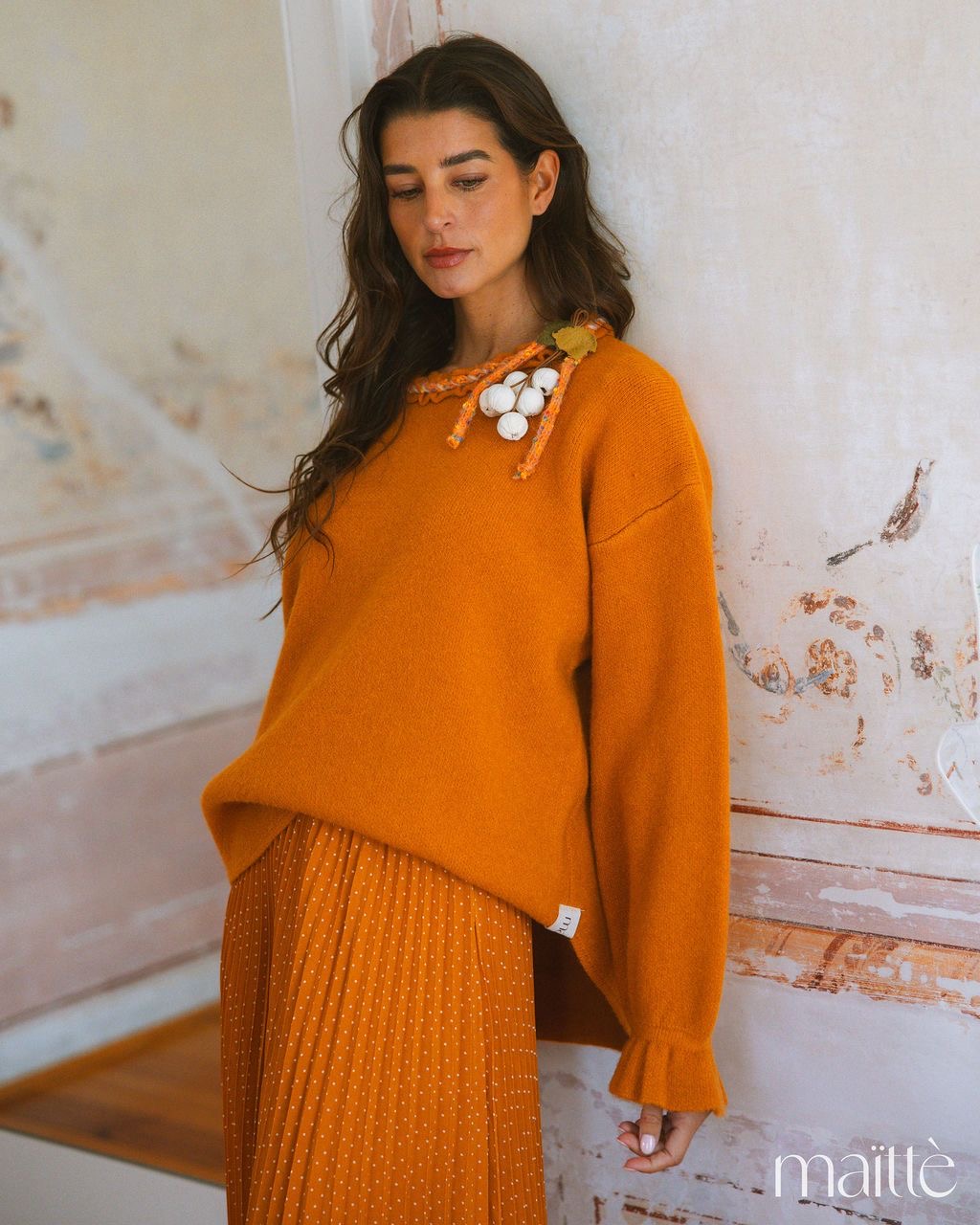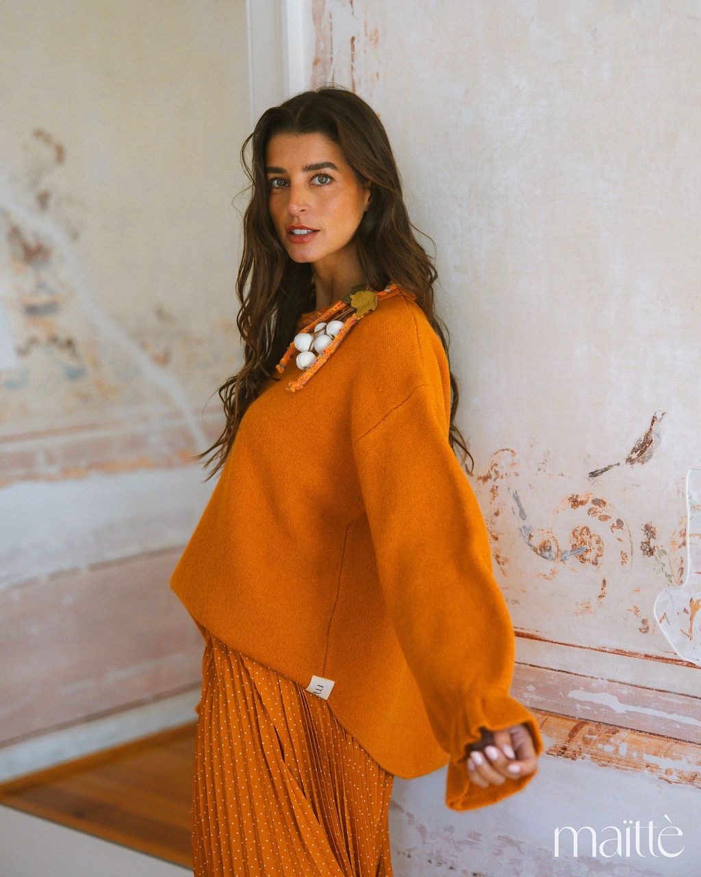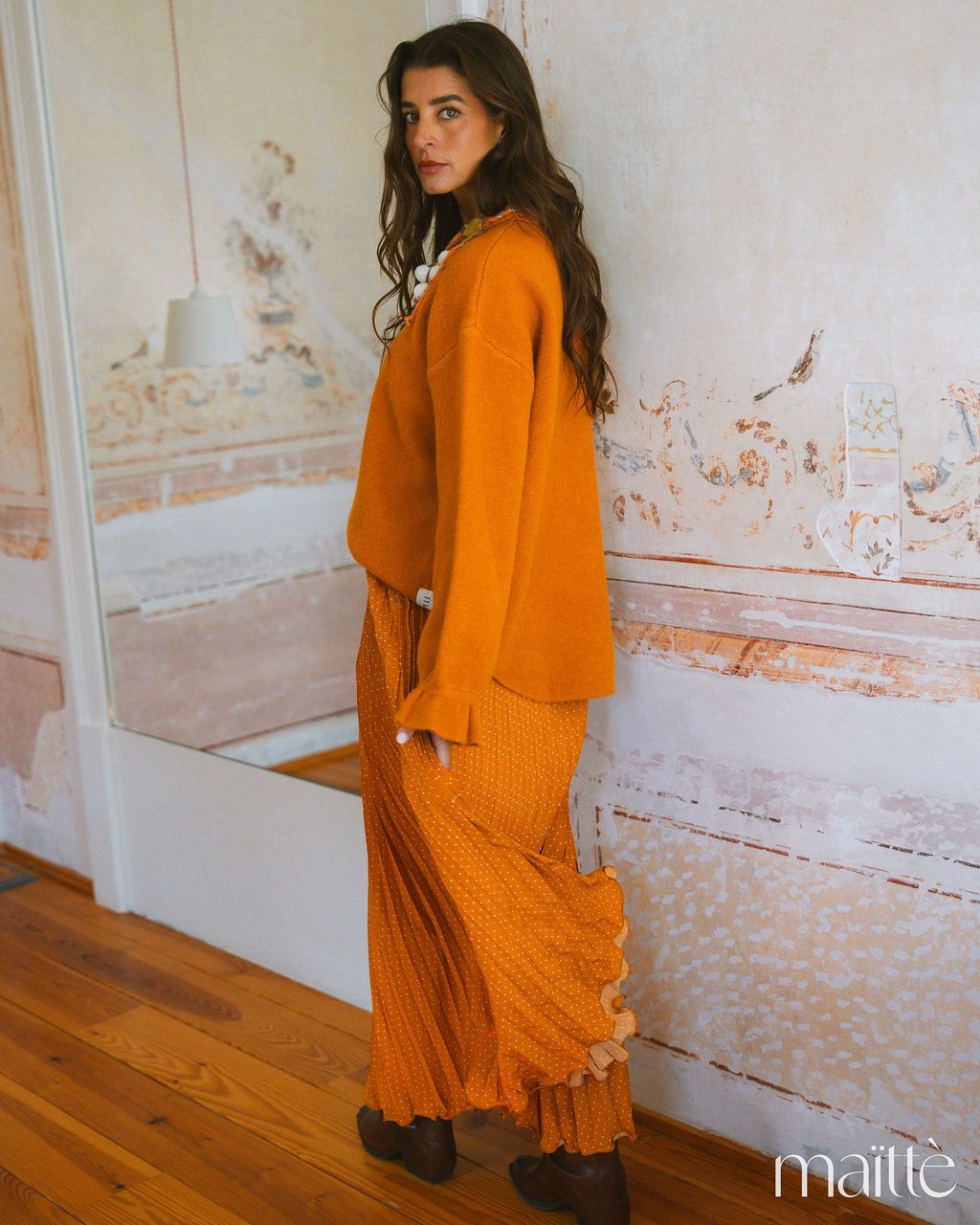 Camisola de malha composta e quentinha em laranja (abóbora).