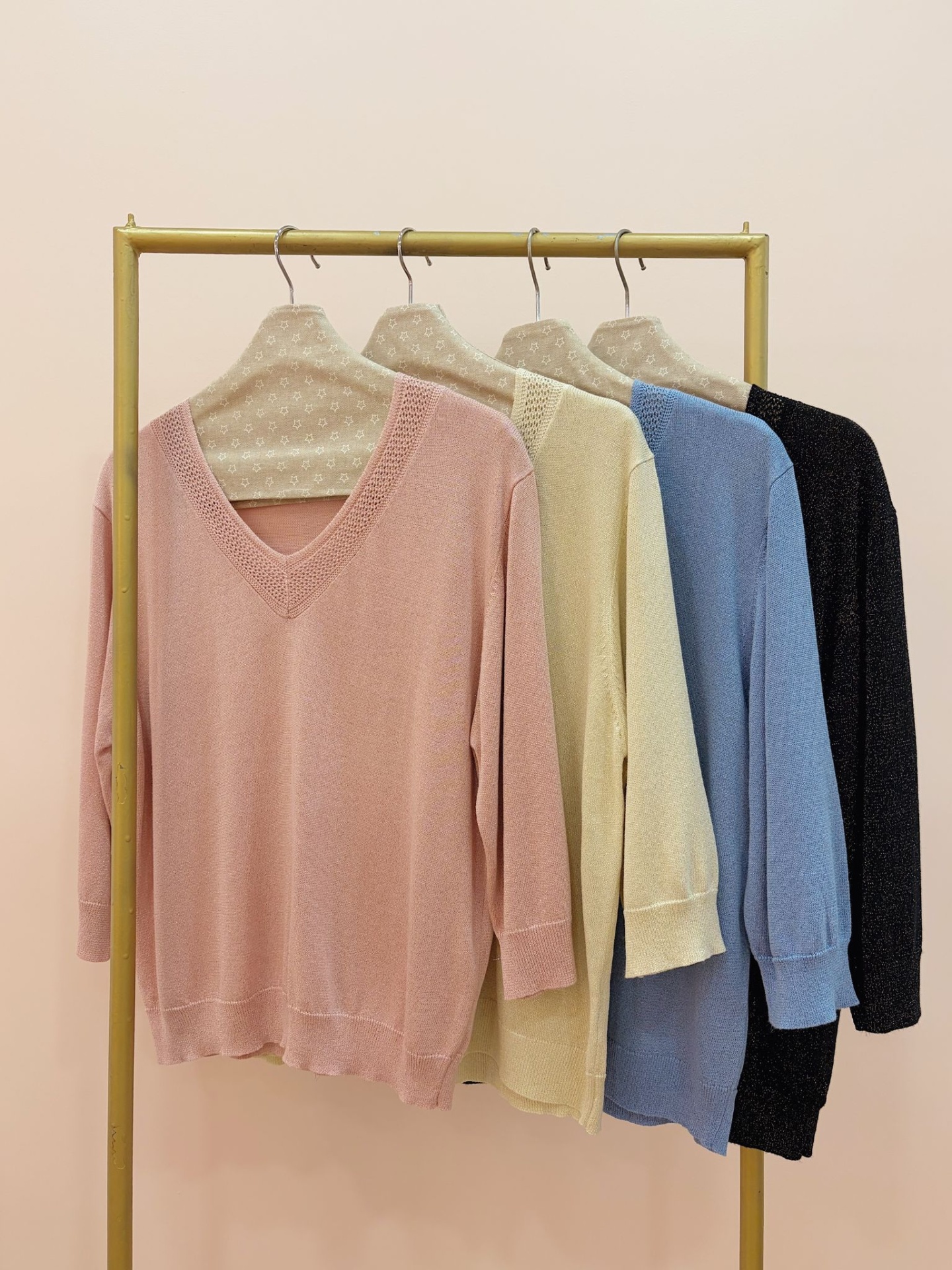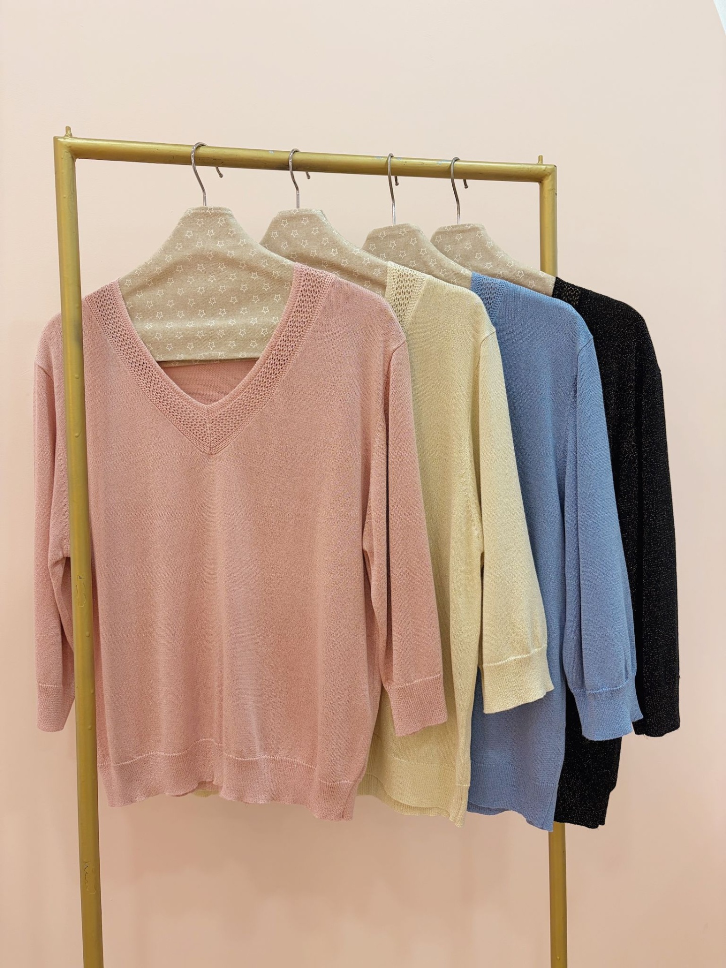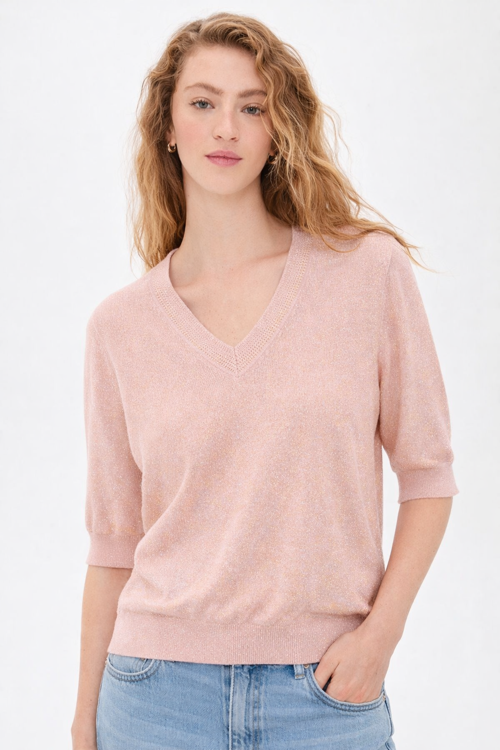 Camisola de linha confortável, macia e com efeito de brilho dourado.