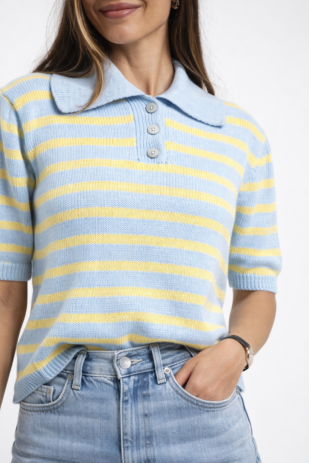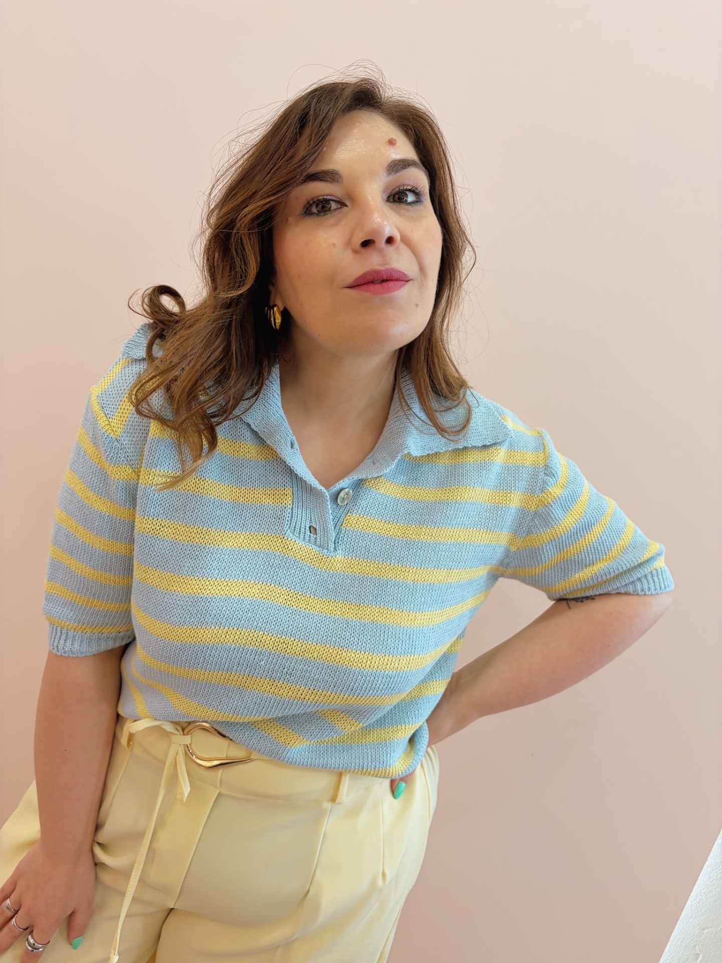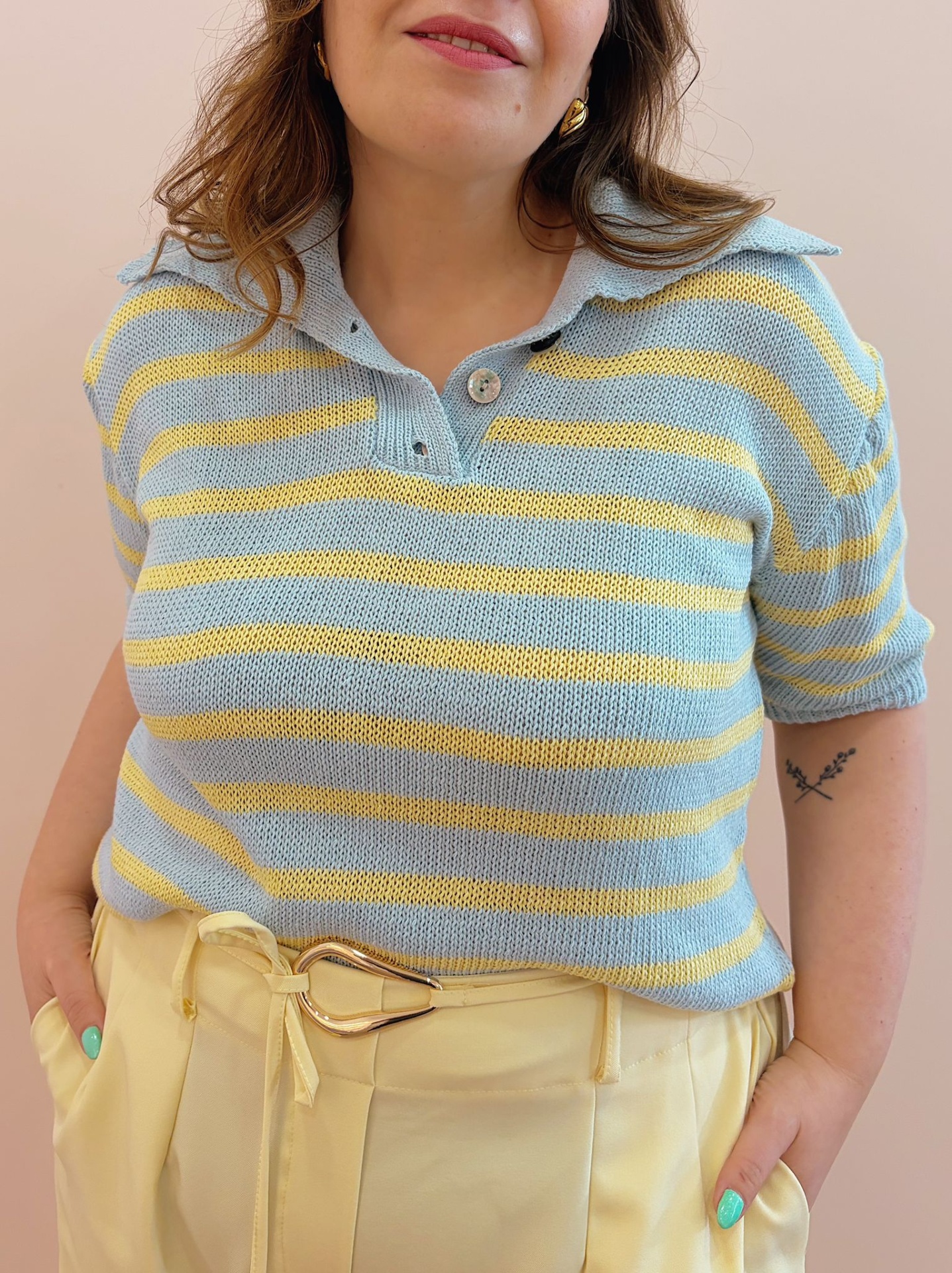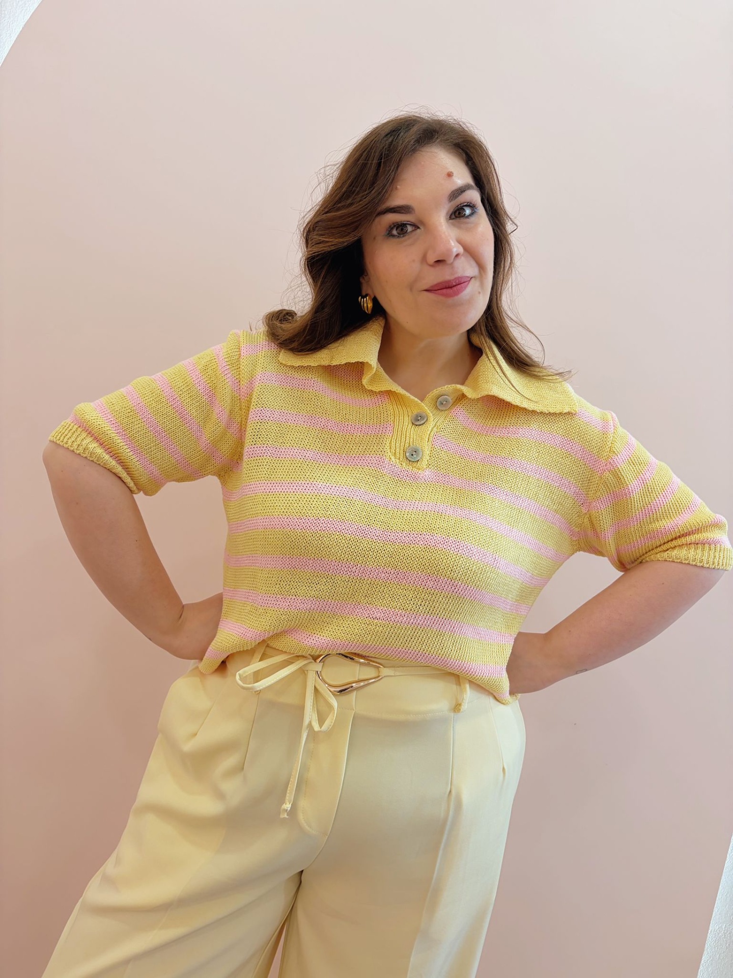 Camisola de linha com efeito de riscas coloridas na horizontal.