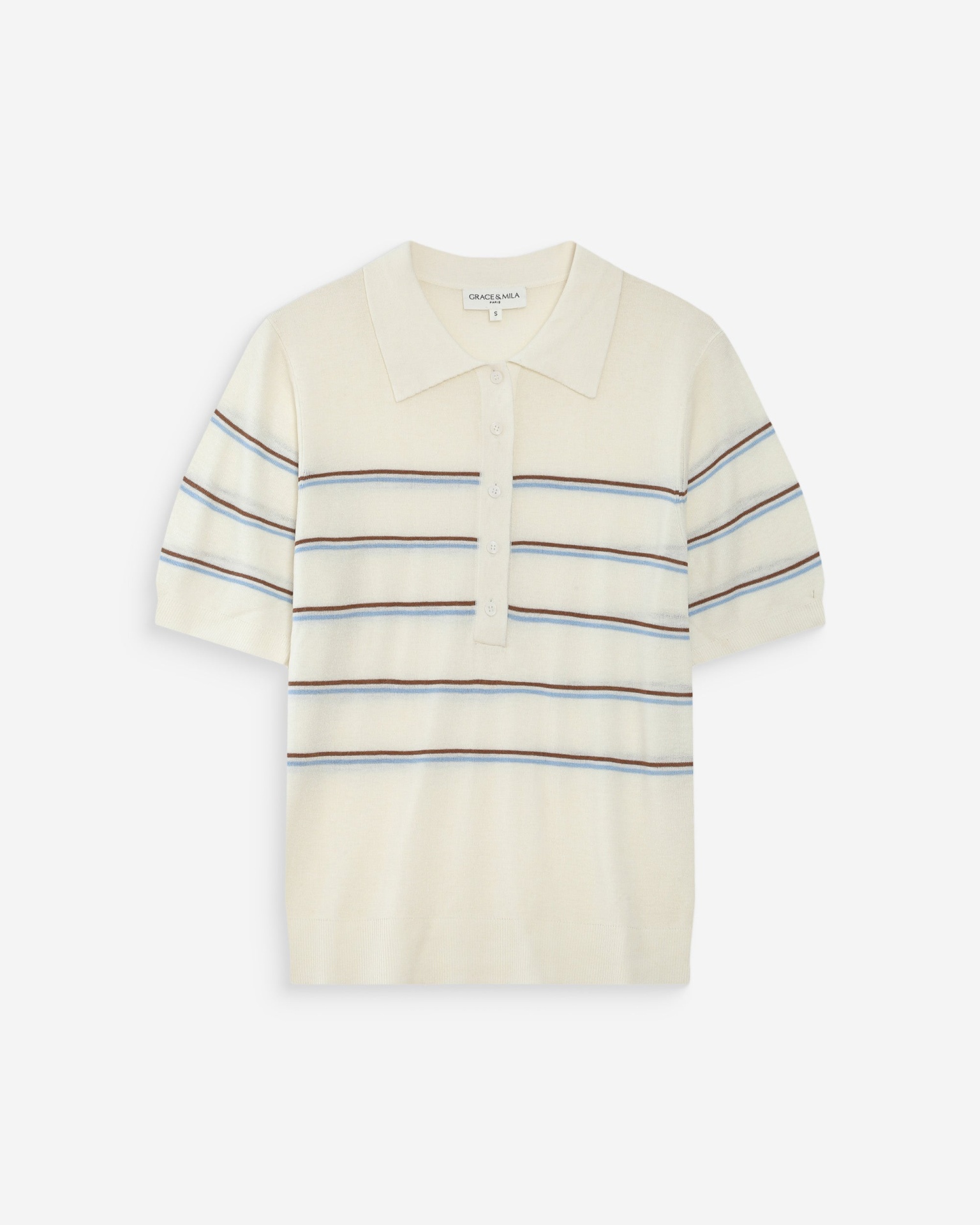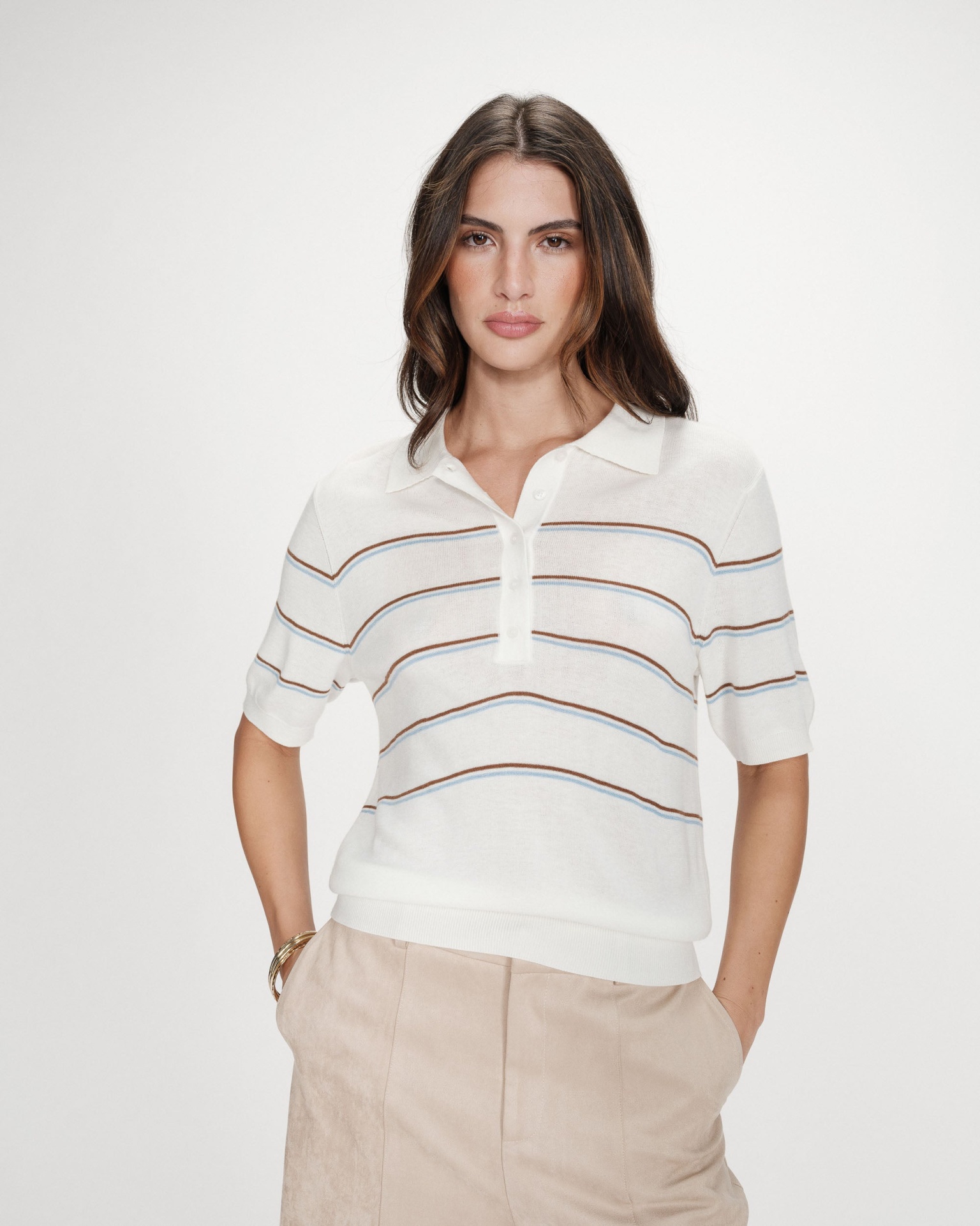 Camisola de linha (estilo Polo) com gola clássica e botões na zona do peito.
