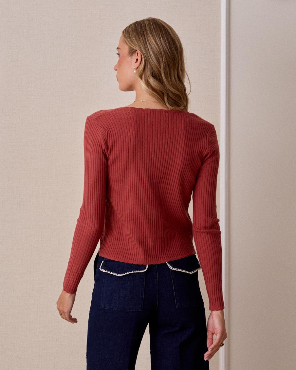 Casaco de malha canelado, estilo básico com ajuste cintado.