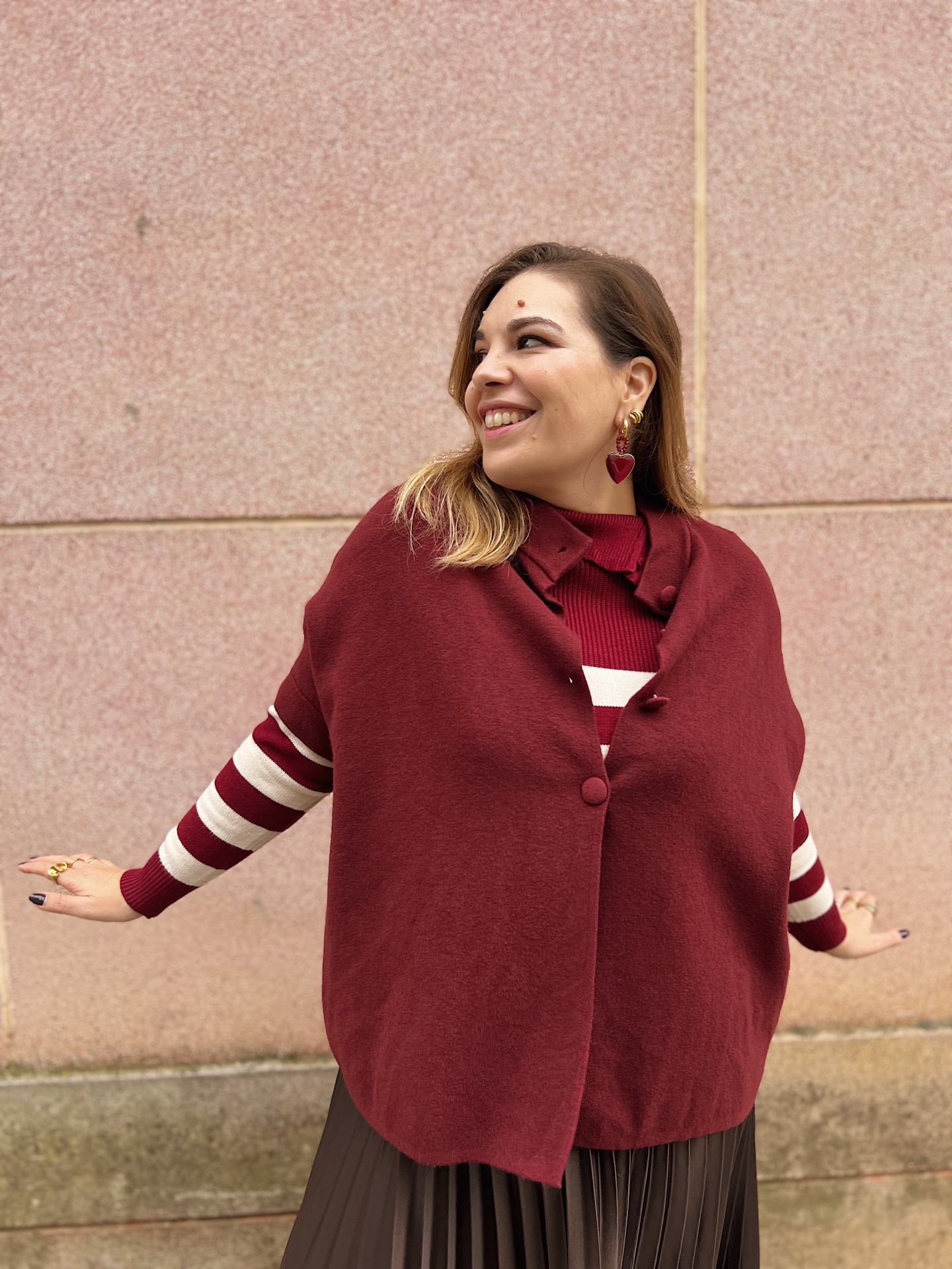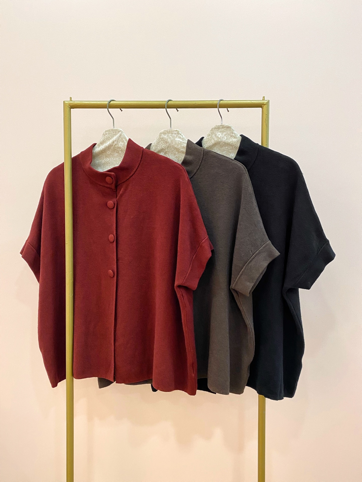 Casaco estilo Capa de malha bem macia e quentinha num ajuste solto.