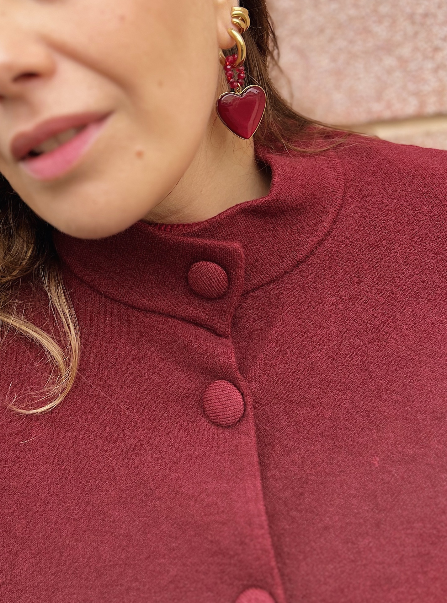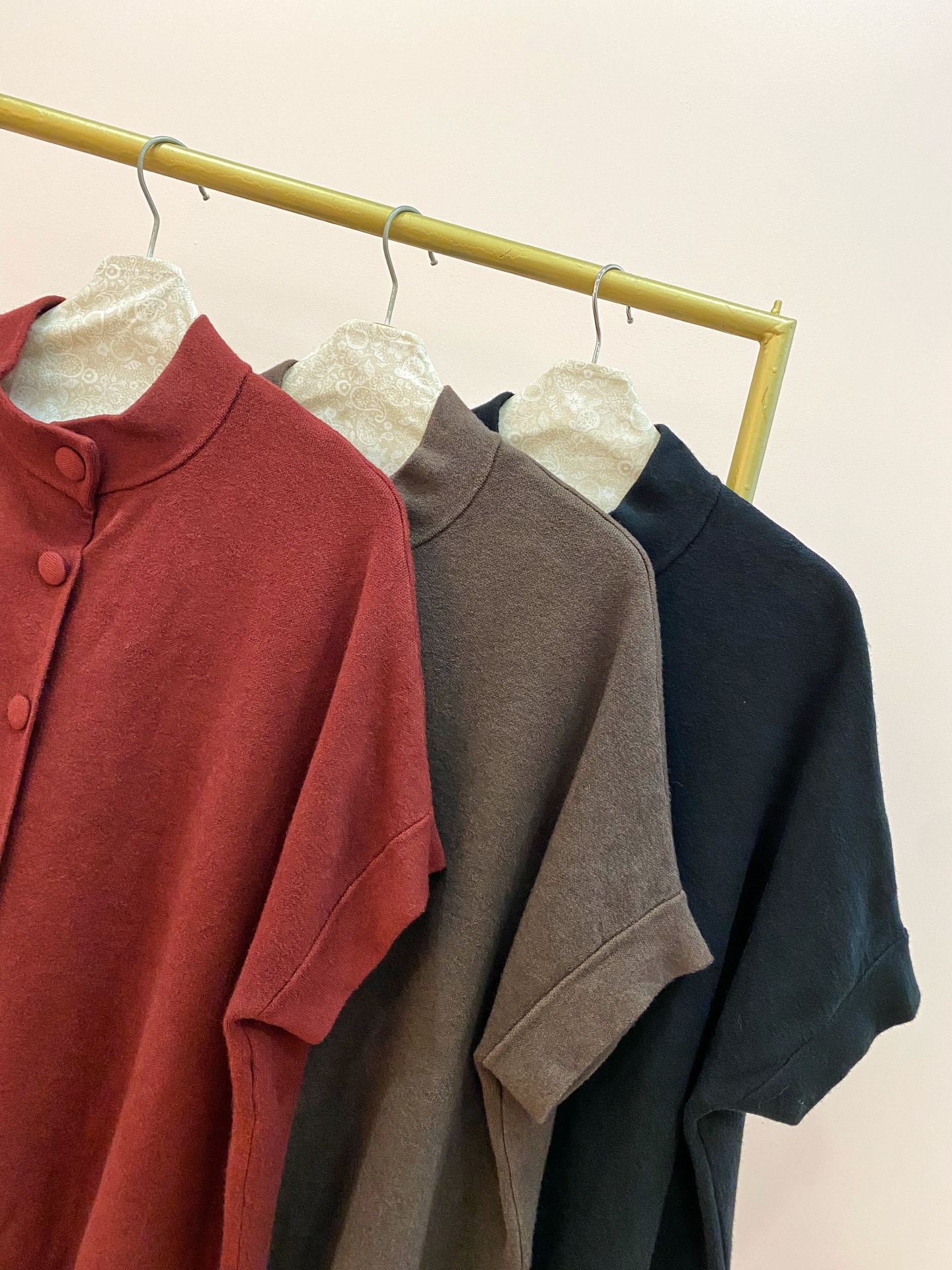 Gola subida. Botões forrados.