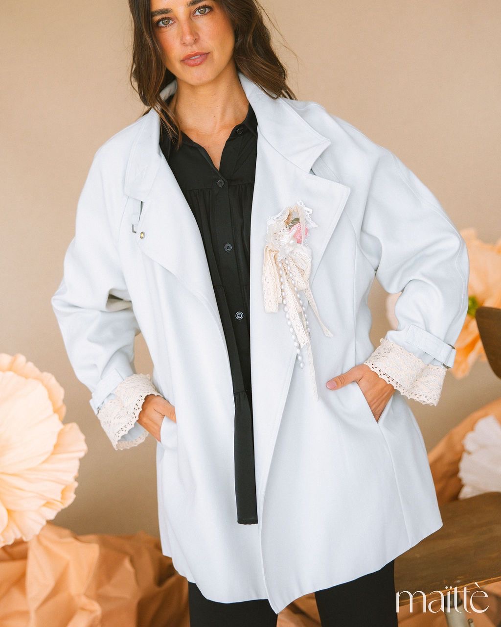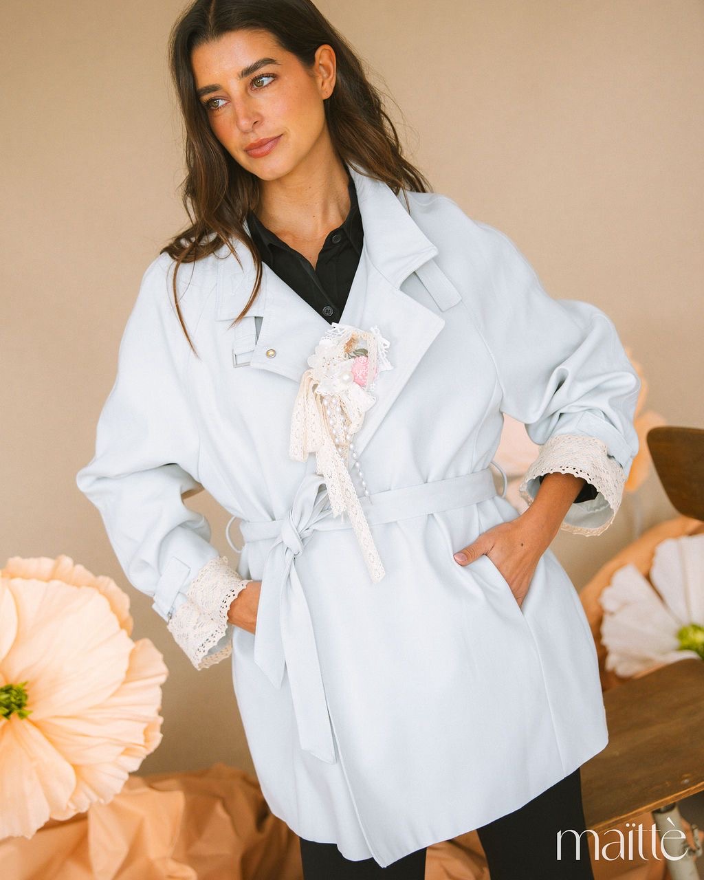 Casaco estilo Trench-Coat num delicado tom de azul.
