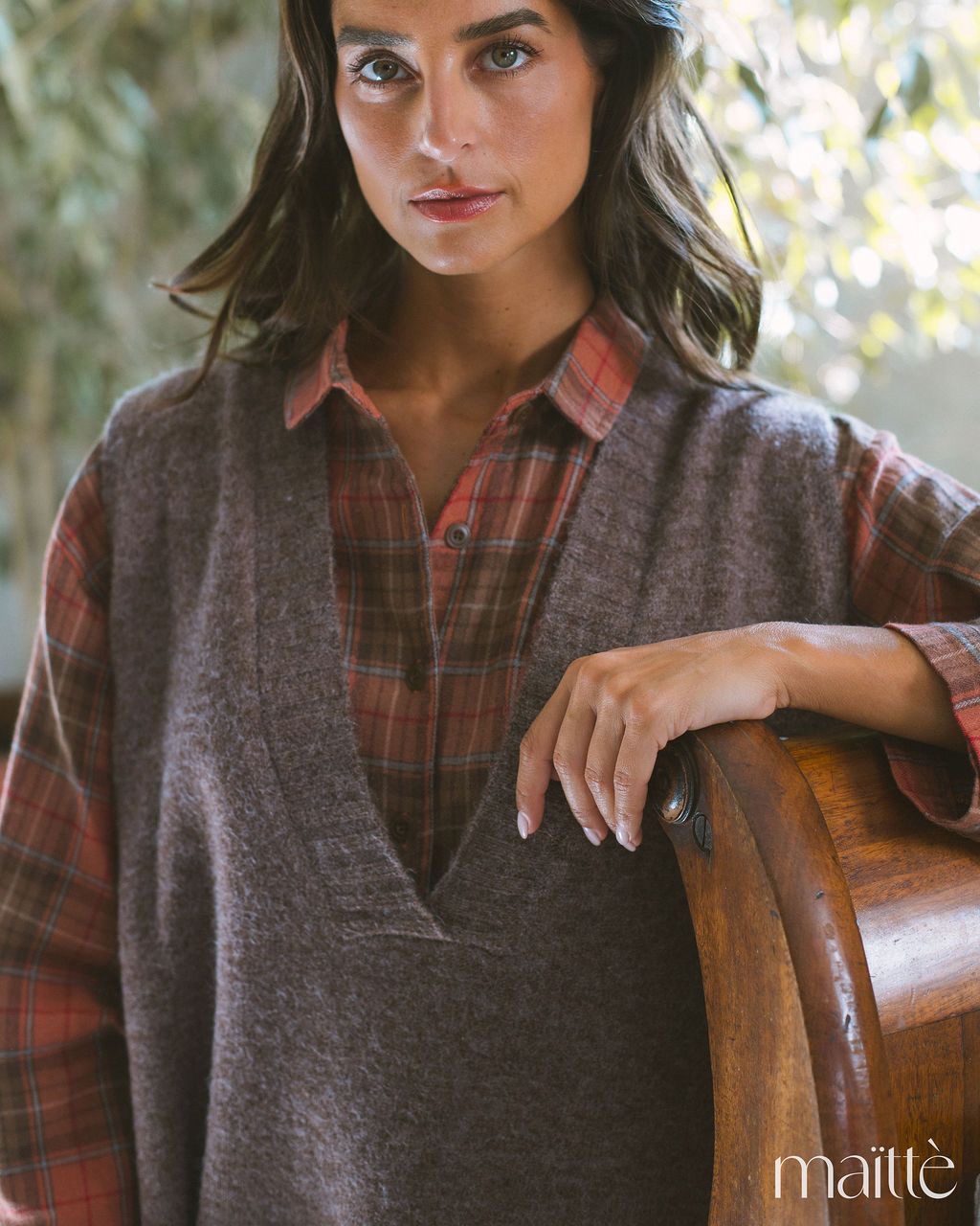 Colete de malha castanho (mesclado) com ajuste solto - oversize.