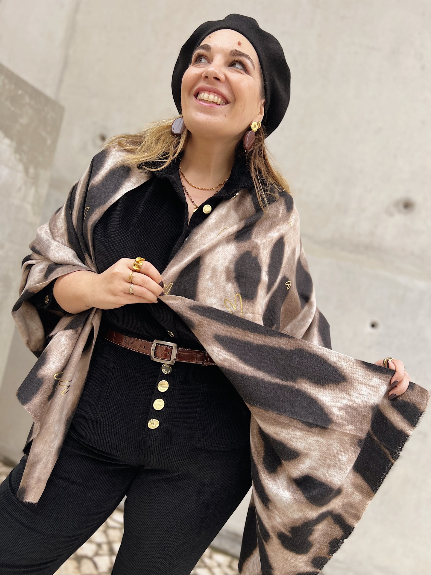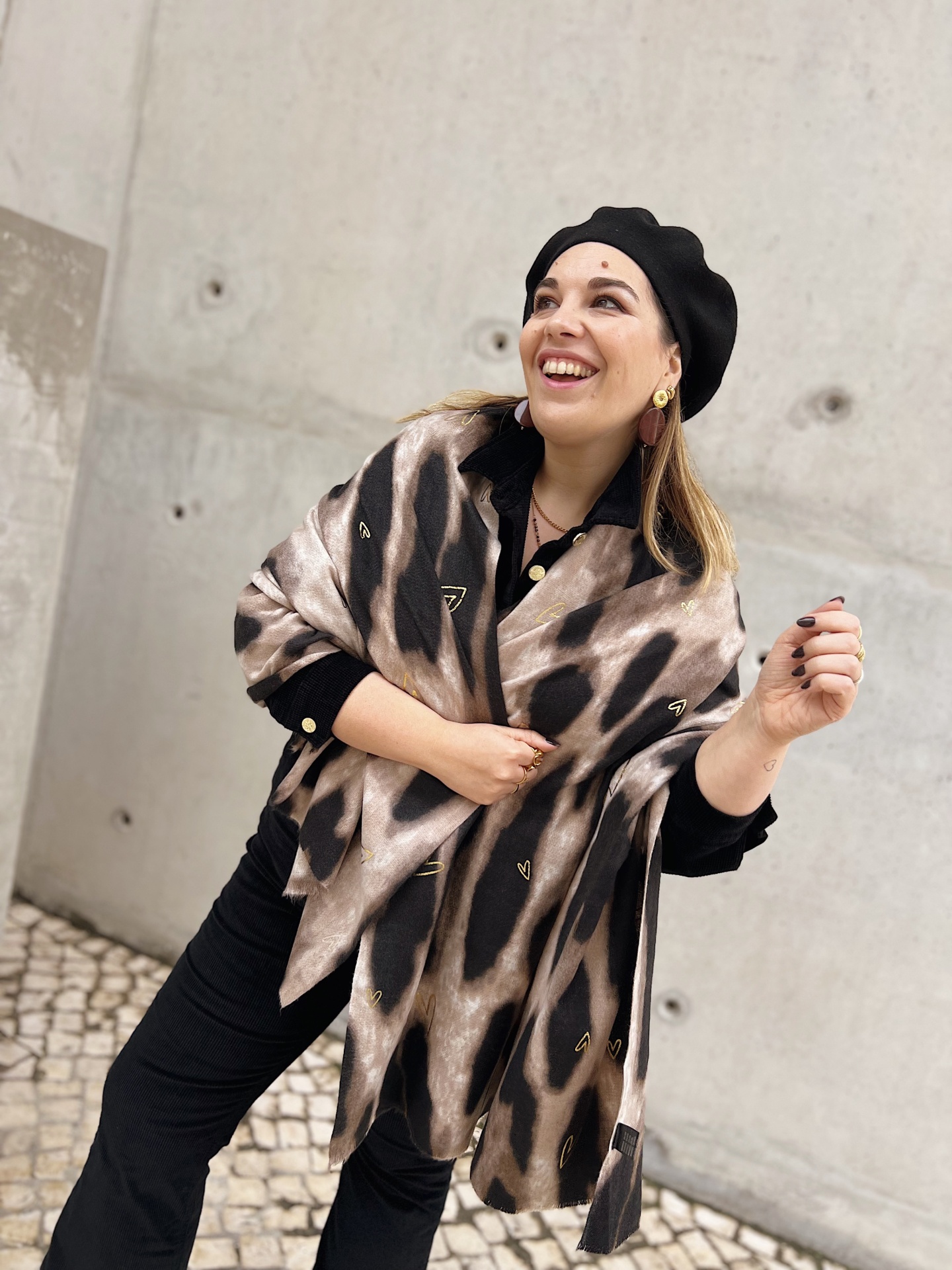 ECHARPE ANIMAL PRINT COM CORAÇÕES