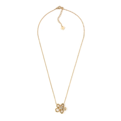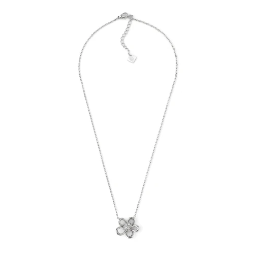 Fio em aço com corrente tradicional e pendente de flor e centro com brilhantes/strass.