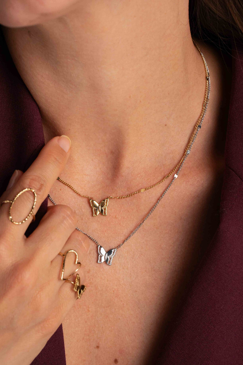 Fio em aço com corrente original discreta com pendente de borboleta.