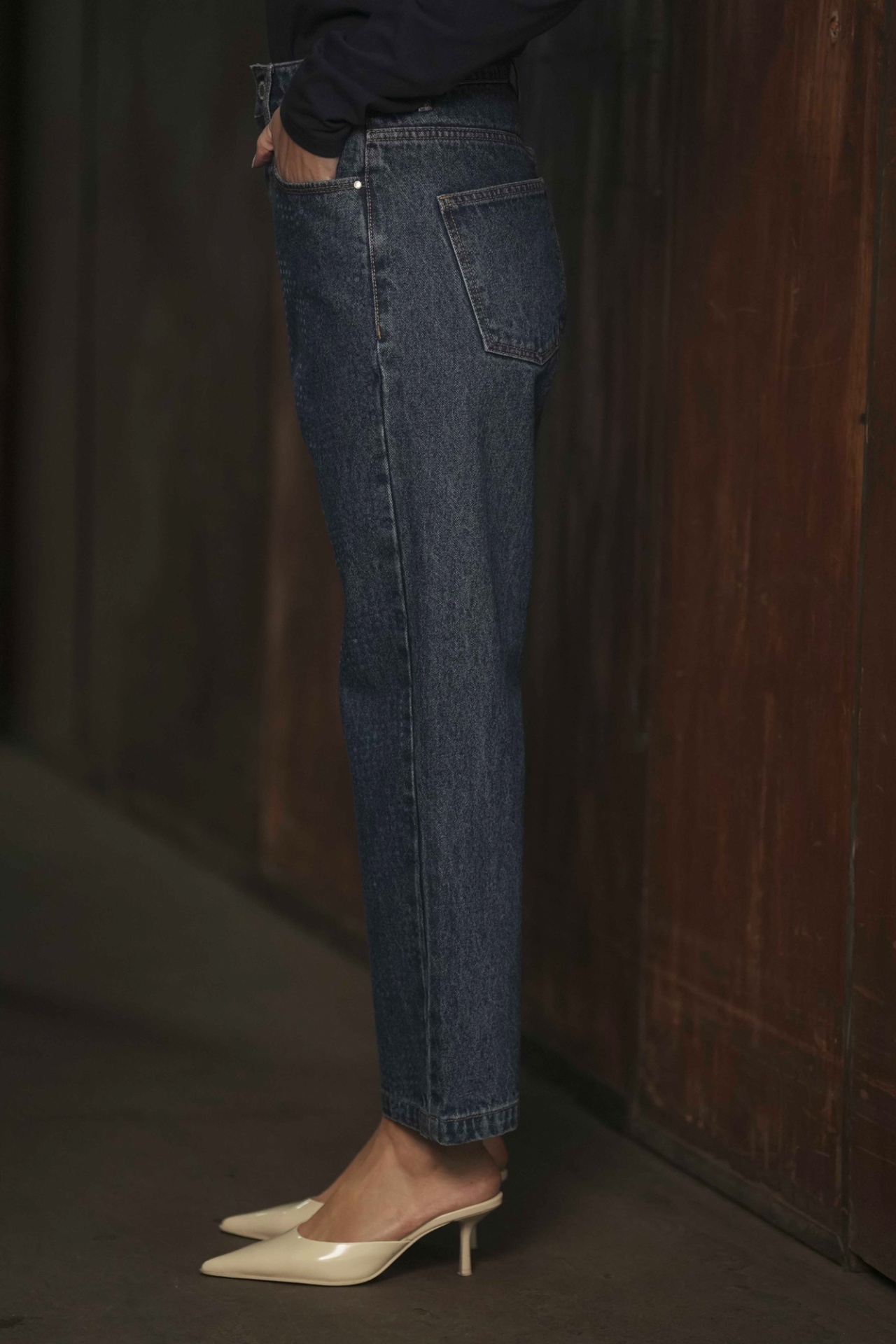 Cinta subida com fecho tradicional de zipper e botão. Presilhas. Bolsos funcionais à frente e atrás.