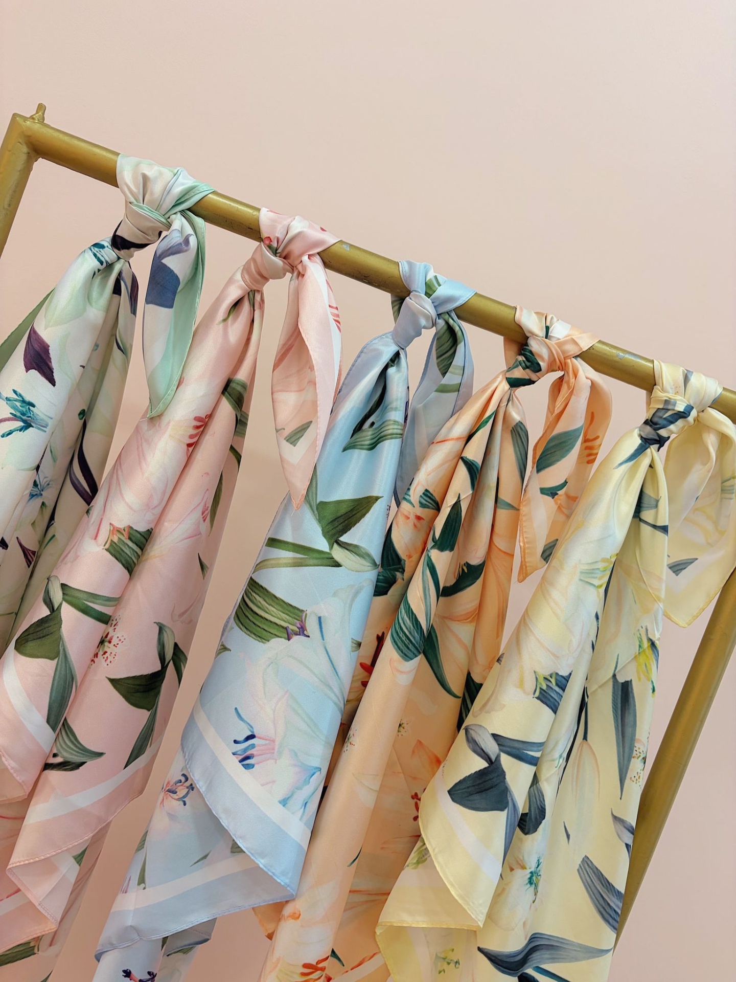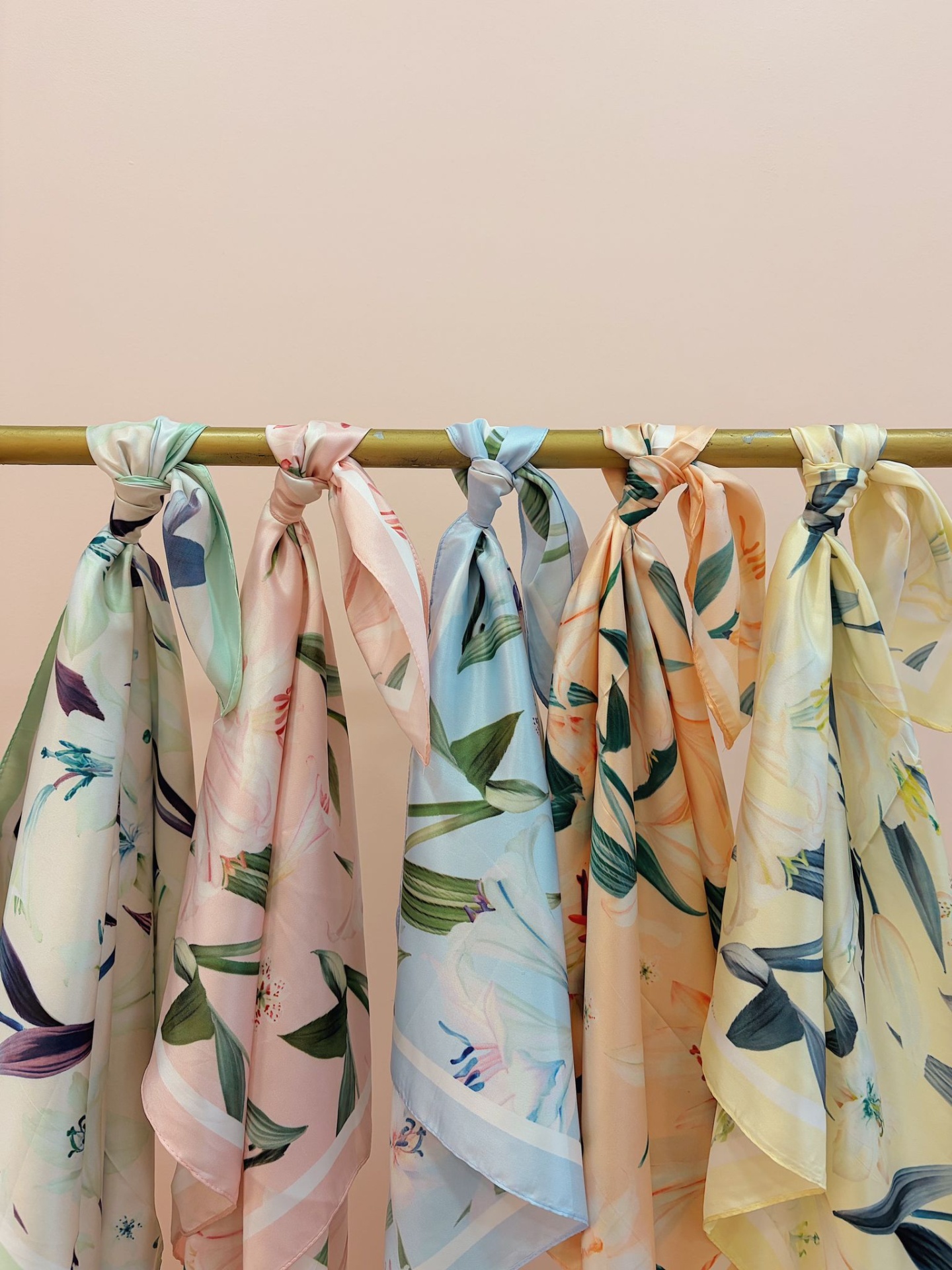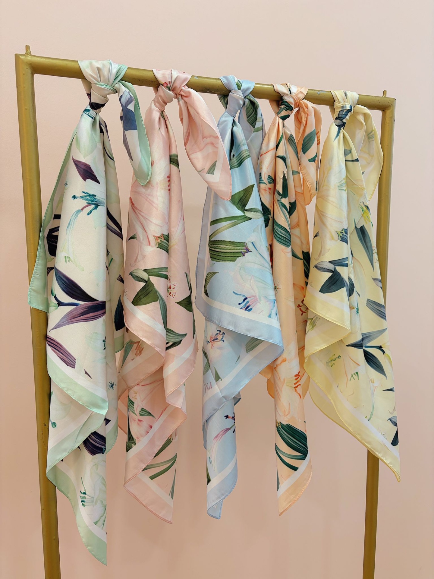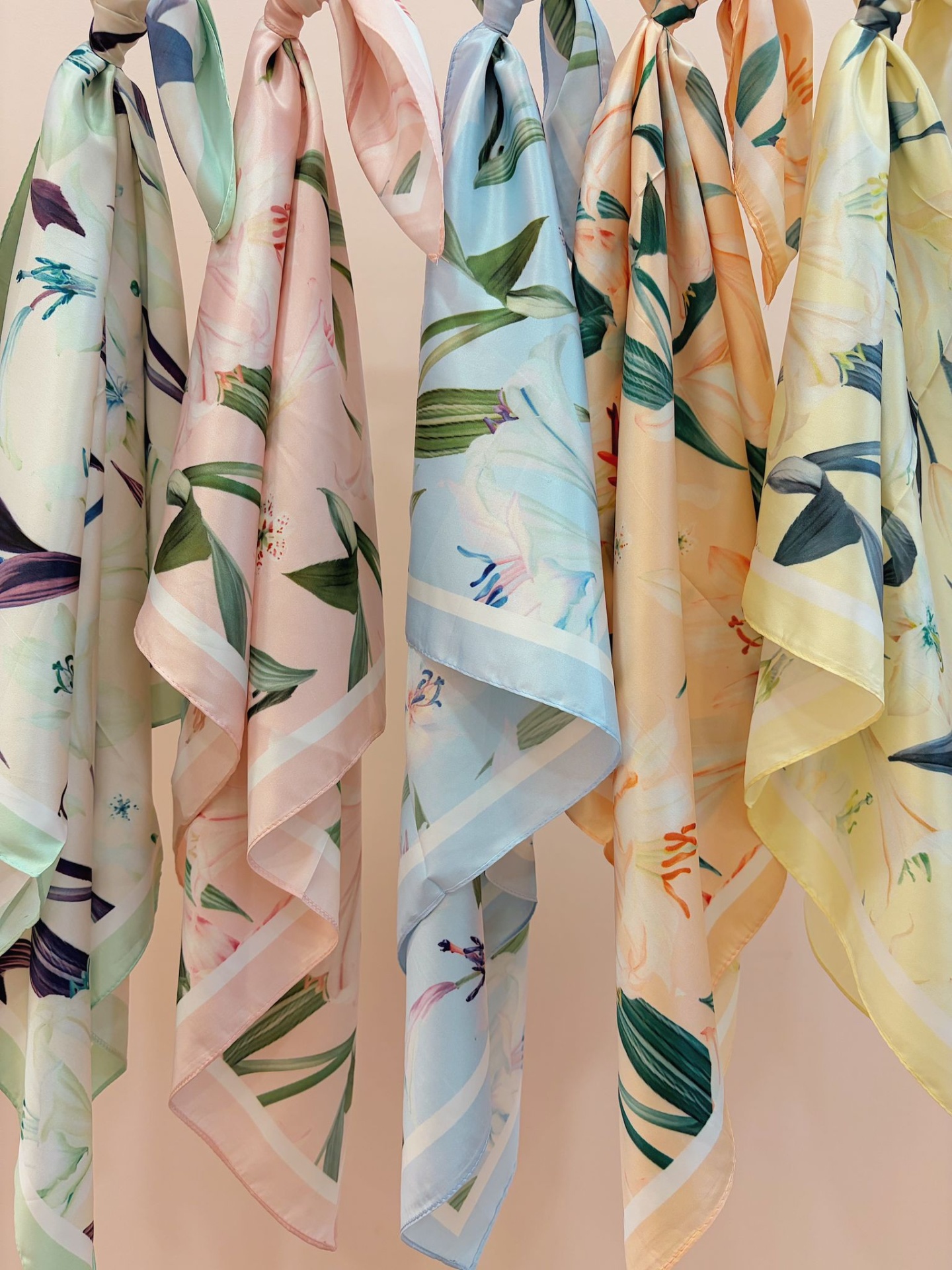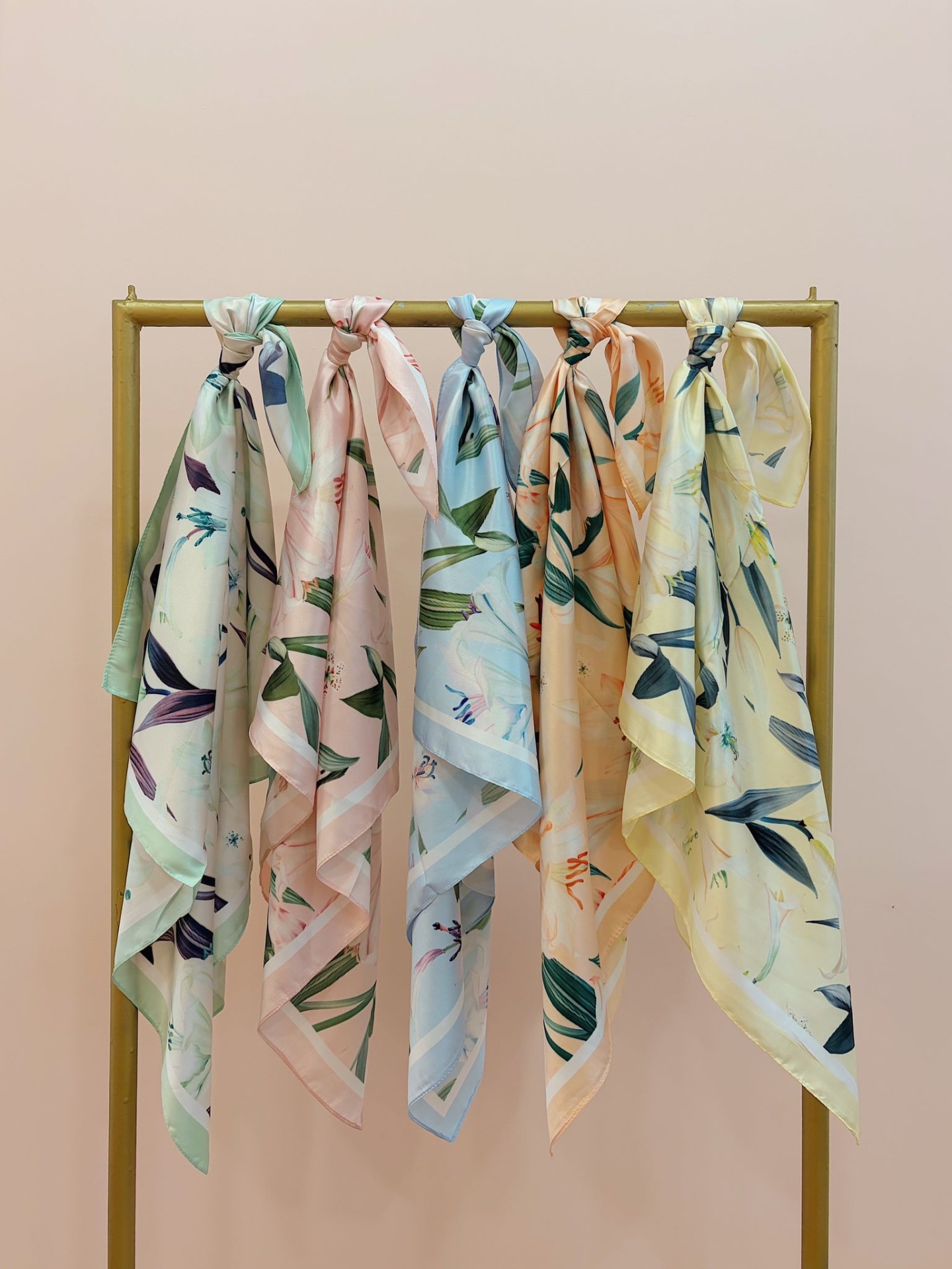 Repare que cada lenço apresenta um padrão único, sendo sempre diferente dos que apresentamos nas imagens mas mantendo os mesmos tons.