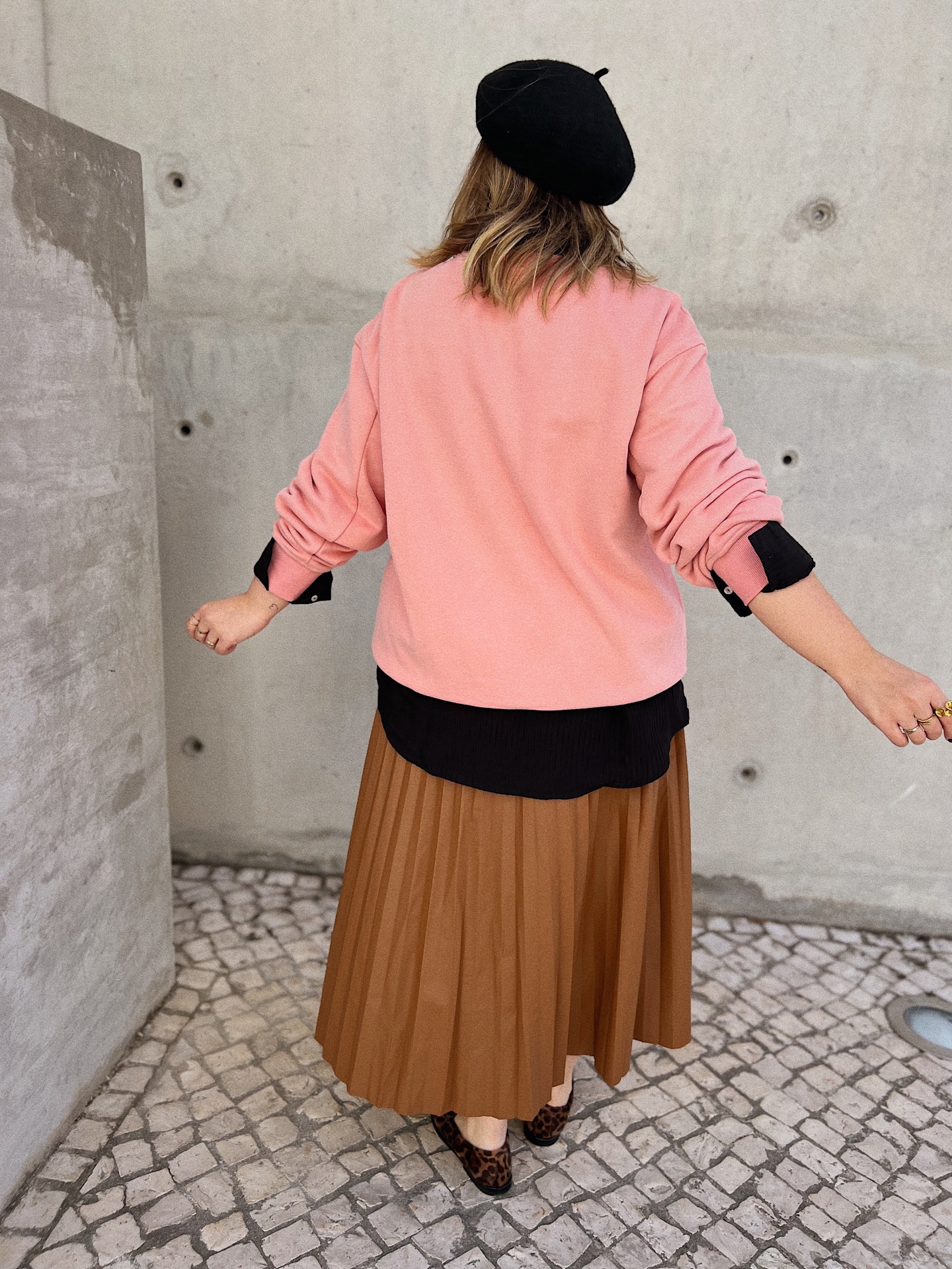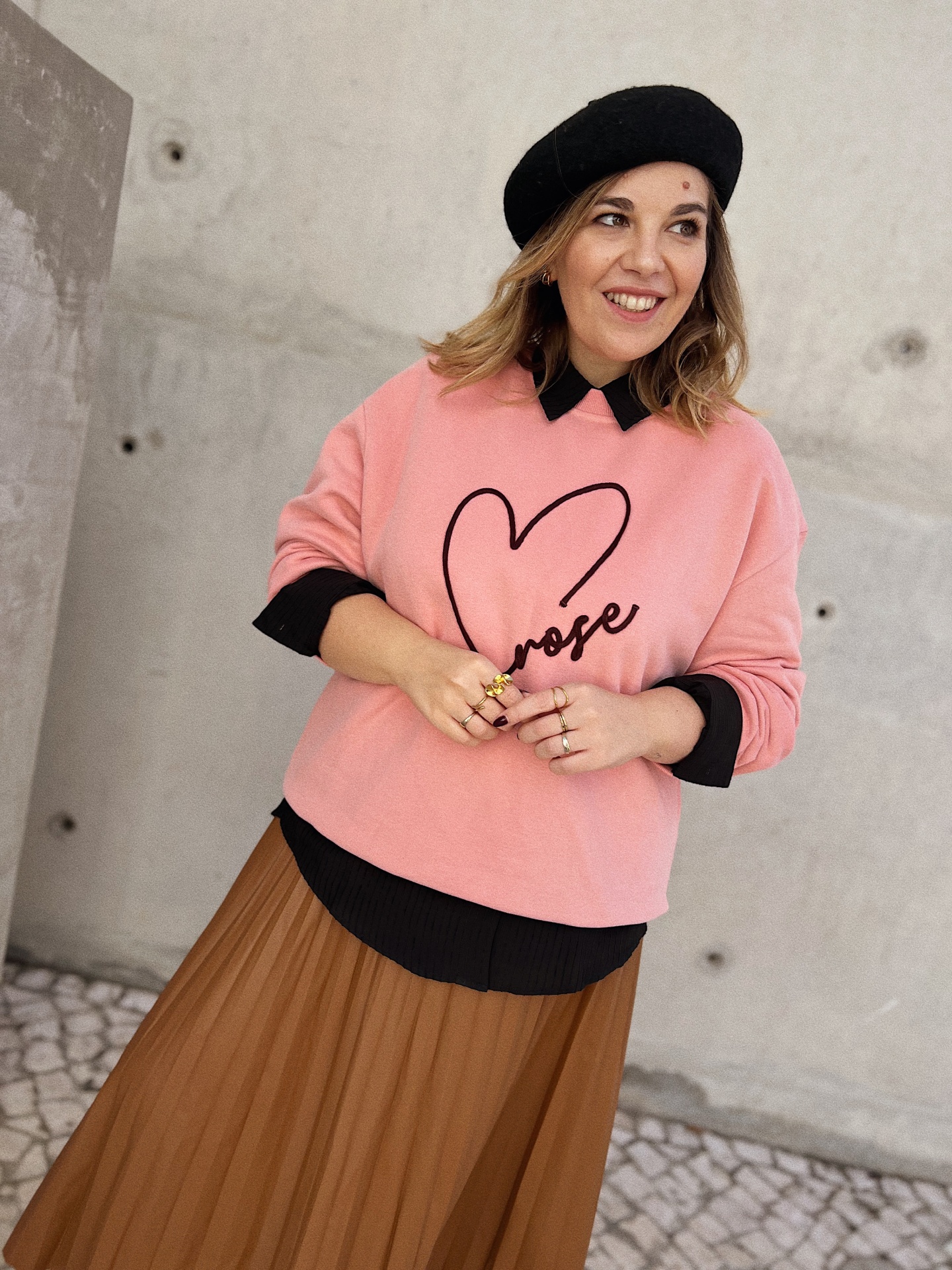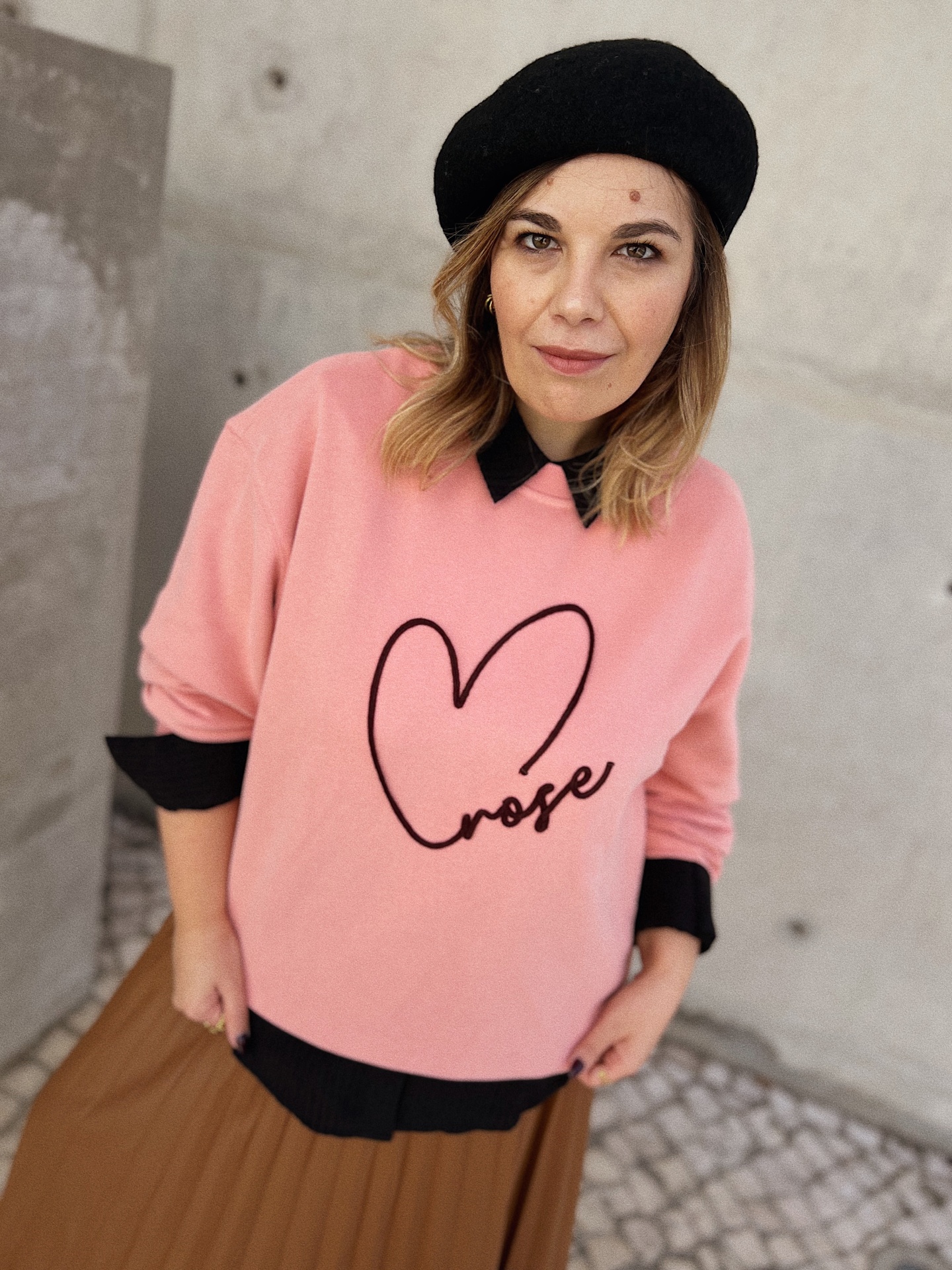 Camisola/Sweatshirt rosa (jersey) cardado no interior.