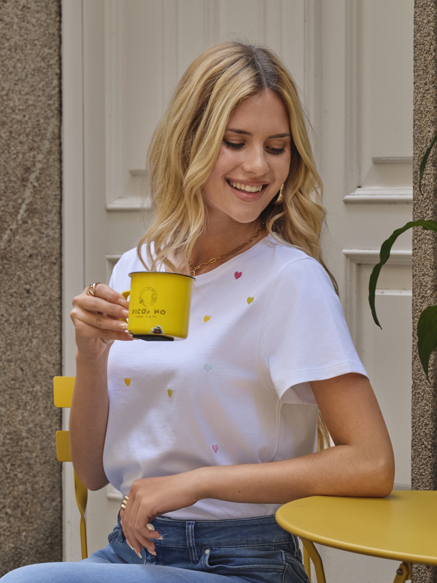 T-SHIRT BRANCA COM CORAÇÕES