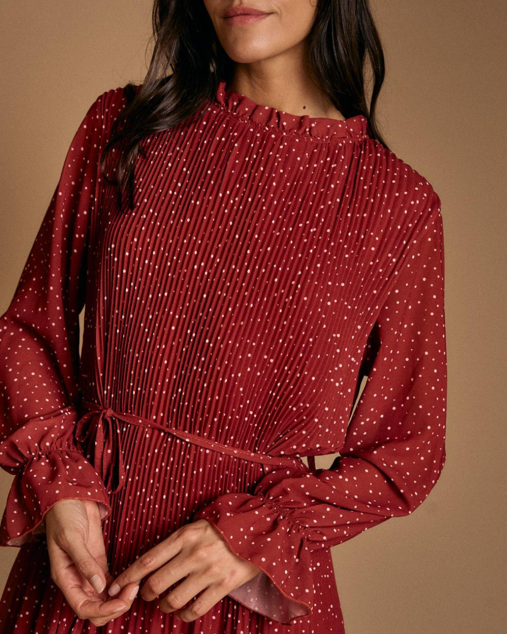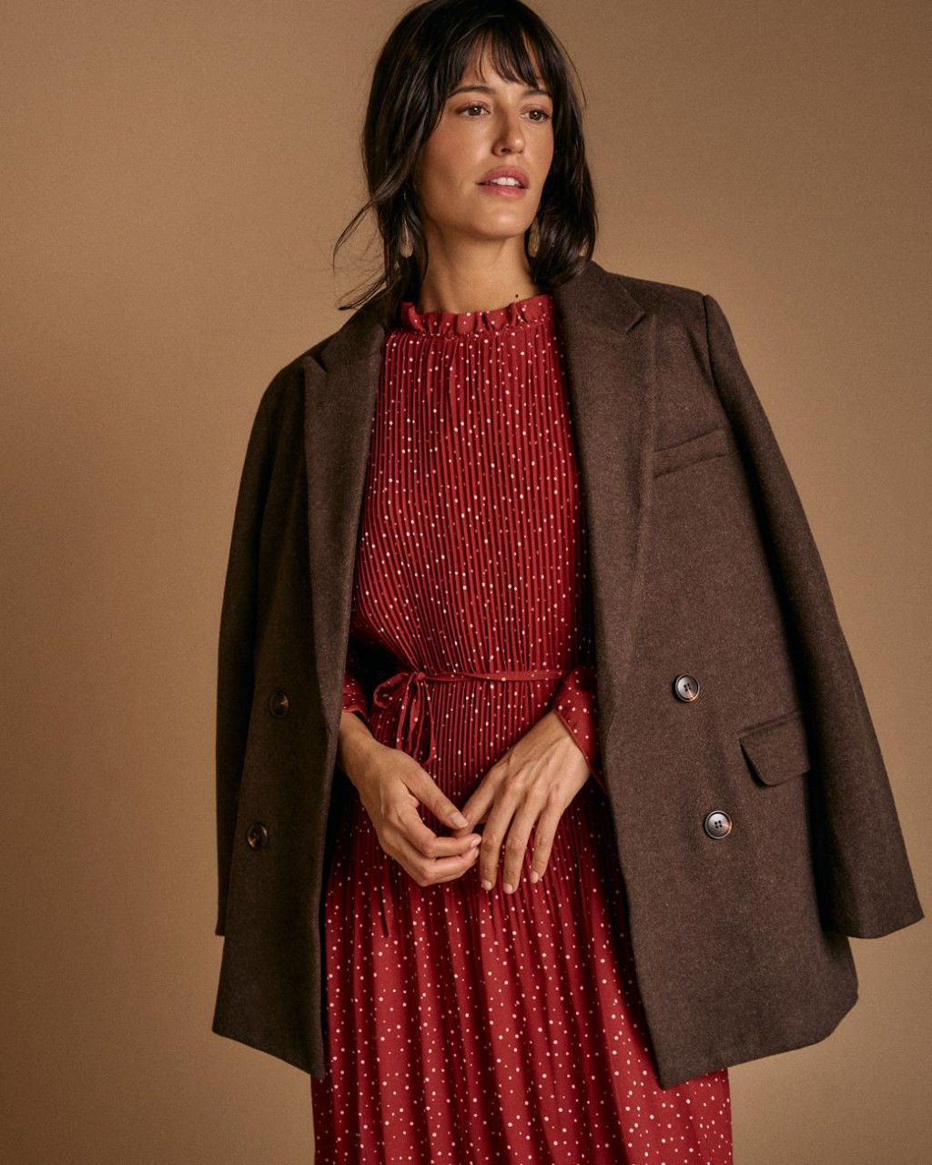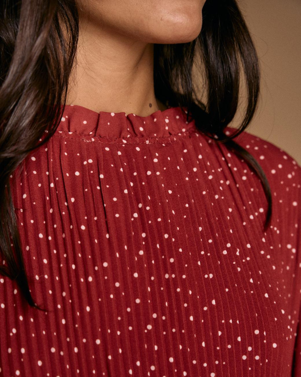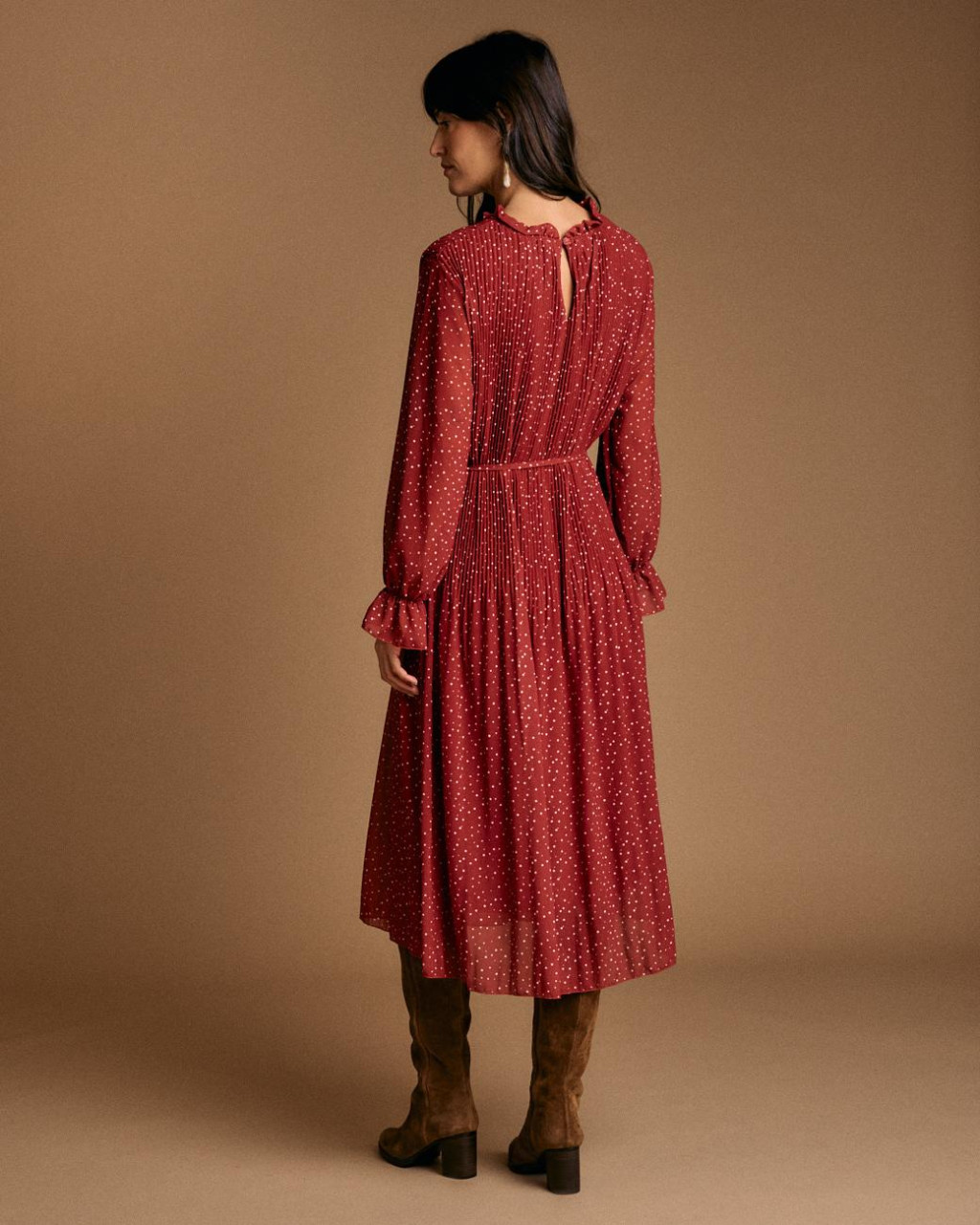 Vestido plissado num tecido fluído e leve com efeito plissado.
