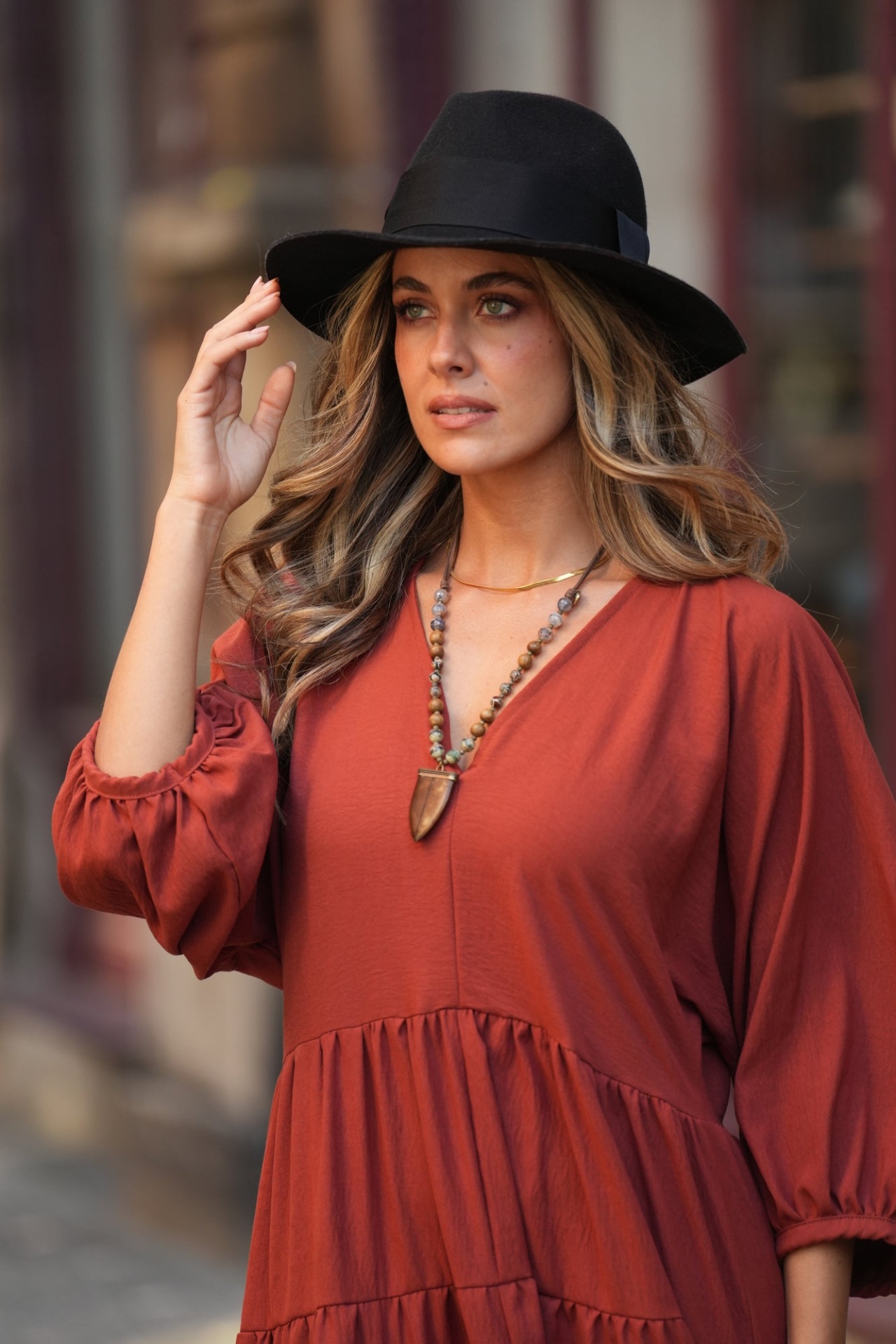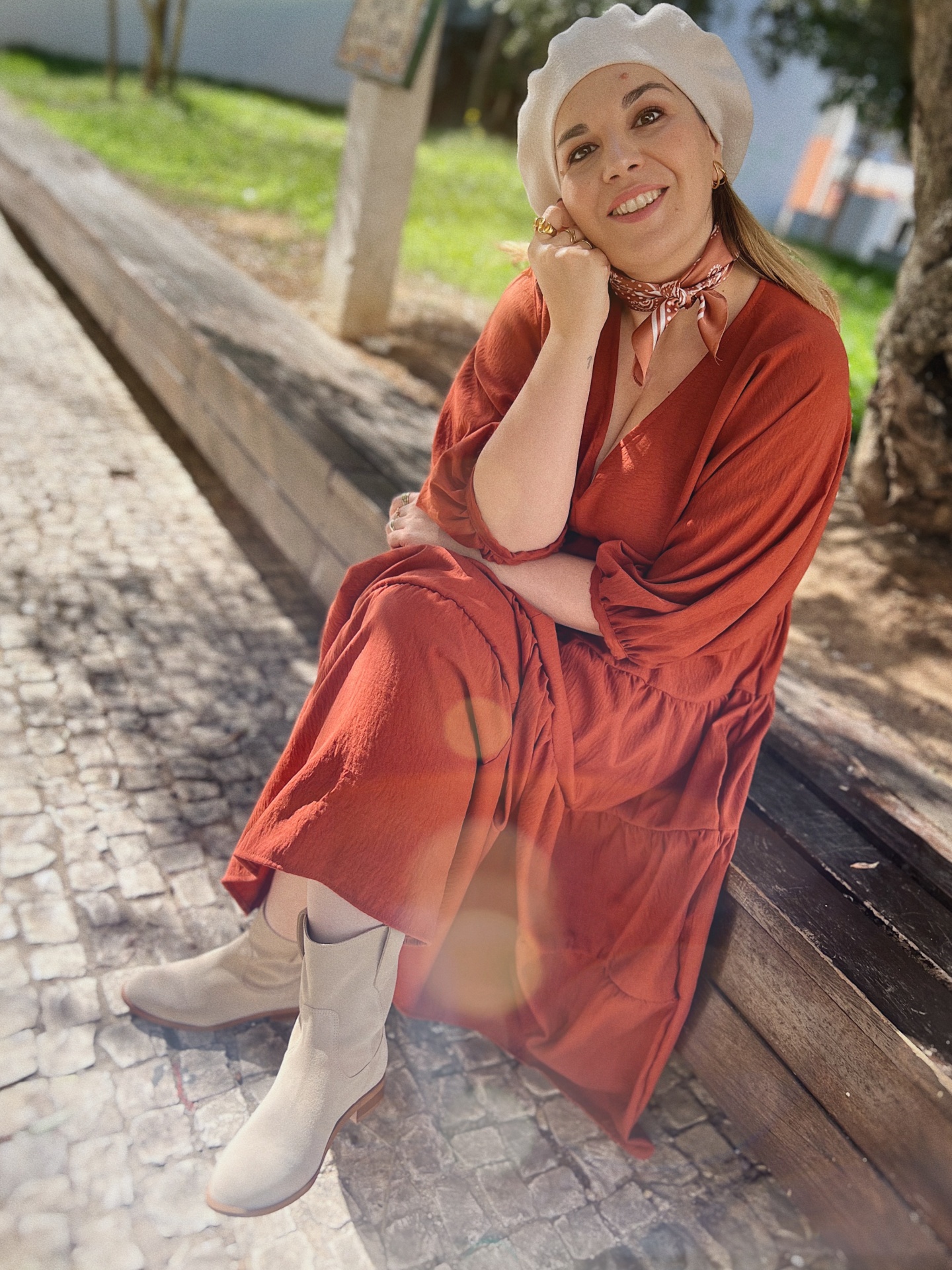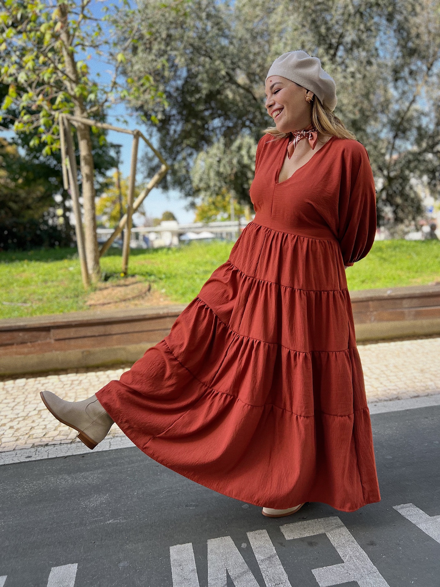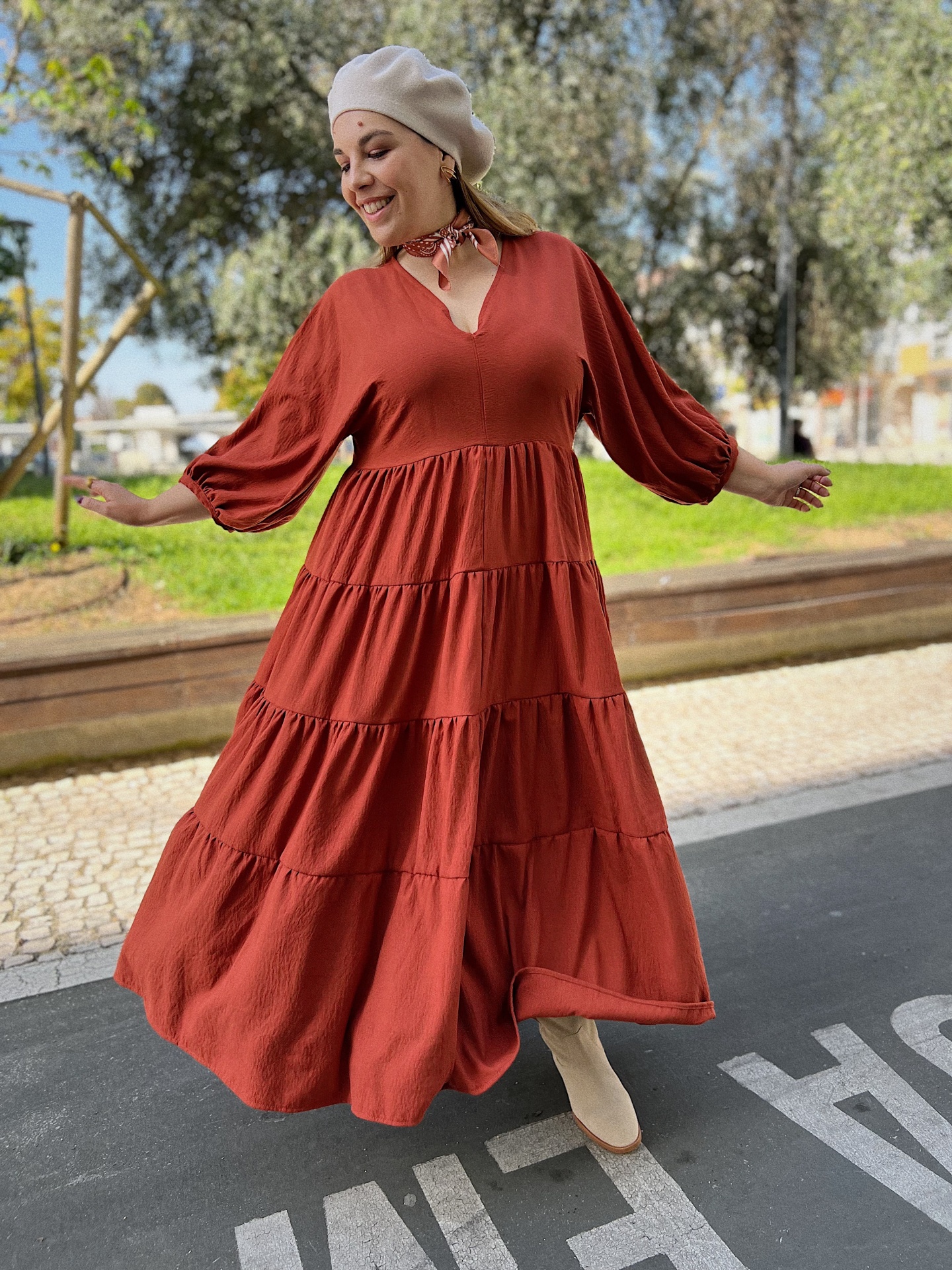 Vestido de comprimento midi em modelo boho-chic com ajuste solto.
