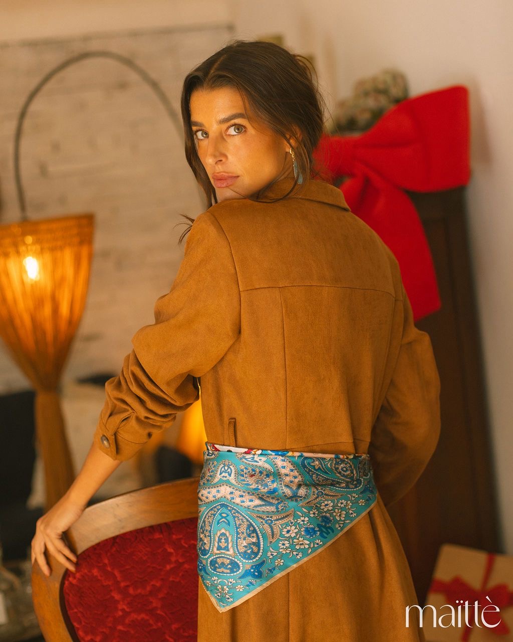 Gola de lapela clássica com botões á frente. Cintado. Com bolsos funcionais.